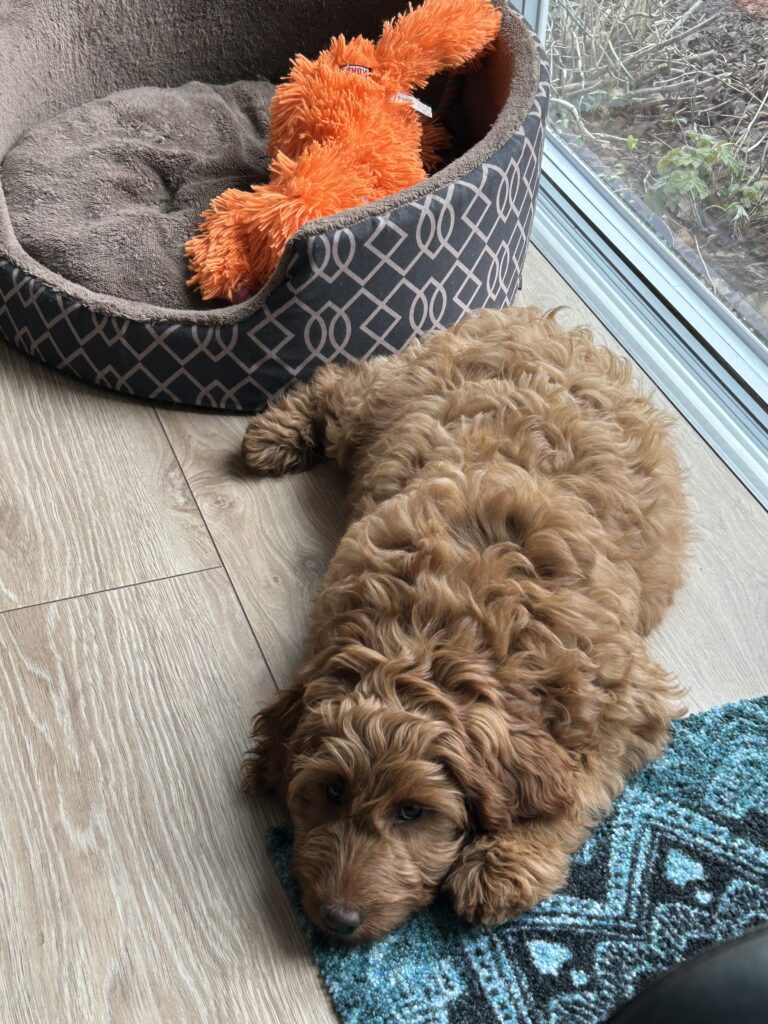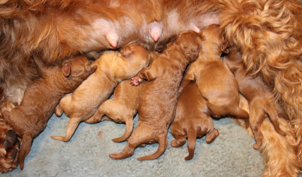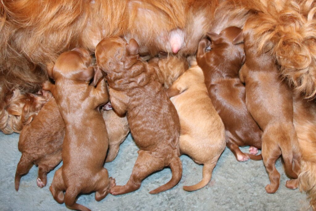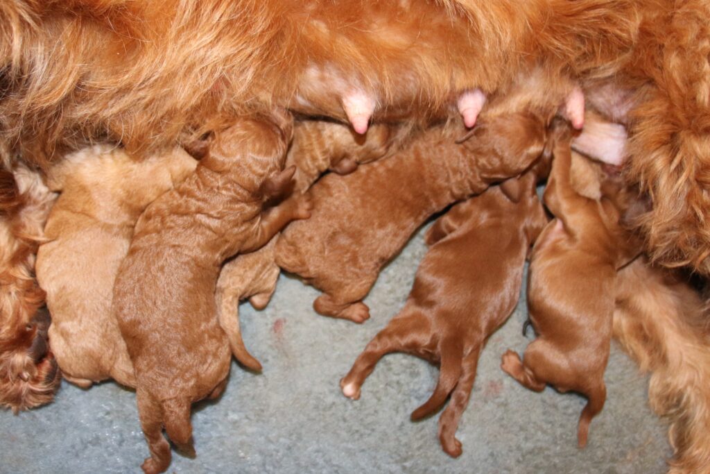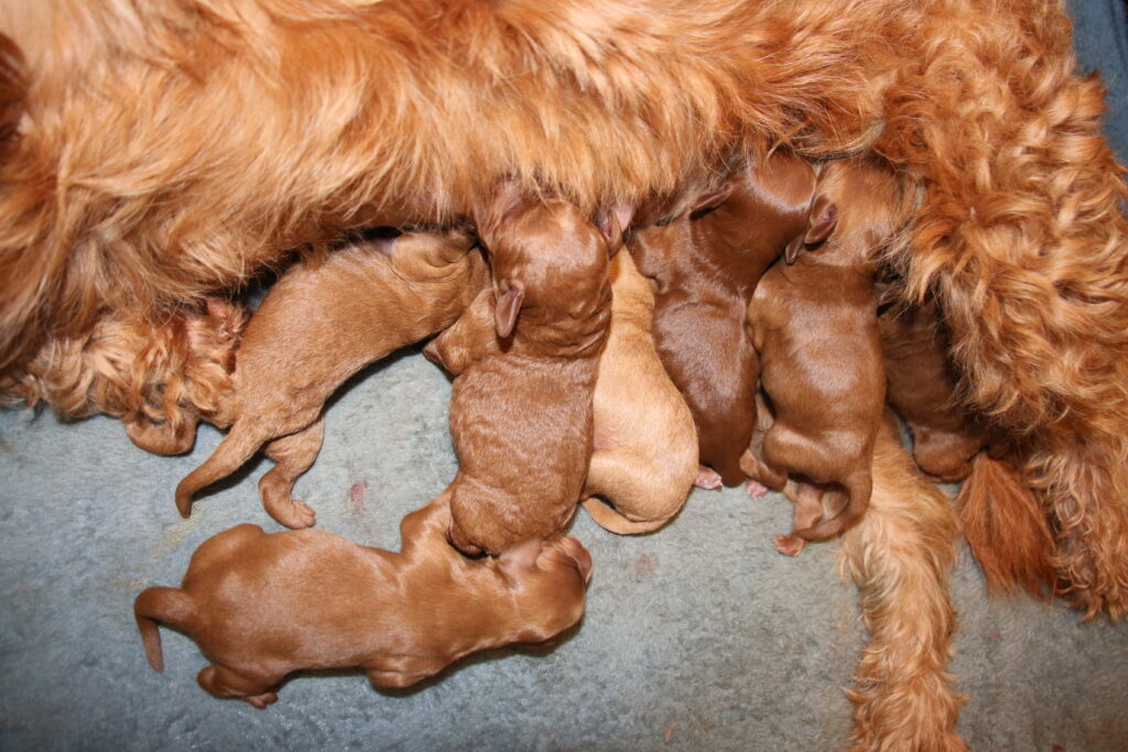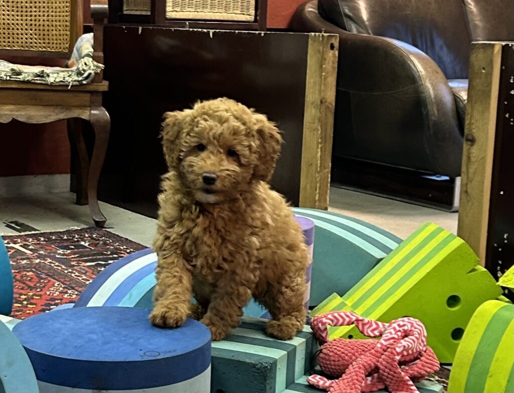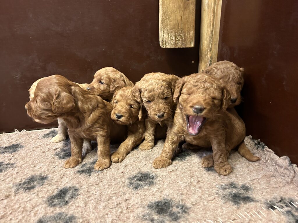 Vores mini/mellem Goldendoodle F1 Amy og vores mini/mellem Doodledoodle Jordy, har fået 7 hvalpe sammen.