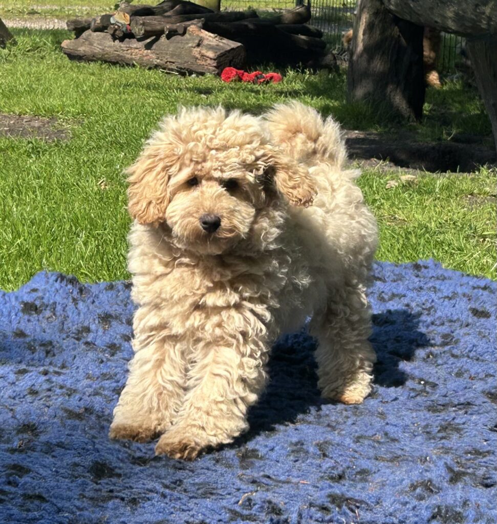 Vores lille Doodledoodle Angel (50% Cavapoo og 50% Goldendoodle) og vores lille mellem puddel Luke har fået 4 tæve hvalpe sammen.