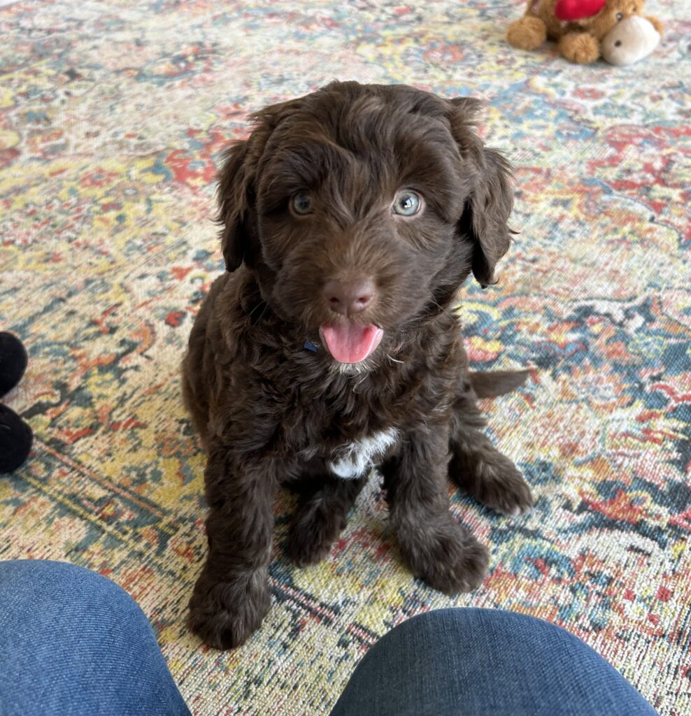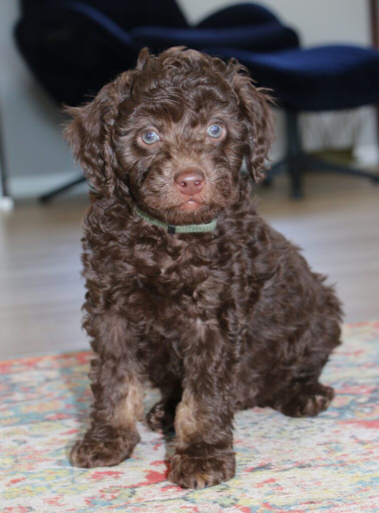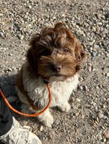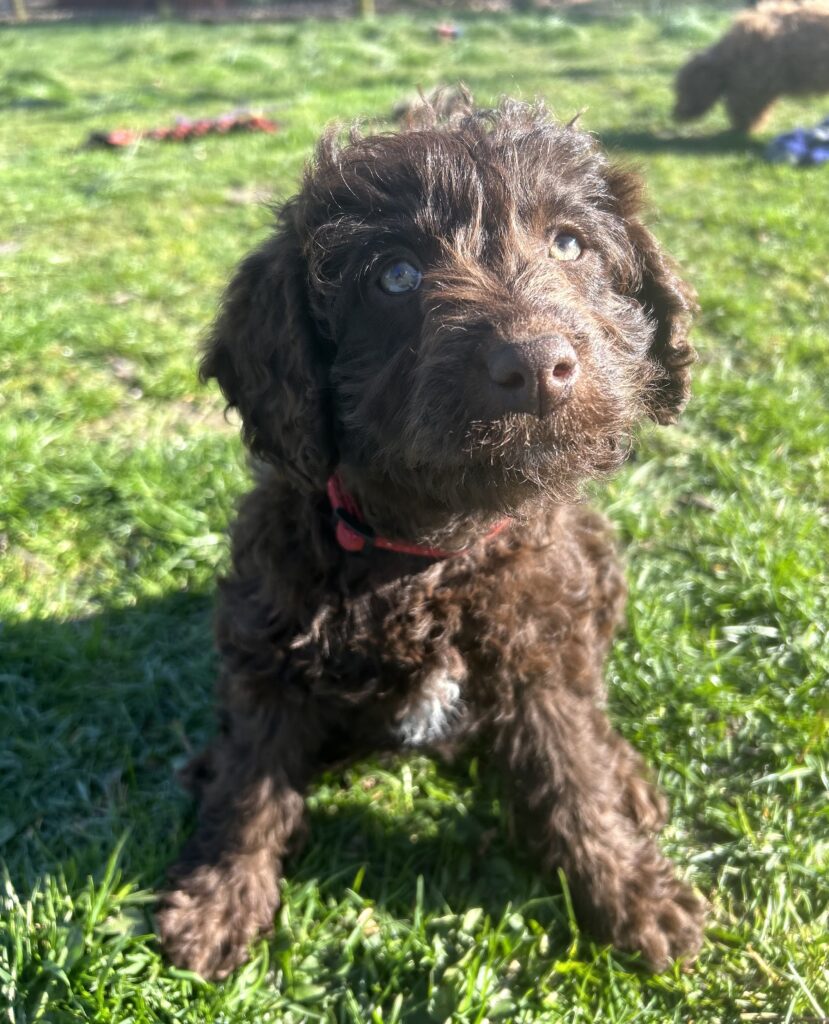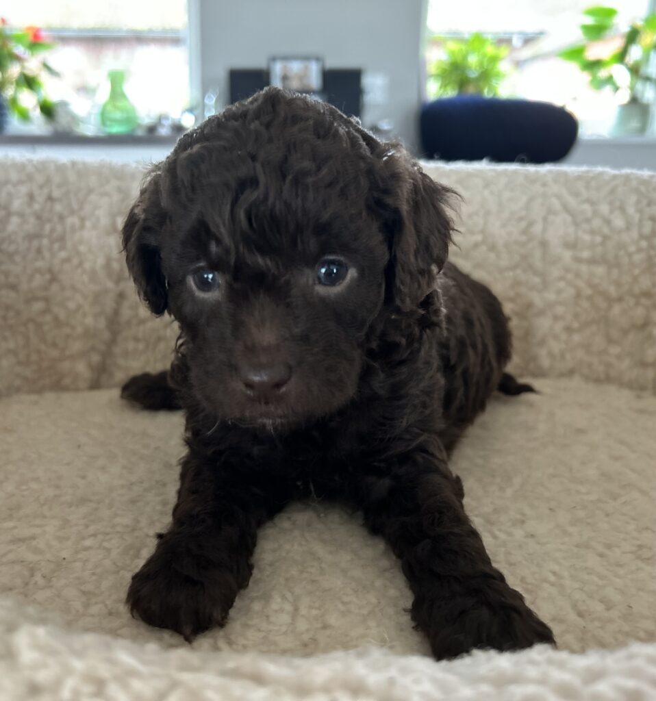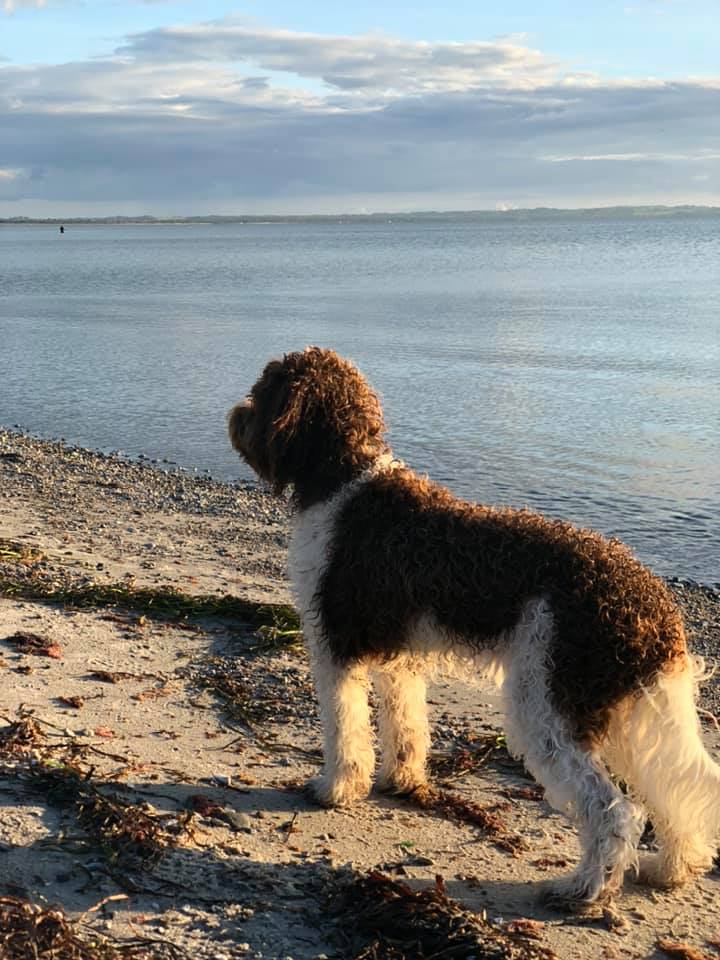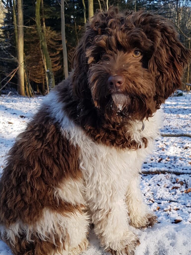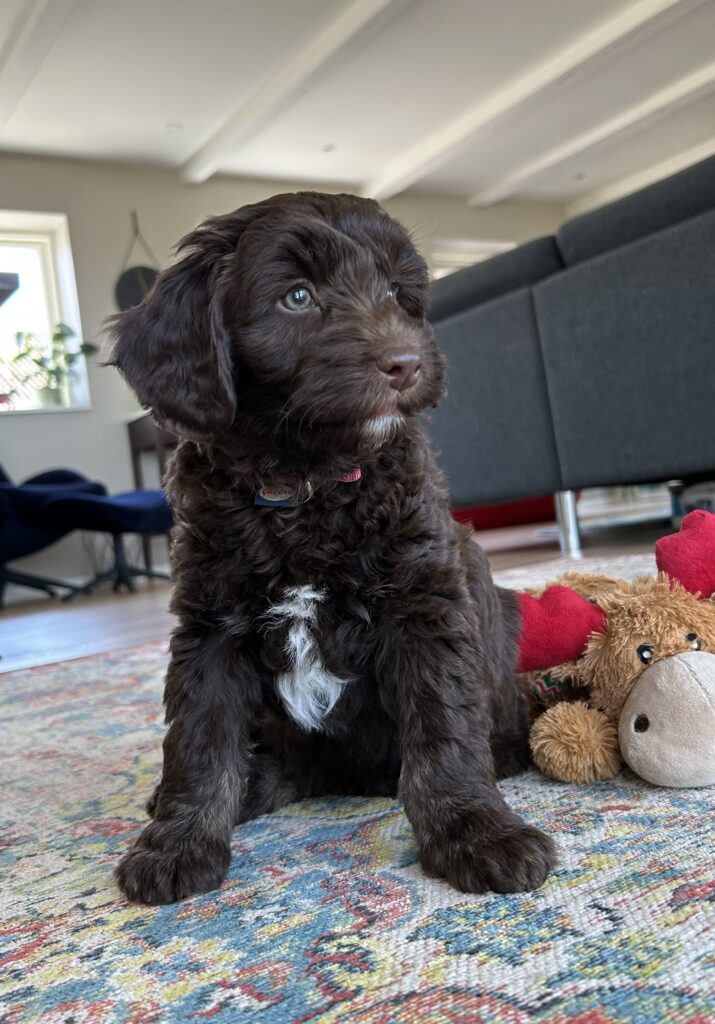 En god mellem dreng, der virker harmonisk og også lidt selvstændig, så han har det fint med bare at værei sit eget selskab ind imellem. Han vil dog super gerne lege og træne og på eventyr sammen med familien, så tro nu ikke han bare ligge og dovner den hele dagen, for doodler er aktive hunde der bør aktiveres hver eneste dag. Han er alm modig, men ikke specielt ud ad søgende i nye situationer. Han er kærlig imødekommende og vil gerne nusses, men han er ikke så vild påtrængende, som vi ofte kan opleve at vores doodler er, så bare helt almindelig venlig imødekommende.