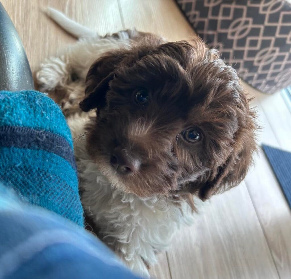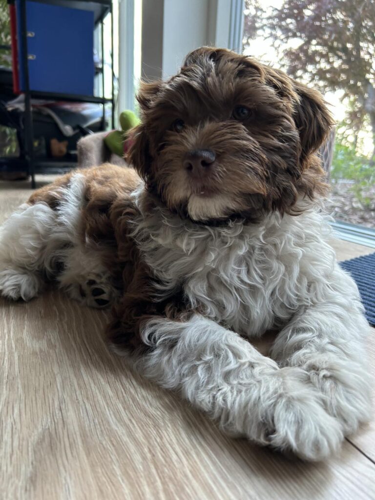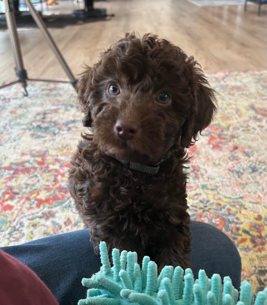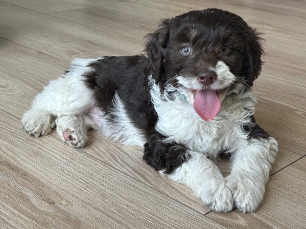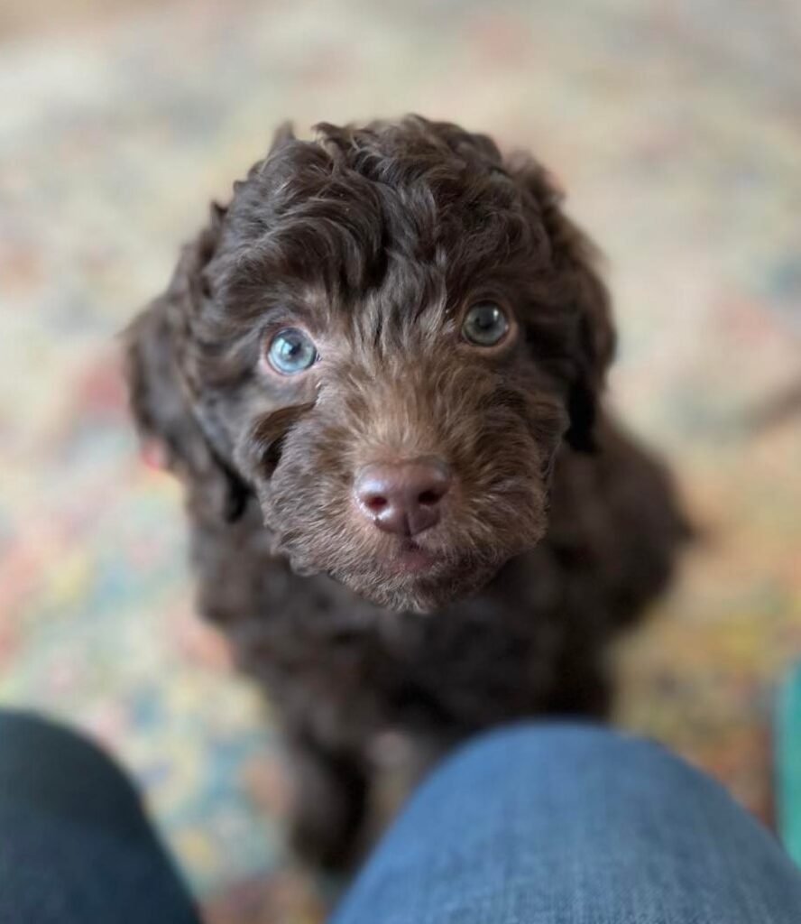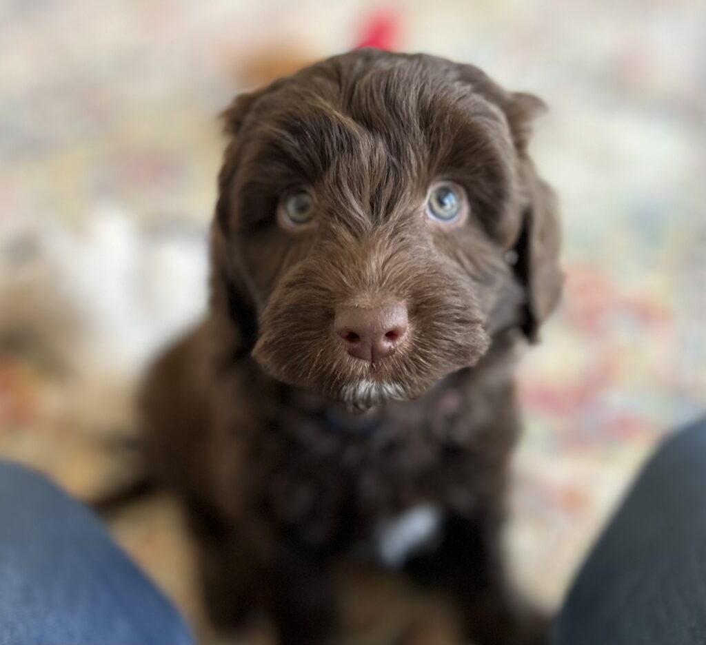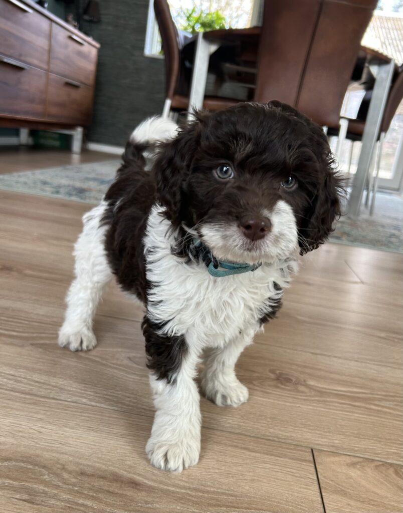 En god mellem dreng, der virker harmonisk og også lidt selvstændig, så han har det fint med bare at værei sit eget selskab ind imellem. Han vil dog super gerne lege og træne og på eventyr sammen med familien, så tro nu ikke han bare ligge og dovner den hele dagen, for doodler er aktive hunde der bør aktiveres hver eneste dag. Han er alm modig, men ikke specielt ud ad søgende i nye situationer. Han er kærlig imødekommende og vil gerne nusses, men han er ikke så vild påtrængende, som vi ofte kan opleve at vores doodler er, så bare helt almindelig venlig imødekommende.