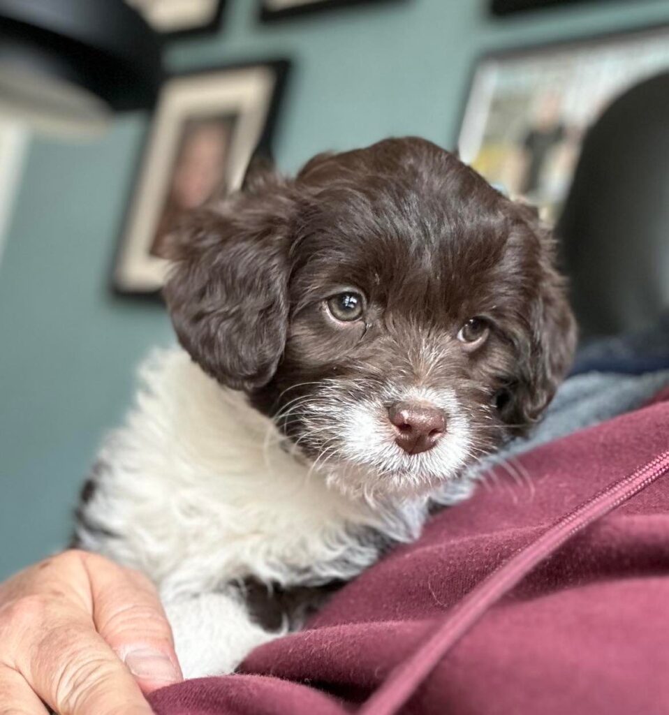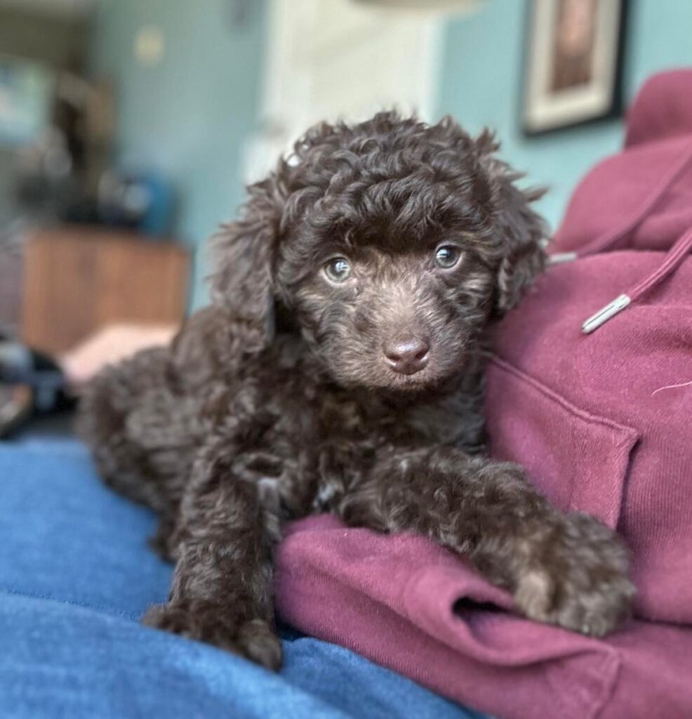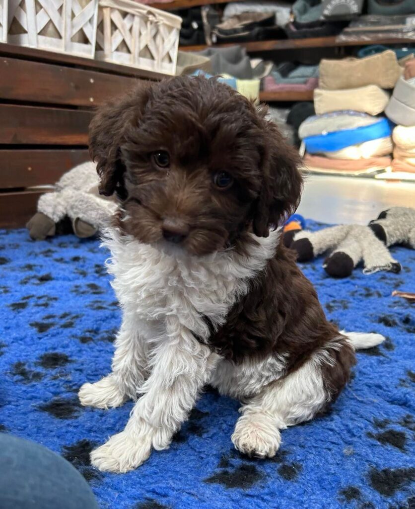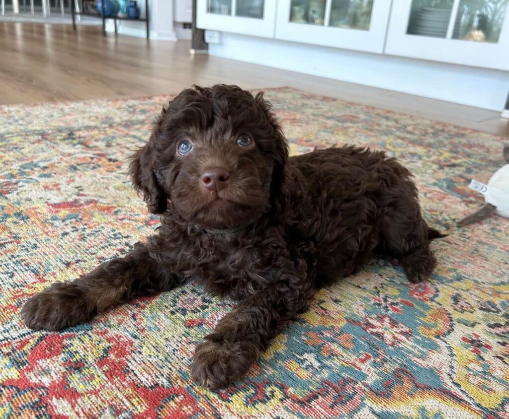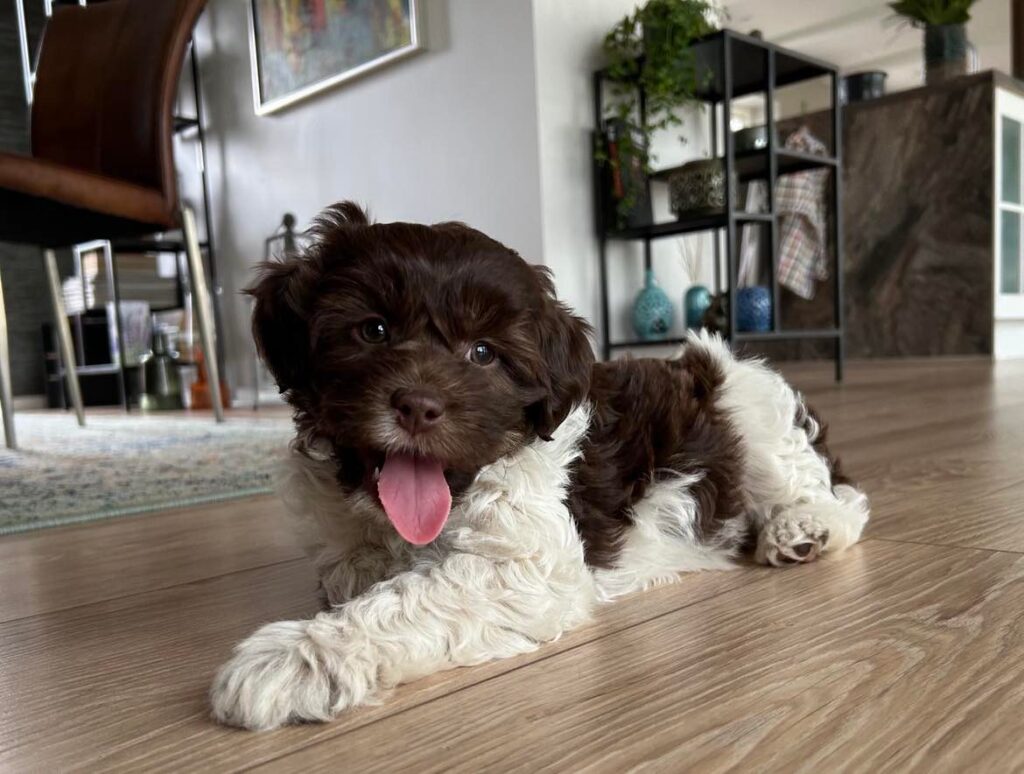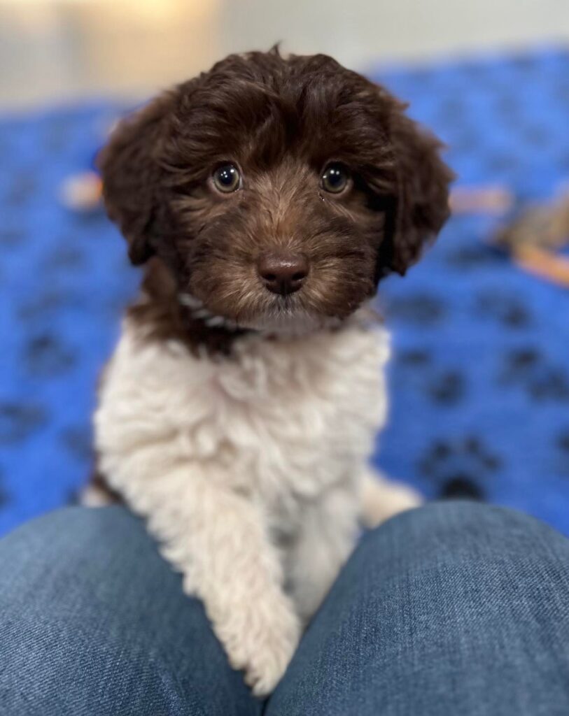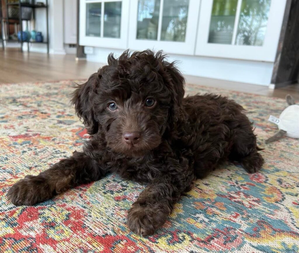 En god mellem dreng, der virker harmonisk og også lidt selvstændig, så han har det fint med bare at værei sit eget selskab ind imellem. Han vil dog super gerne lege og træne og på eventyr sammen med familien, så tro nu ikke han bare ligge og dovner den hele dagen, for doodler er aktive hunde der bør aktiveres hver eneste dag. Han er alm modig, men ikke specielt ud ad søgende i nye situationer. Han er kærlig imødekommende og vil gerne nusses, men han er ikke så vild påtrængende, som vi ofte kan opleve at vores doodler er, så bare helt almindelig venlig imødekommende.