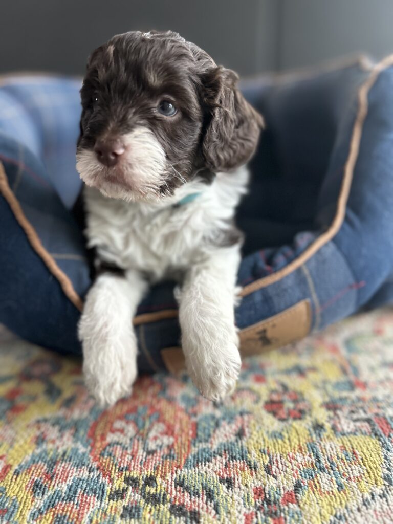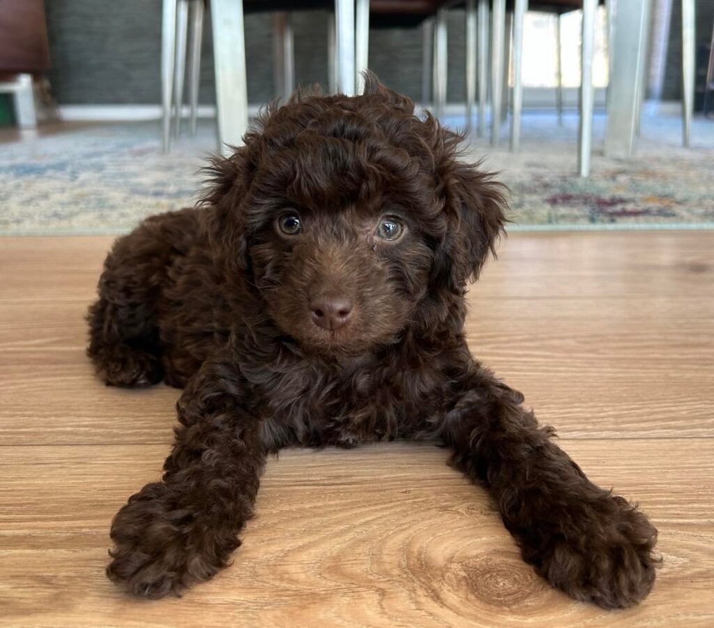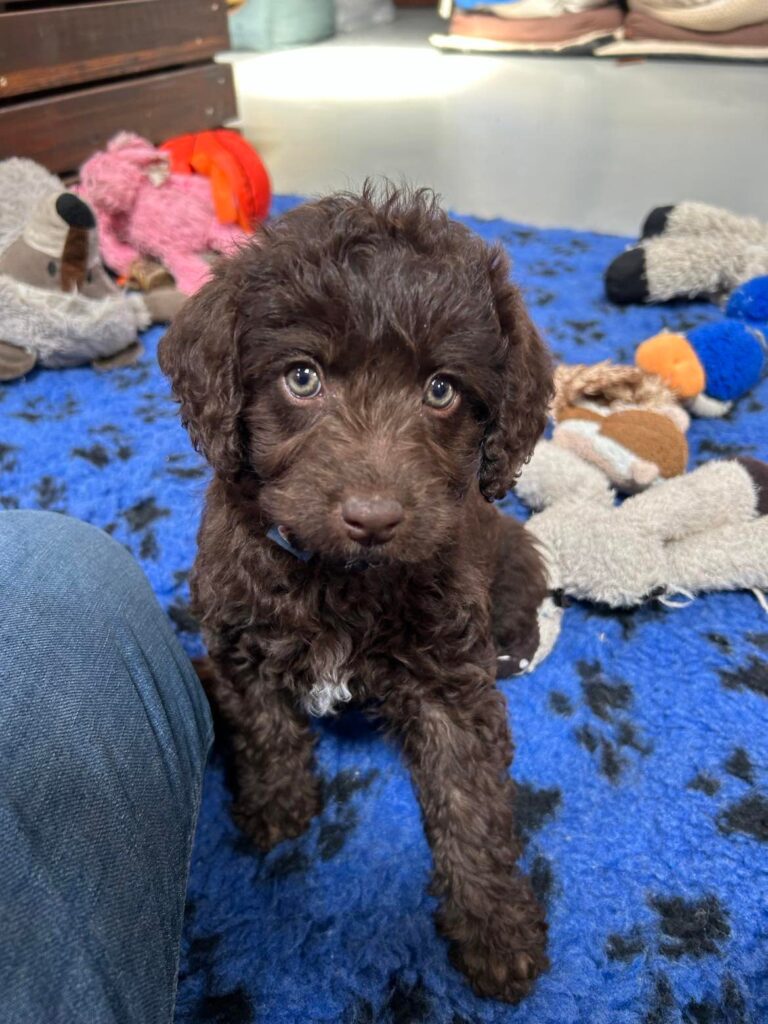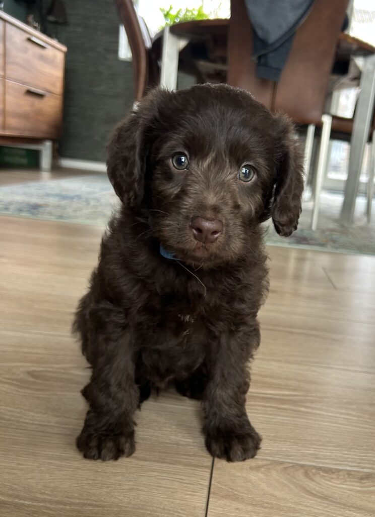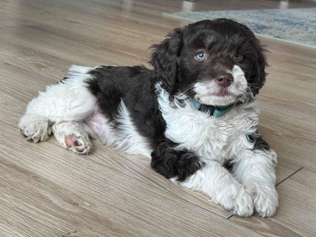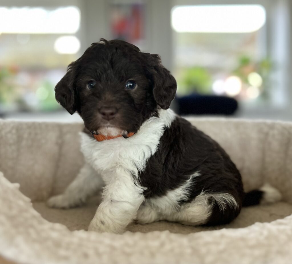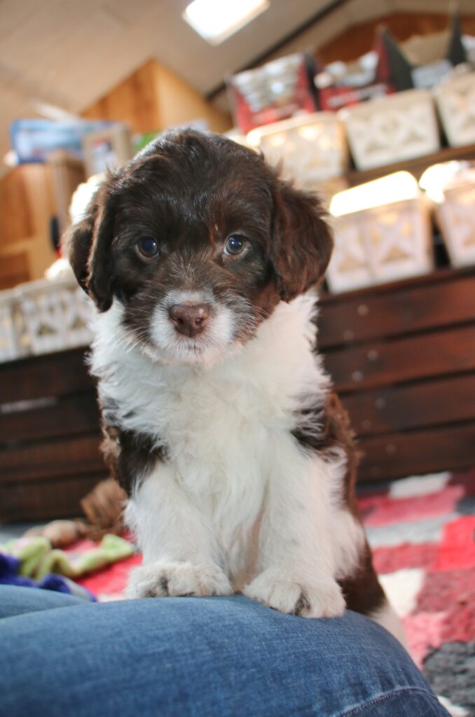 En god mellem dreng, der virker harmonisk og også lidt selvstændig, så han har det fint med bare at værei sit eget selskab ind imellem. Han vil dog super gerne lege og træne og på eventyr sammen med familien, så tro nu ikke han bare ligge og dovner den hele dagen, for doodler er aktive hunde der bør aktiveres hver eneste dag. Han er alm modig, men ikke specielt ud ad søgende i nye situationer. Han er kærlig imødekommende og vil gerne nusses, men han er ikke så vild påtrængende, som vi ofte kan opleve at vores doodler er, så bare helt almindelig venlig imødekommende.