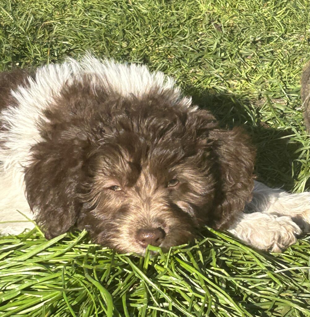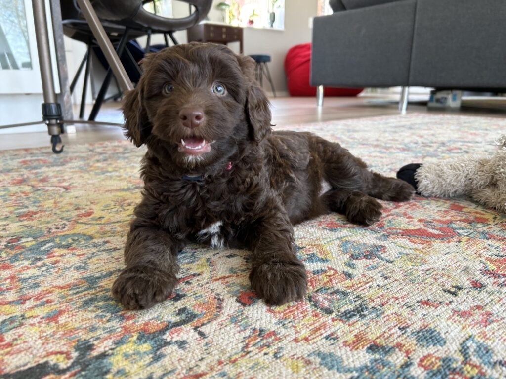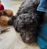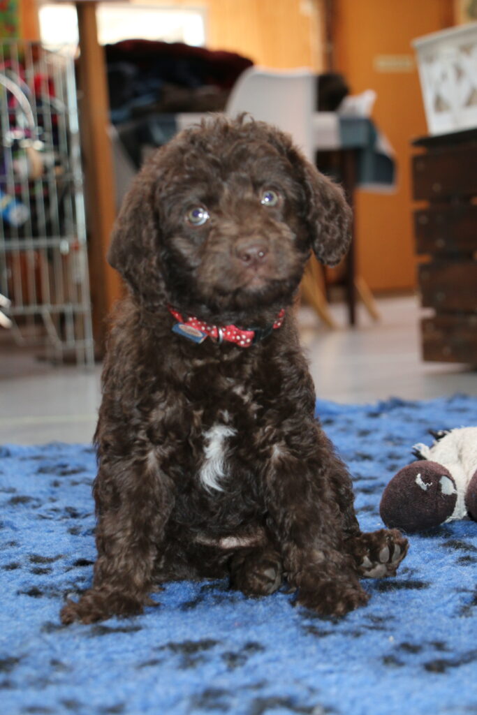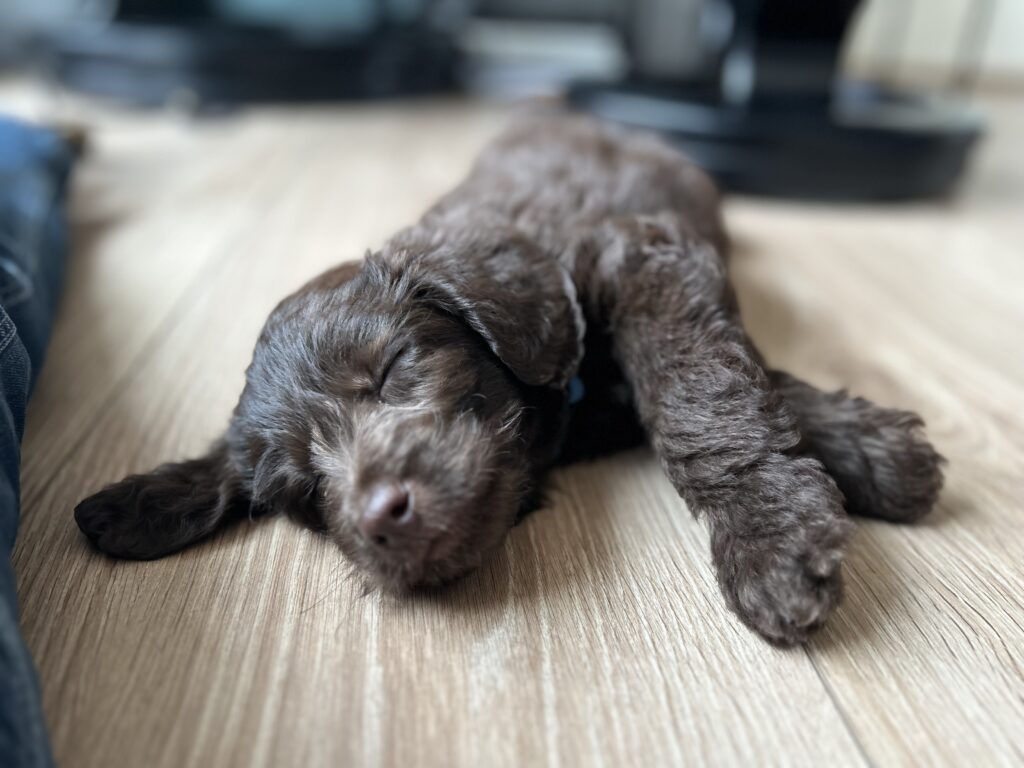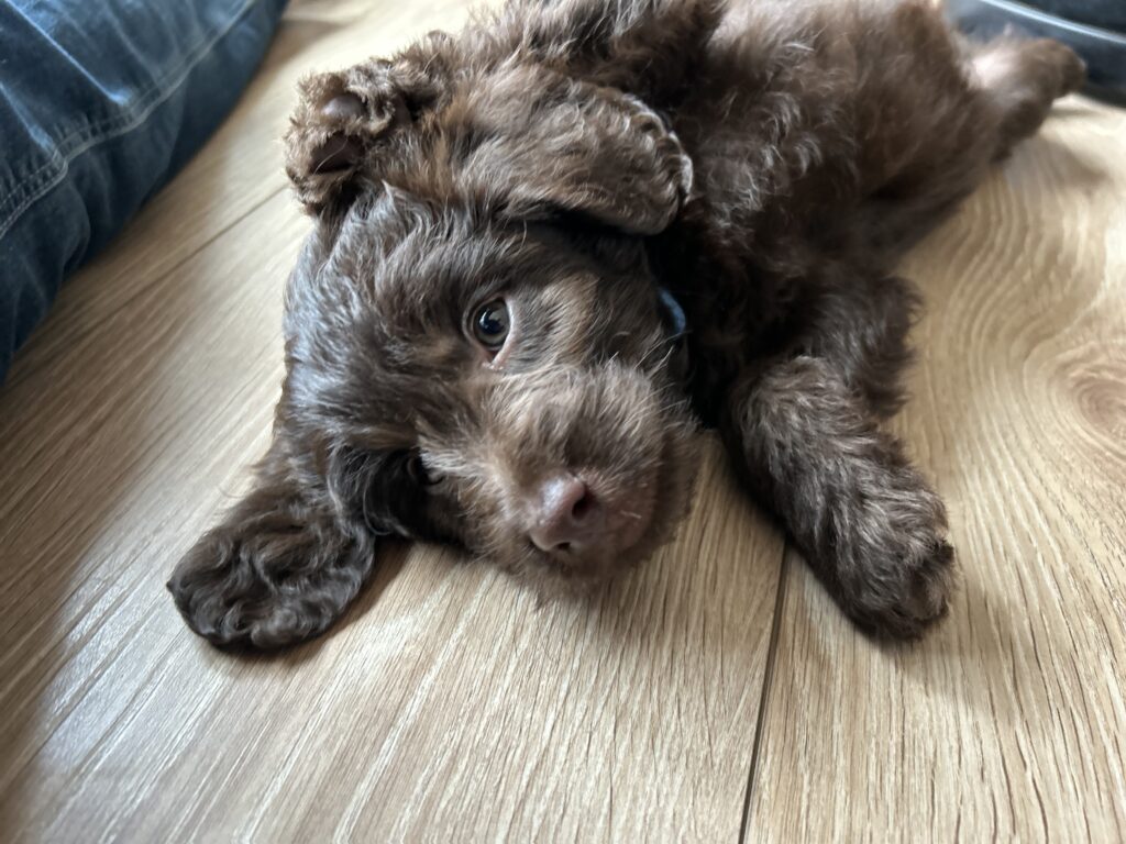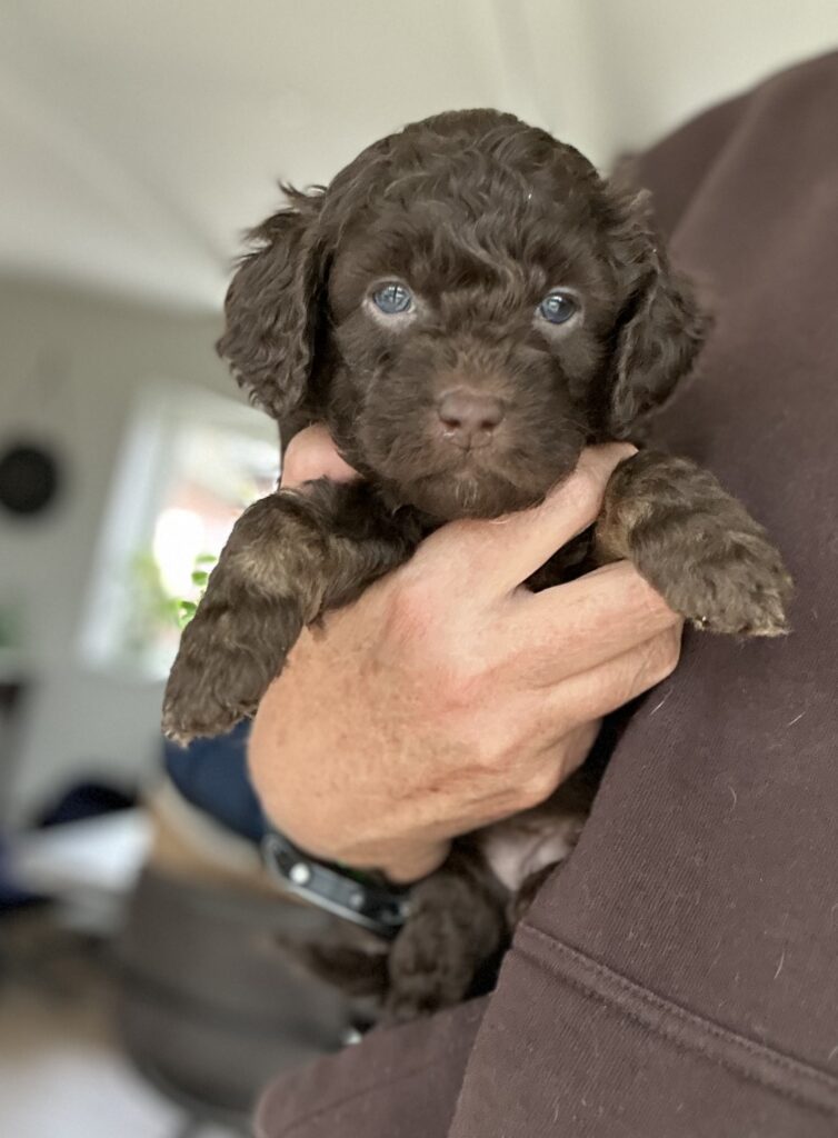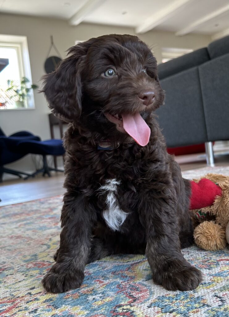Laks er en lille kvik pige. Hun er bestemt den mindste i kuldet og kommer nok ikke op på de 8 kilo. Men hold da op hvor er hun også hurtig, både i kroppe og i hovedet. En dejlig aktiv, initiativrig og tilpas fræk lille pige. Hun elsker at lege og er super hurtig når hun skal fange bamsen mv. Så elsker man en lille men kvik hund, så er hun måske noget for jer. Hun er okay selvstændig og tilpas modig af en lille hvalp at være. Så hun tør godt gå ud i nye omgivelser og er tilpas nysgerrig til at gøre det. Hun vil også gerne nusse, hygge og dele kysser ud, men har ikke behov for at ligge på skødet 24/7, så vil hun heller bruge tiden på lege og komme med på eventyr. Husk hun er også god til bare at ligge og slappe helt af i mellem dagens aktiviteter. Ingen doodler er aktive hele dagen.