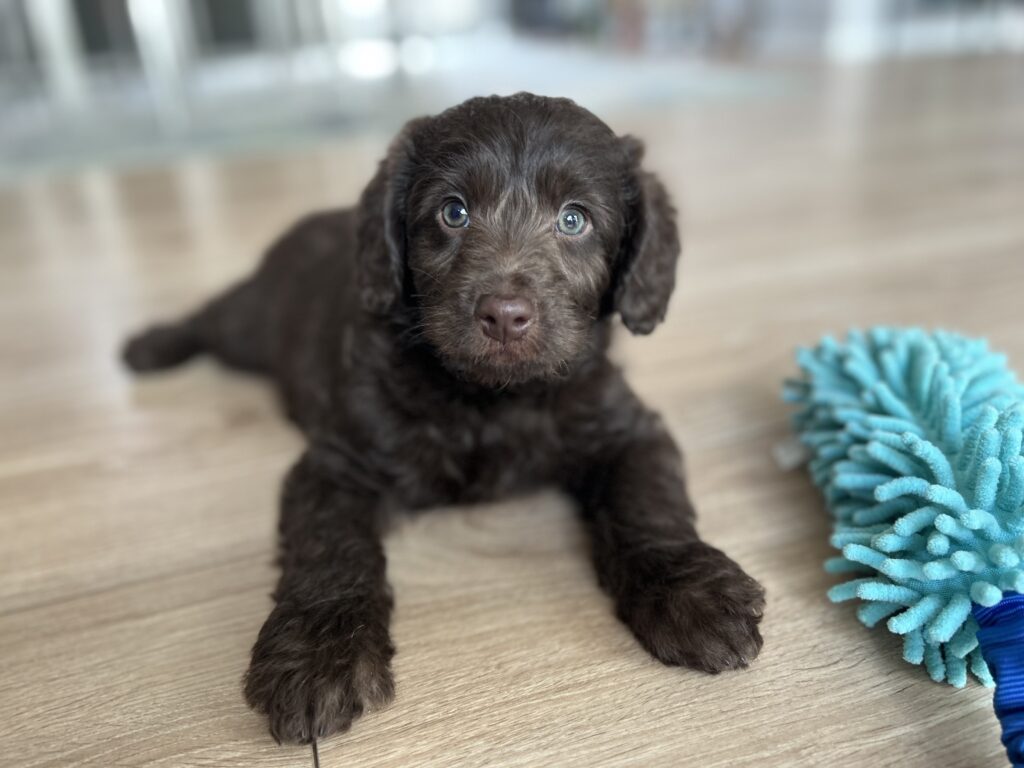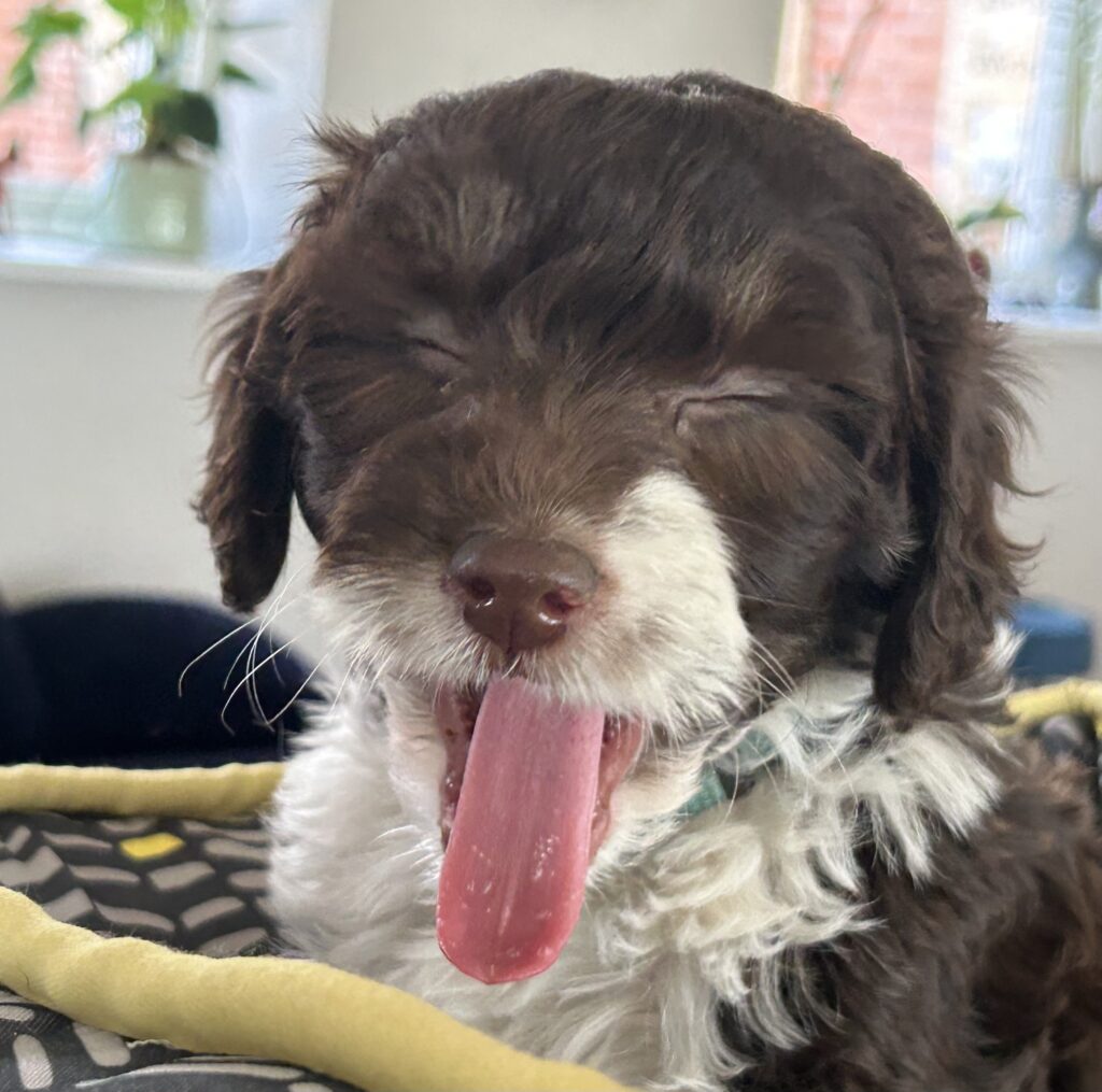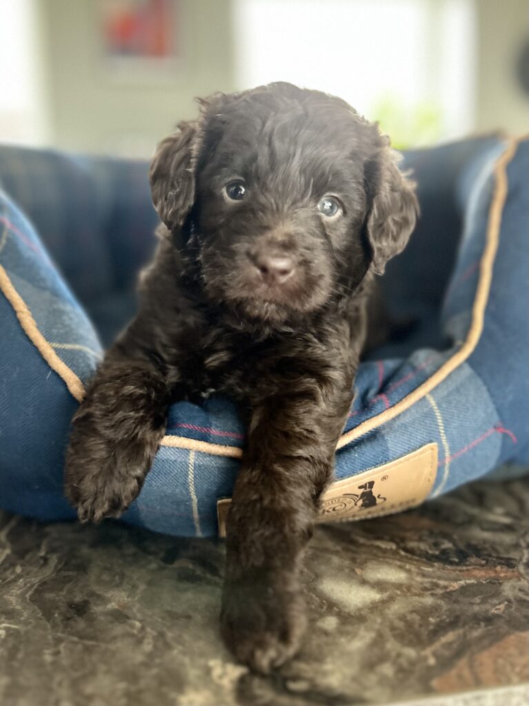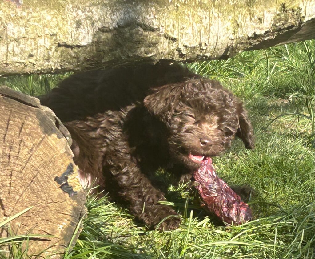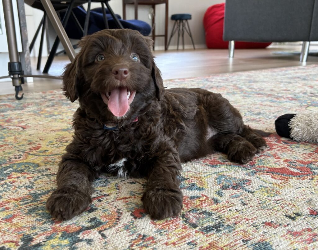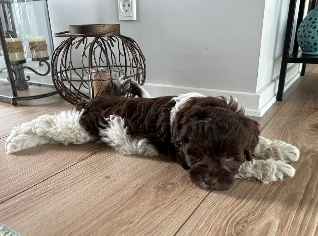 Laks er en lille kvik pige. Hun er bestemt den mindste i kuldet og kommer nok ikke op på de 8 kilo. Men hold da op hvor er hun også hurtig, både i kroppe og i hovedet. En dejlig aktiv, initiativrig og tilpas fræk lille pige. Hun elsker at lege og er super hurtig når hun skal fange bamsen mv. Så elsker man en lille men kvik hund, så er hun måske noget for jer. Hun er okay selvstændig og tilpas modig af en lille hvalp at være. Så hun tør godt gå ud i nye omgivelser og er tilpas nysgerrig til at gøre det. Hun vil også gerne nusse, hygge og dele kysser ud, men har ikke behov for at ligge på skødet 24/7, så vil hun heller bruge tiden på lege og komme med på eventyr. Husk hun er også god til bare at ligge og slappe helt af i mellem dagens aktiviteter. Ingen doodler er aktive hele dagen.