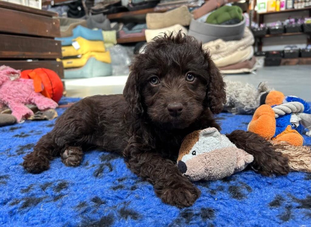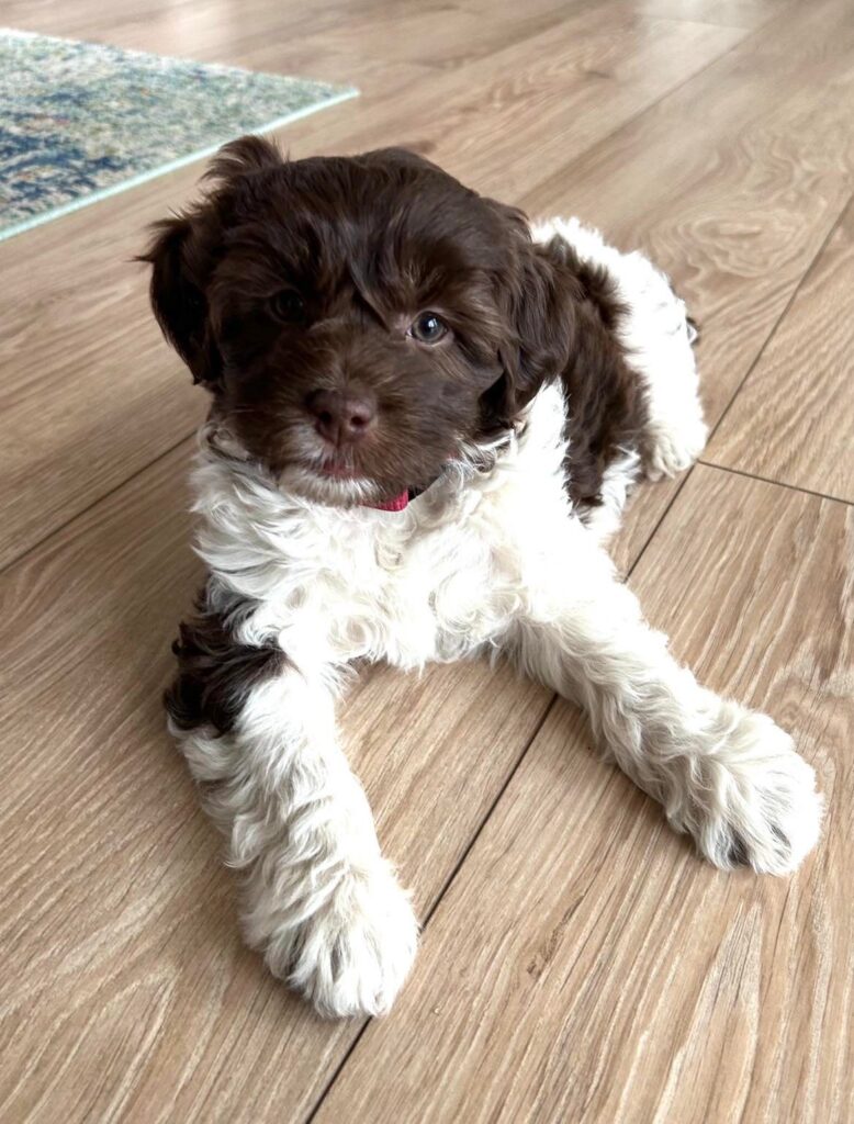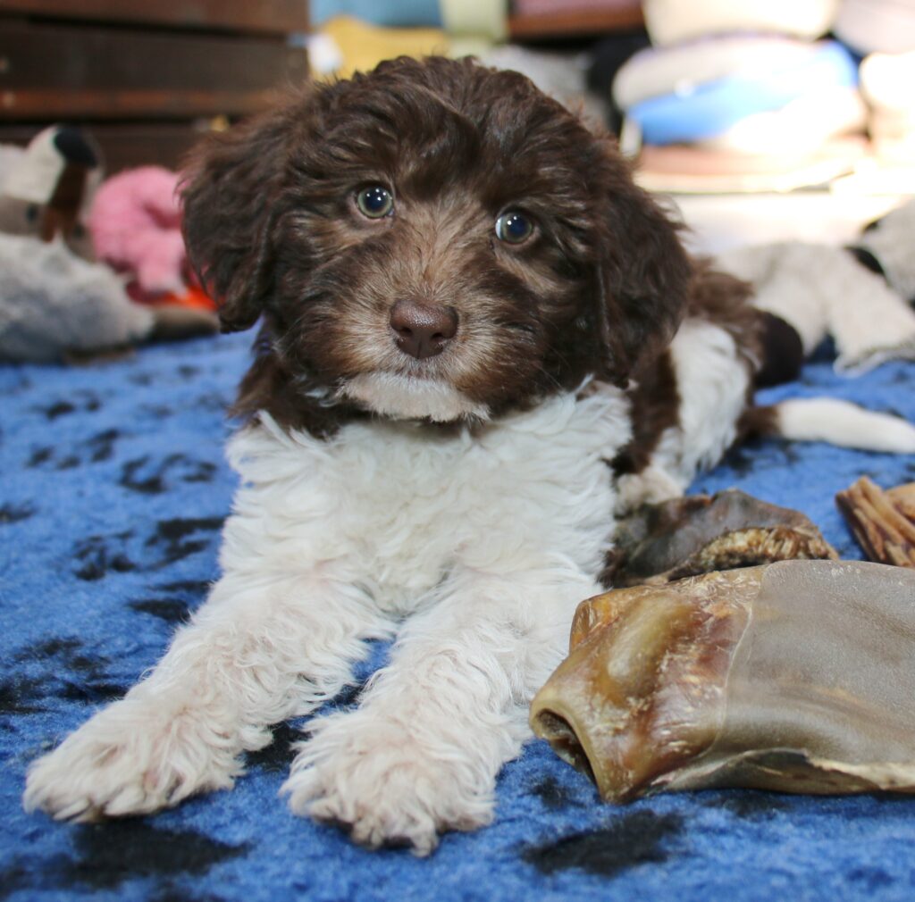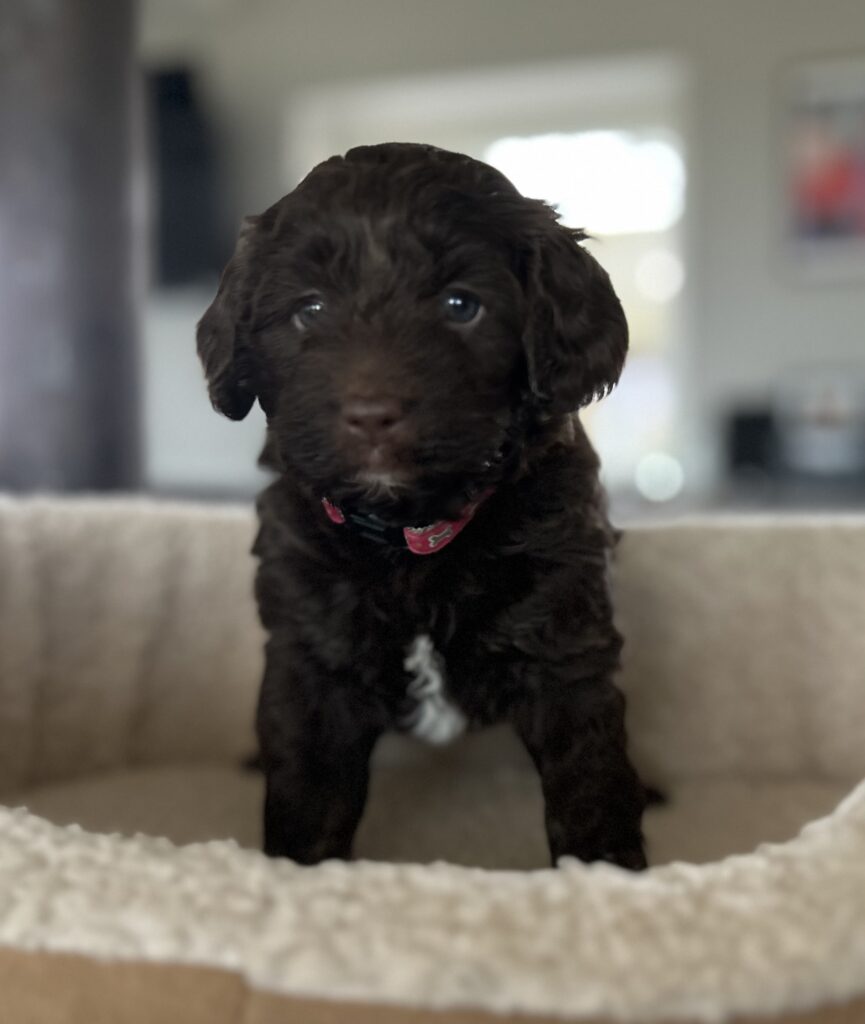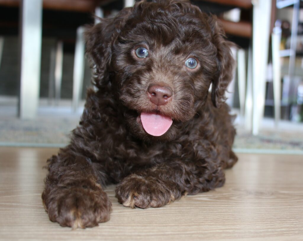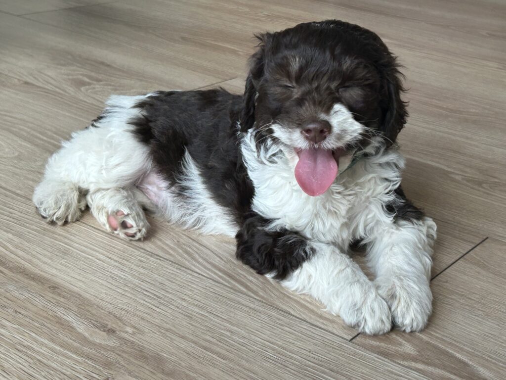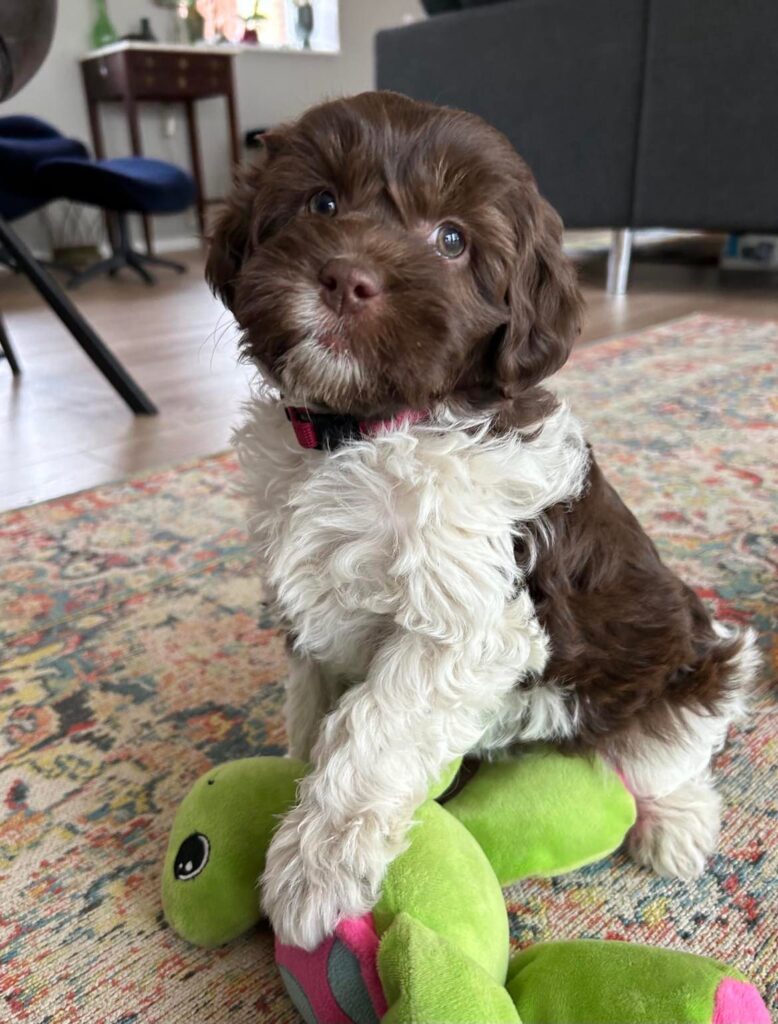 Laks er en lille kvik pige. Hun er bestemt den mindste i kuldet og kommer nok ikke op på de 8 kilo. Men hold da op hvor er hun også hurtig, både i kroppe og i hovedet. En dejlig aktiv, initiativrig og tilpas fræk lille pige. Hun elsker at lege og er super hurtig når hun skal fange bamsen mv. Så elsker man en lille men kvik hund, så er hun måske noget for jer. Hun er okay selvstændig og tilpas modig af en lille hvalp at være. Så hun tør godt gå ud i nye omgivelser og er tilpas nysgerrig til at gøre det. Hun vil også gerne nusse, hygge og dele kysser ud, men har ikke behov for at ligge på skødet 24/7, så vil hun heller bruge tiden på lege og komme med på eventyr. Husk hun er også god til bare at ligge og slappe helt af i mellem dagens aktiviteter. Ingen doodler er aktive hele dagen.