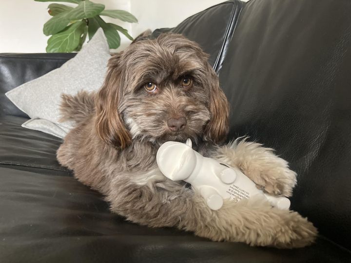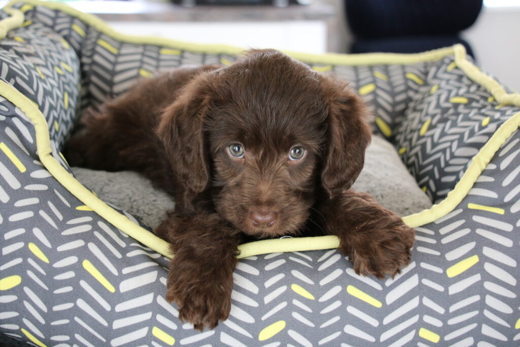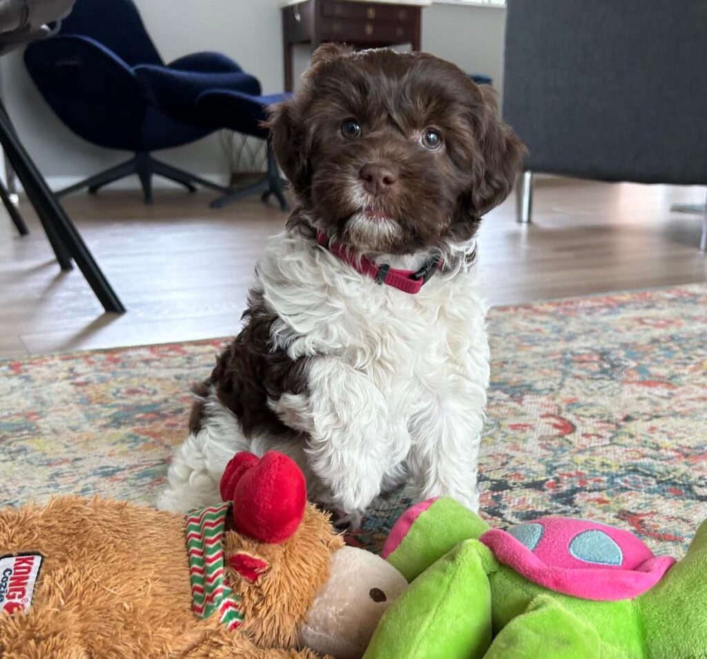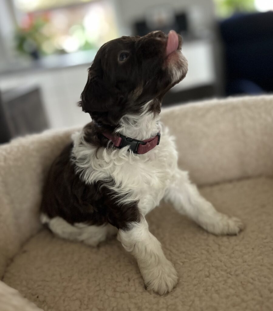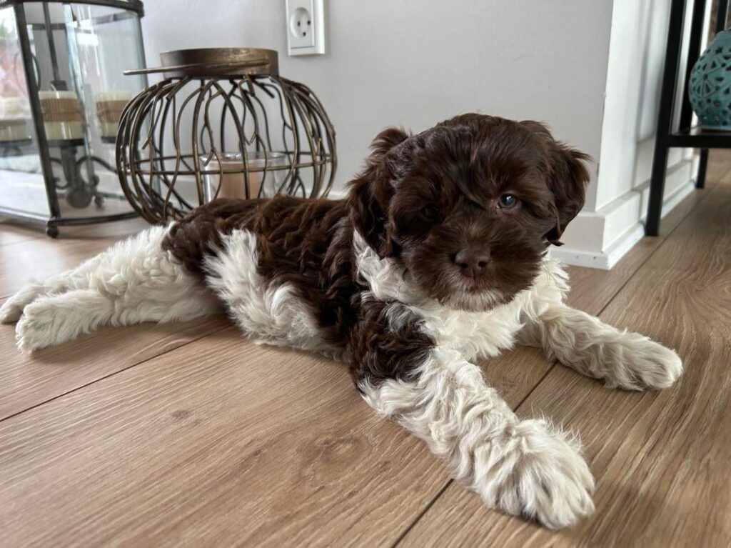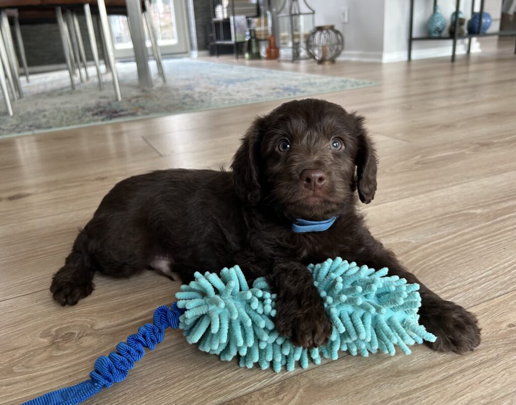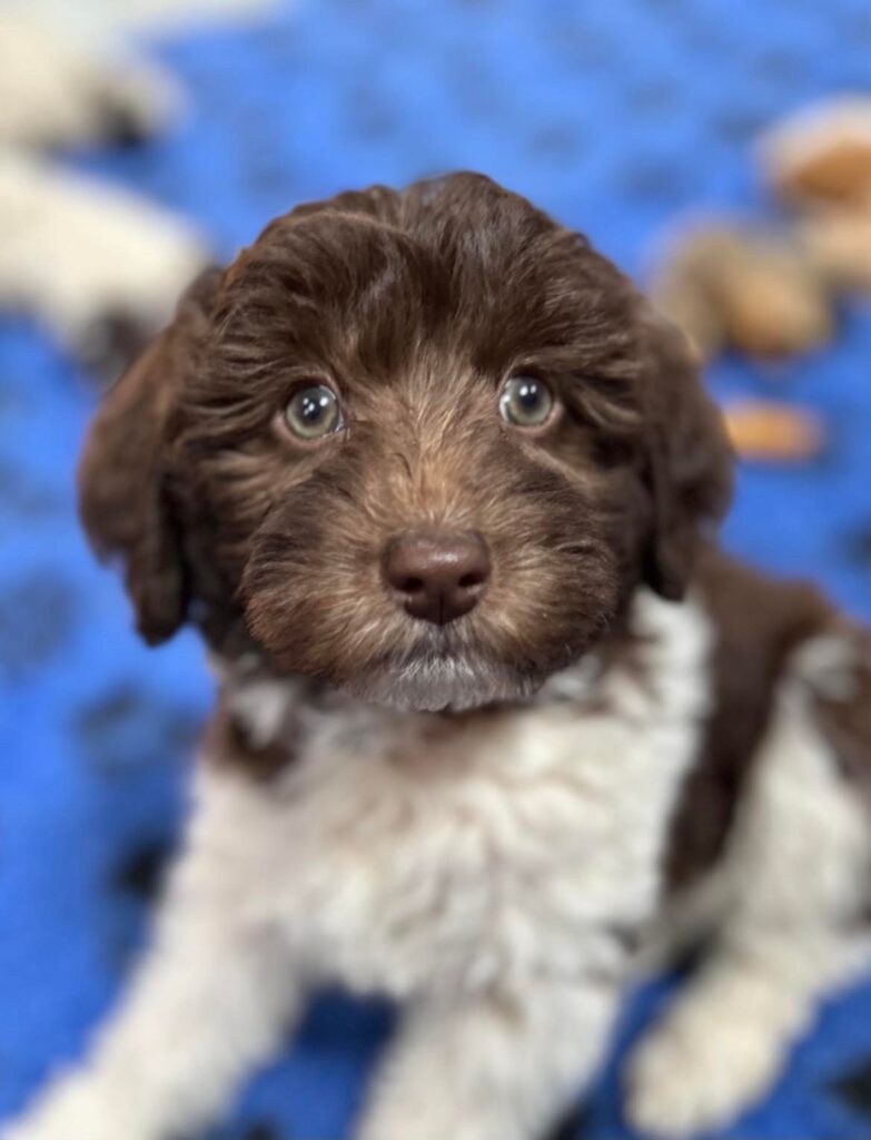 Laks er en lille kvik pige. Hun er bestemt den mindste i kuldet og kommer nok ikke op på de 8 kilo. Men hold da op hvor er hun også hurtig, både i kroppe og i hovedet. En dejlig aktiv, initiativrig og tilpas fræk lille pige. Hun elsker at lege og er super hurtig når hun skal fange bamsen mv. Så elsker man en lille men kvik hund, så er hun måske noget for jer. Hun er okay selvstændig og tilpas modig af en lille hvalp at være. Så hun tør godt gå ud i nye omgivelser og er tilpas nysgerrig til at gøre det. Hun vil også gerne nusse, hygge og dele kysser ud, men har ikke behov for at ligge på skødet 24/7, så vil hun heller bruge tiden på lege og komme med på eventyr. Husk hun er også god til bare at ligge og slappe helt af i mellem dagens aktiviteter. Ingen doodler er aktive hele dagen.