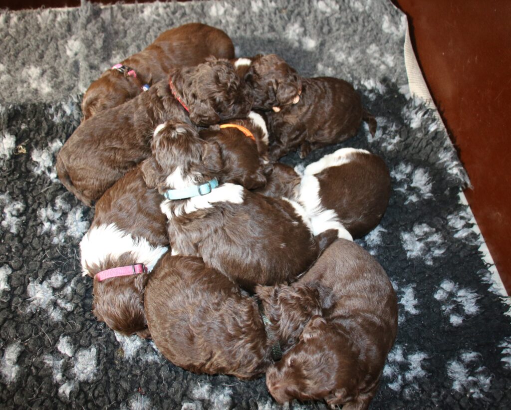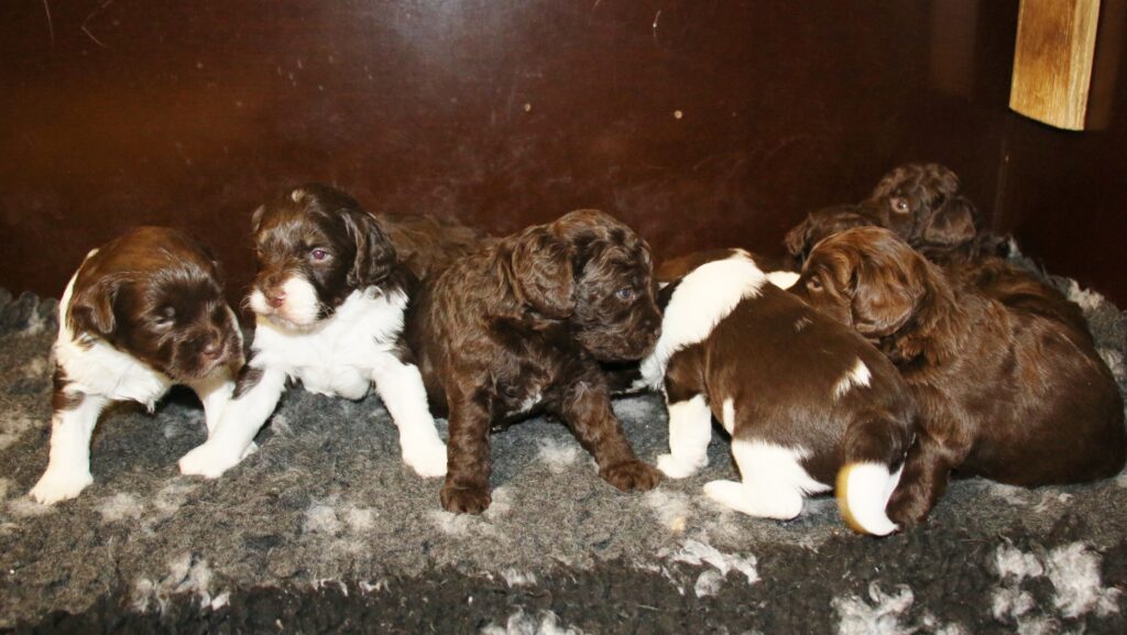 Vores mini/mellem Labradoodle F1 Bali og vores lille toy Pudel Peanut har fået hvalpe sammen igen.