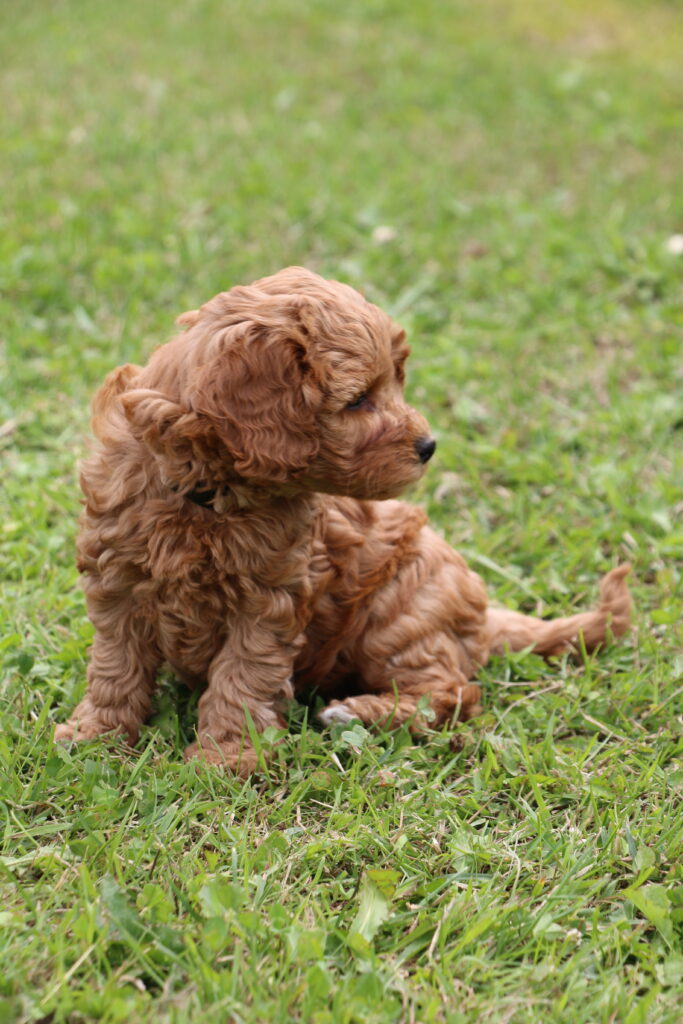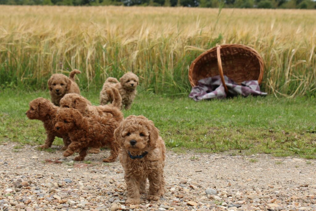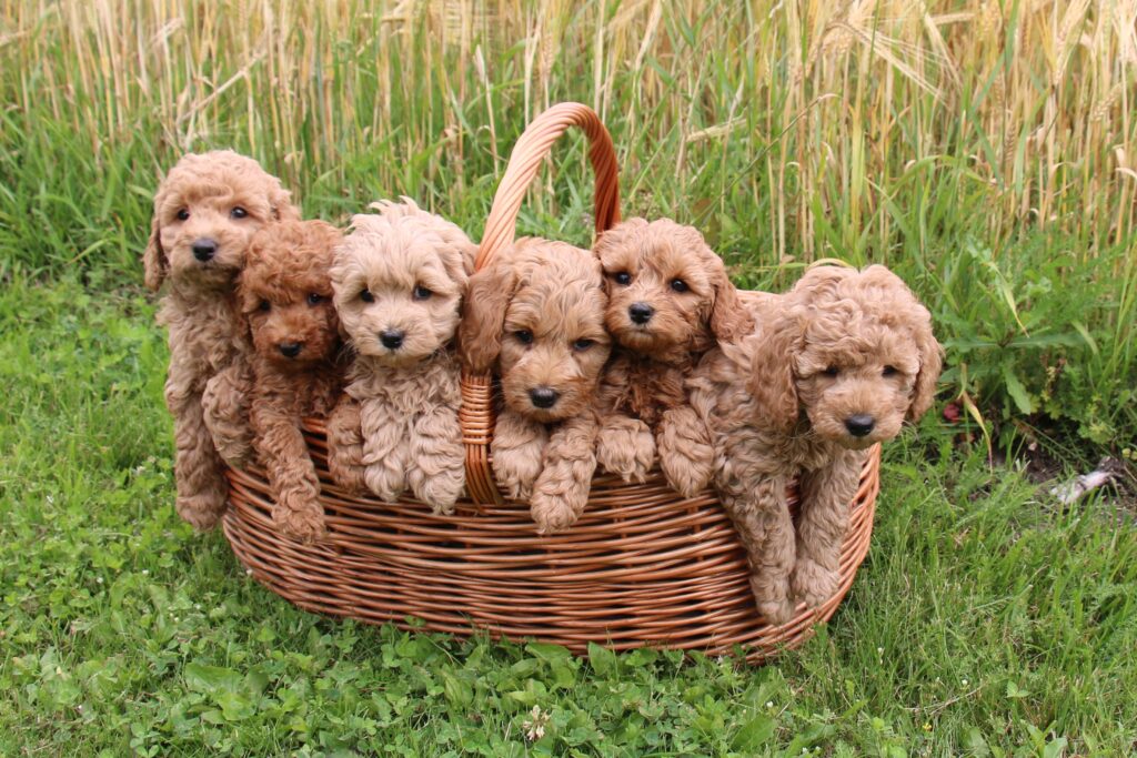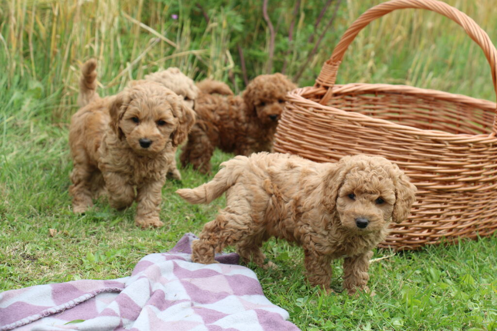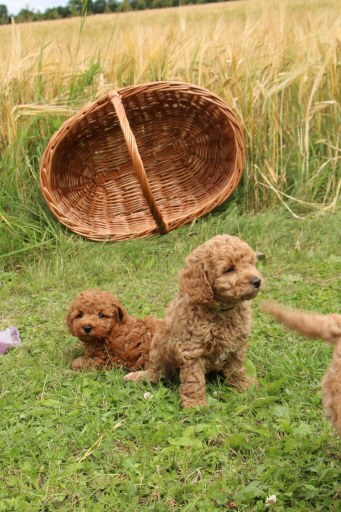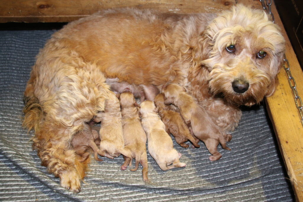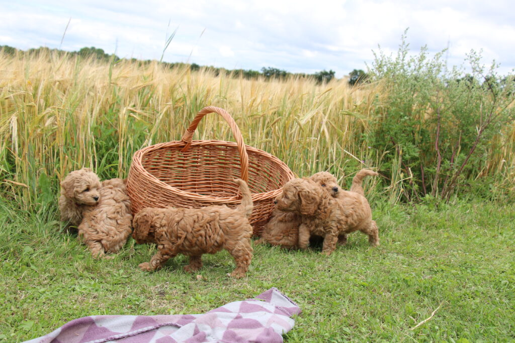 Vores mini/mellem Goldendoodle F1 Chili har fået 6 hvalpe med vores lille Cavapoo F1 Soul.