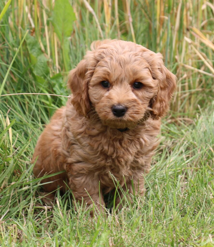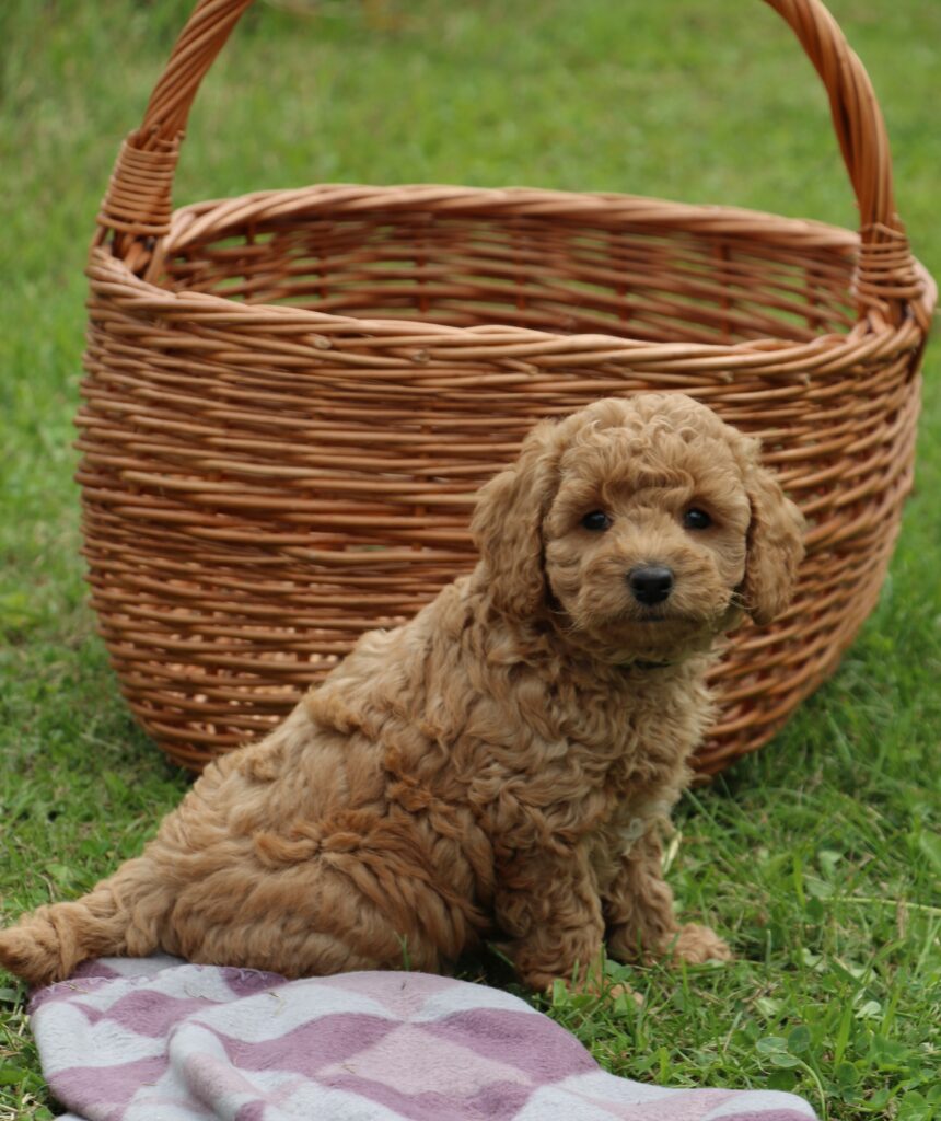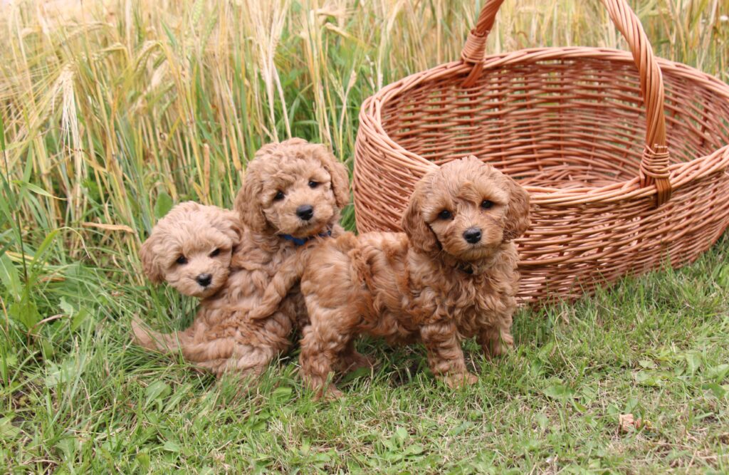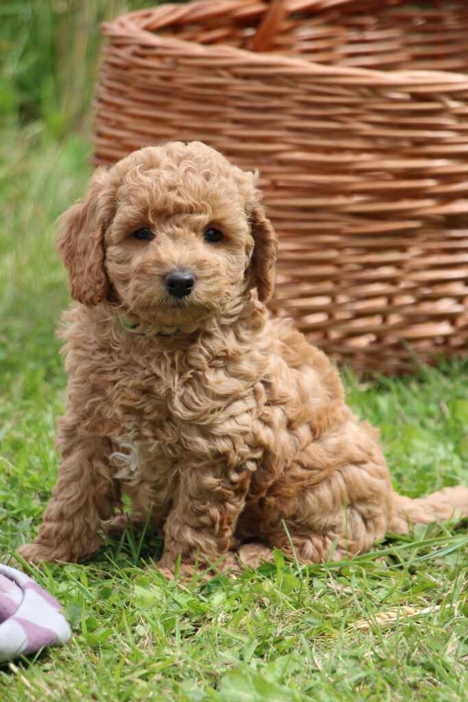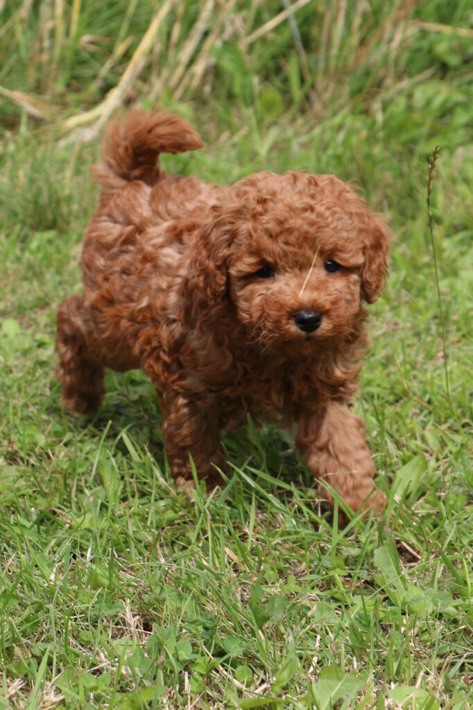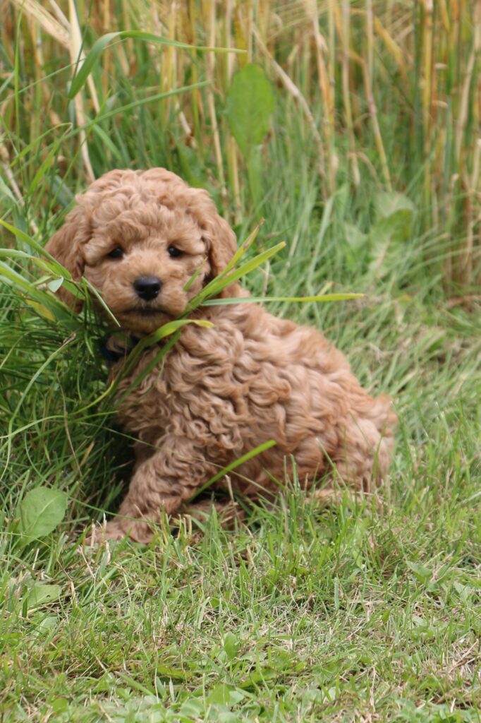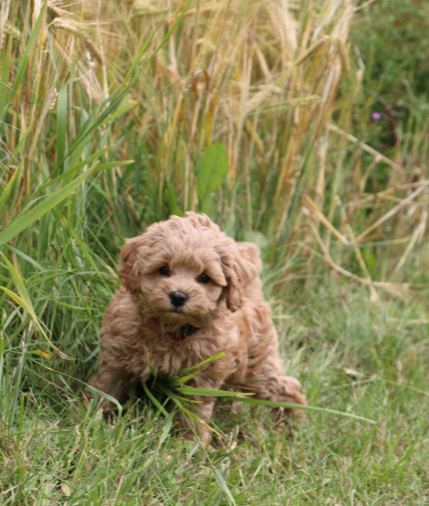 Vores mini/mellem Goldendoodle F1 Chili har fået 6 hvalpe med vores lille Cavapoo F1 Soul.