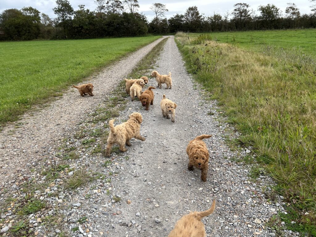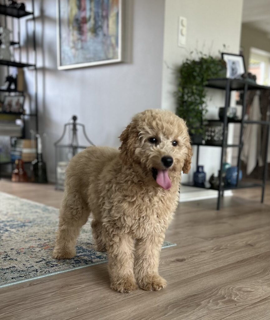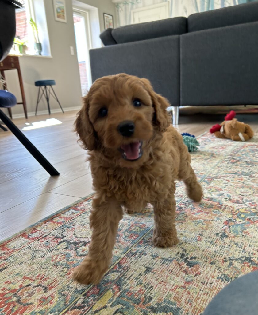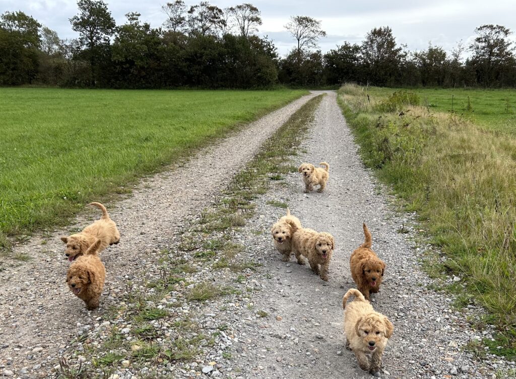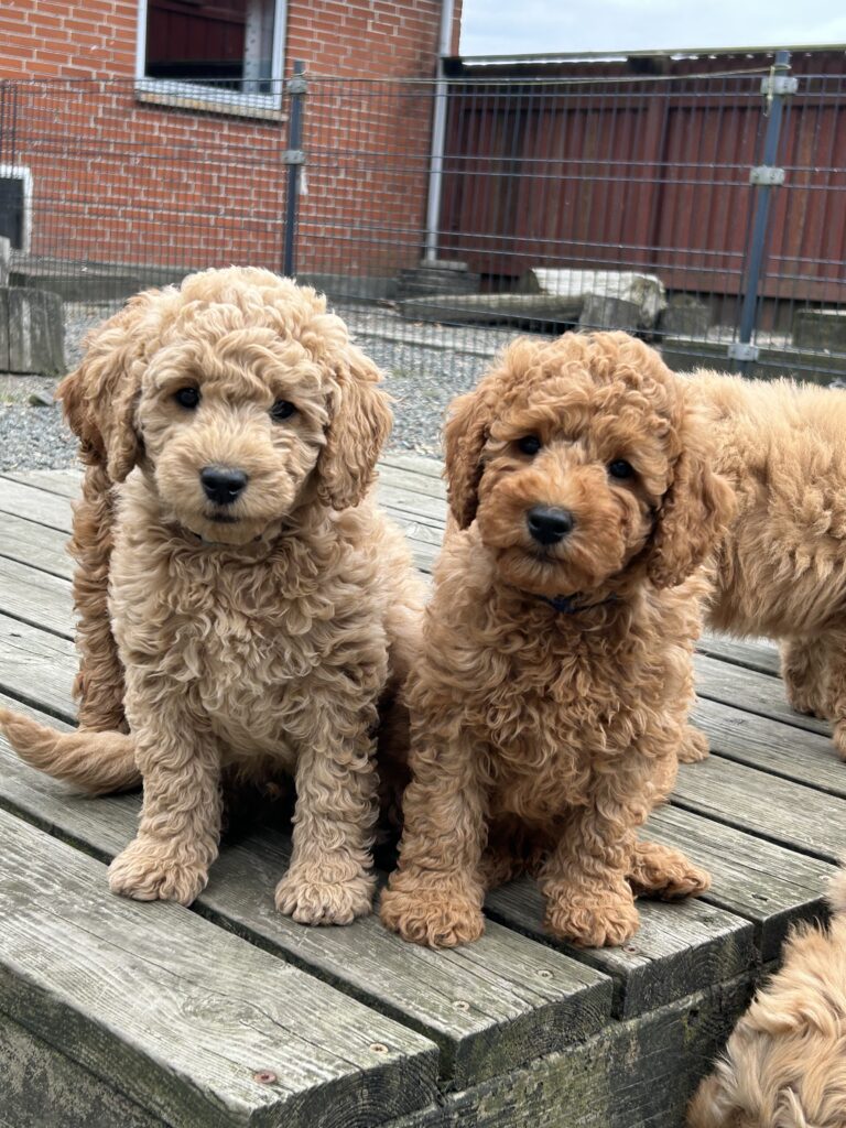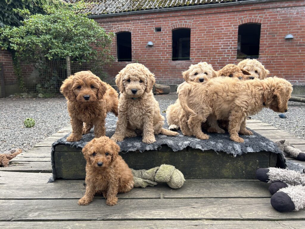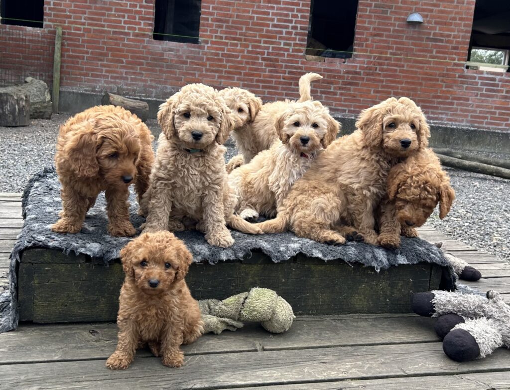 Vores mellem Goldendoodle har fået hvalpe med vores lille Cavapoo Soul.