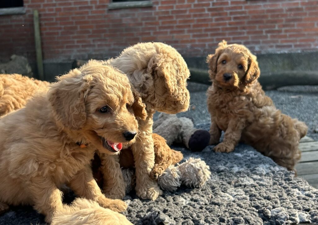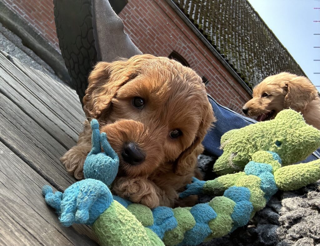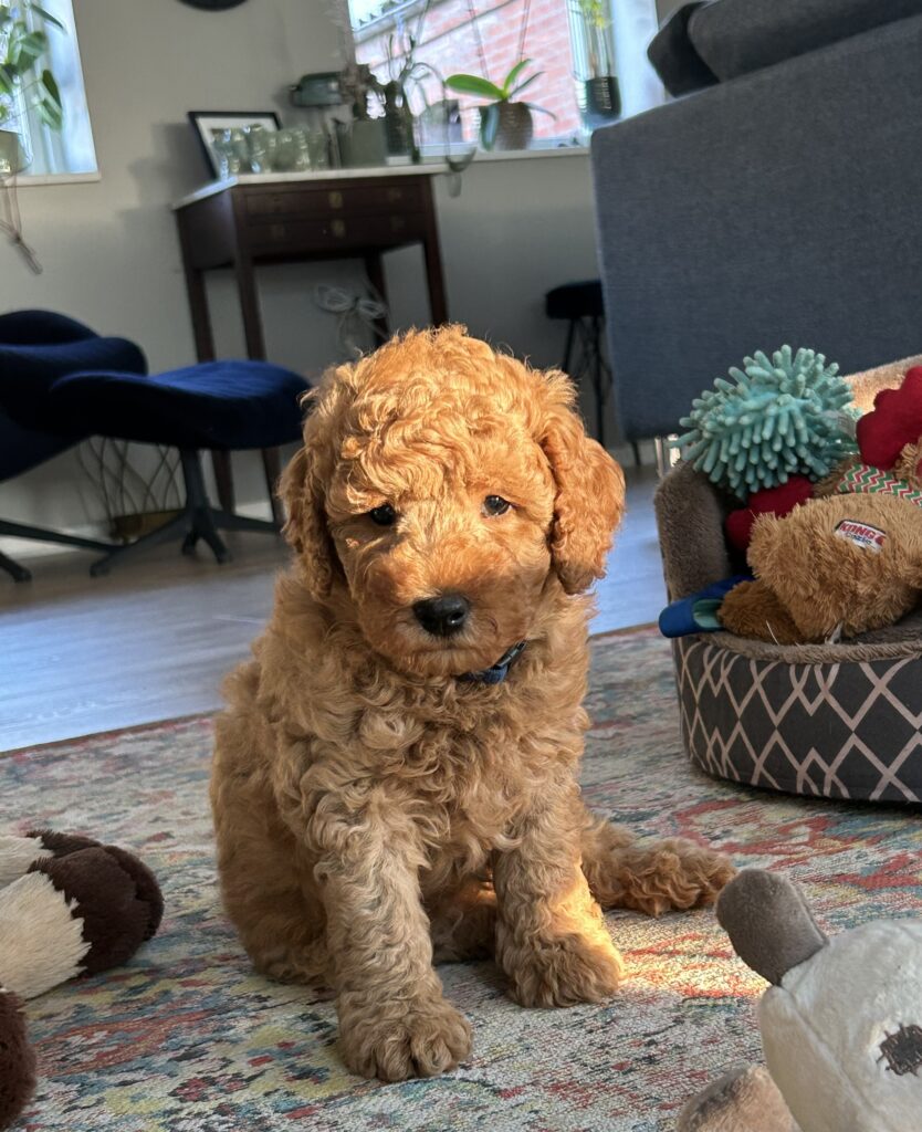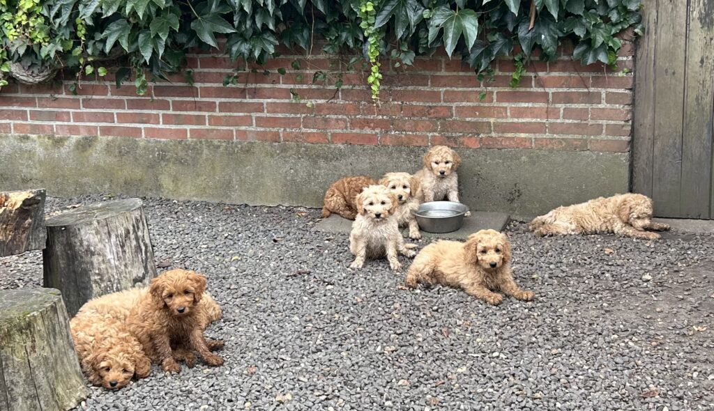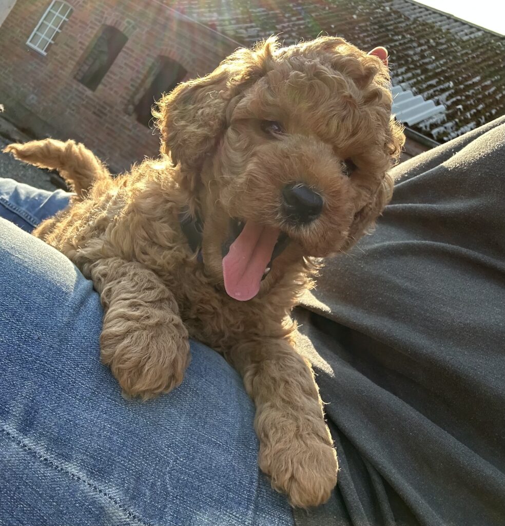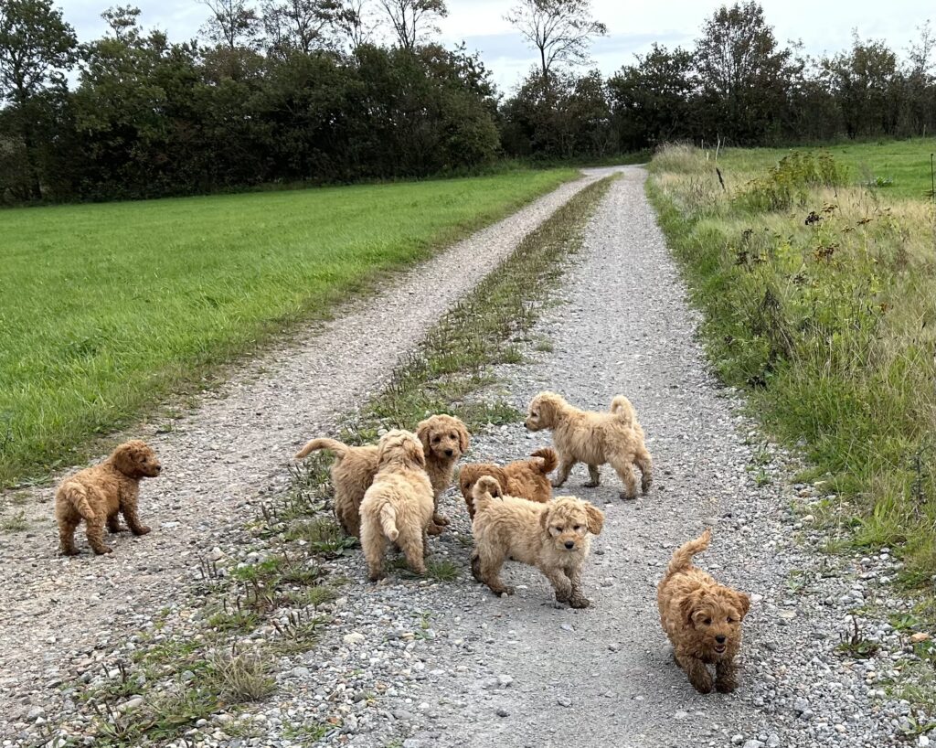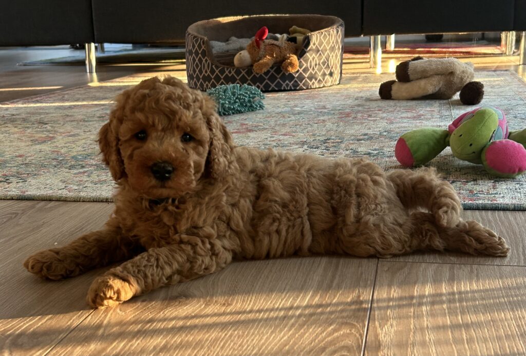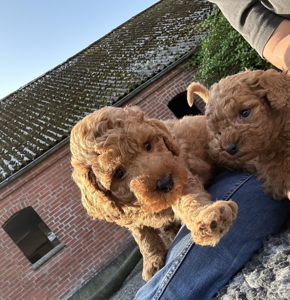Vores mellem Goldendoodle har fået hvalpe med vores lille Cavapoo Soul.