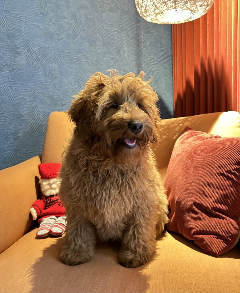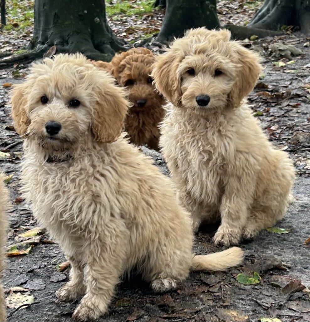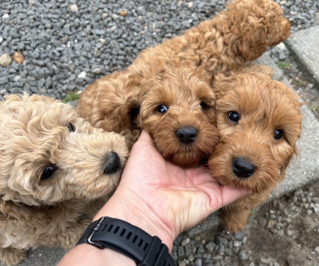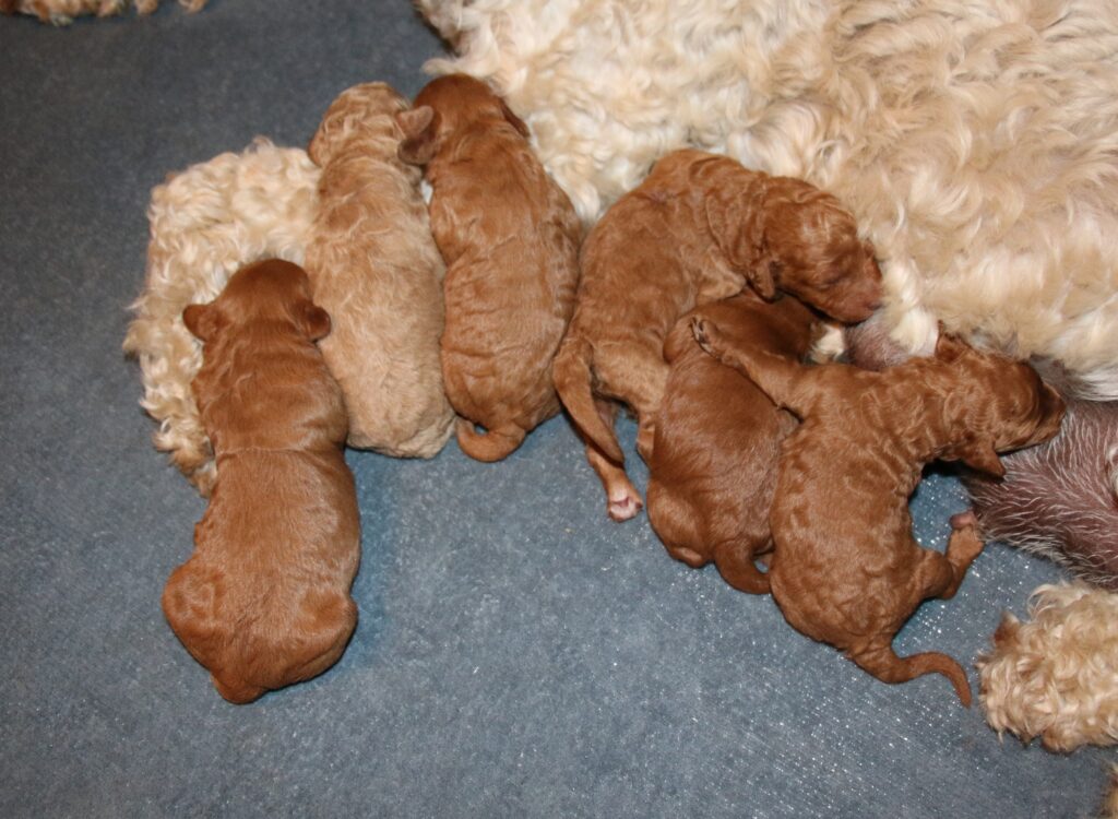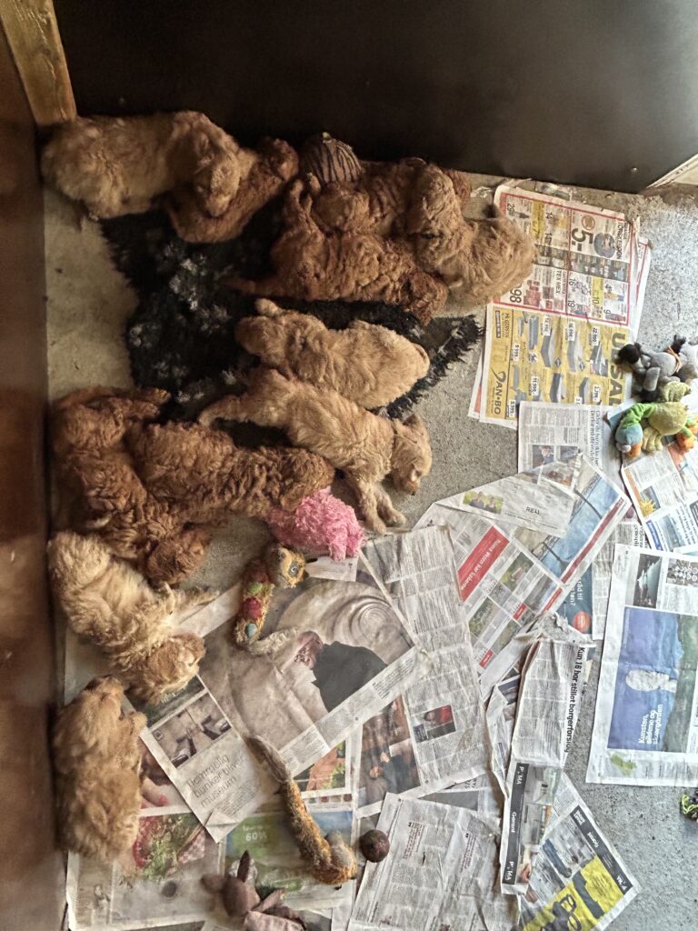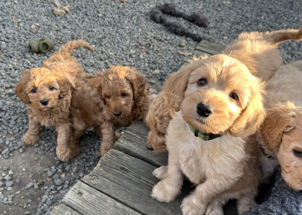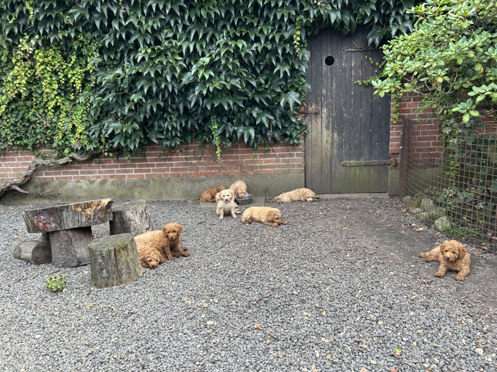 Vores mellem Goldendoodle har fået hvalpe med vores lille Cavapoo Soul.