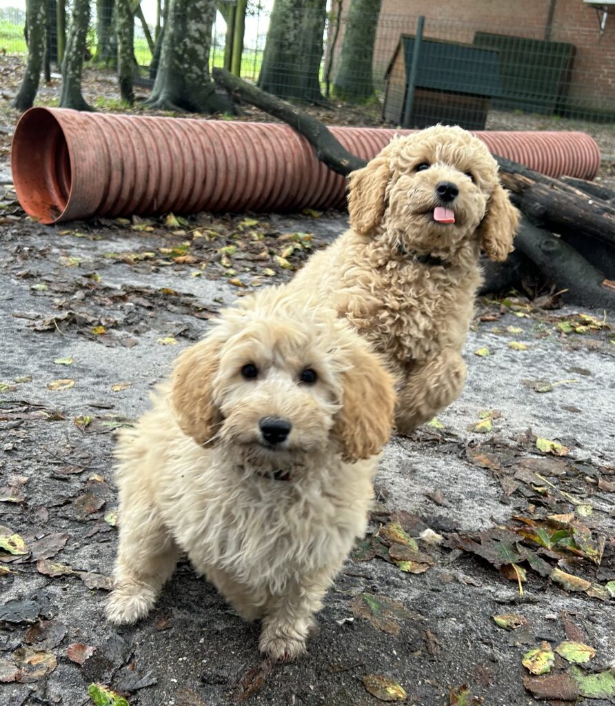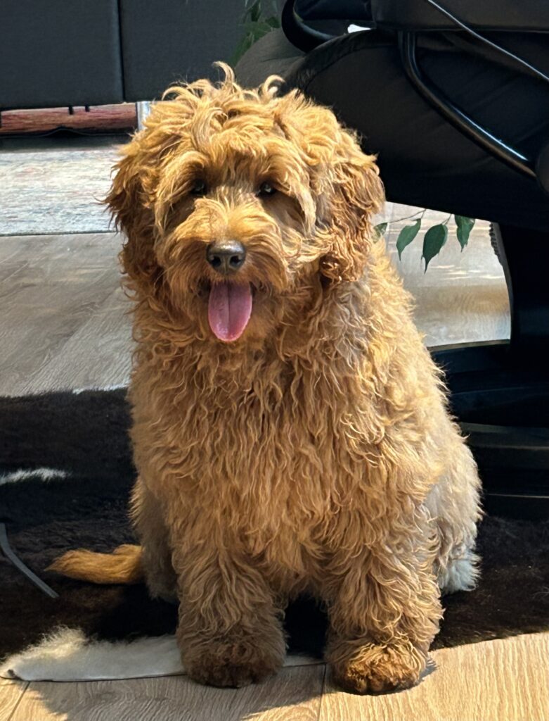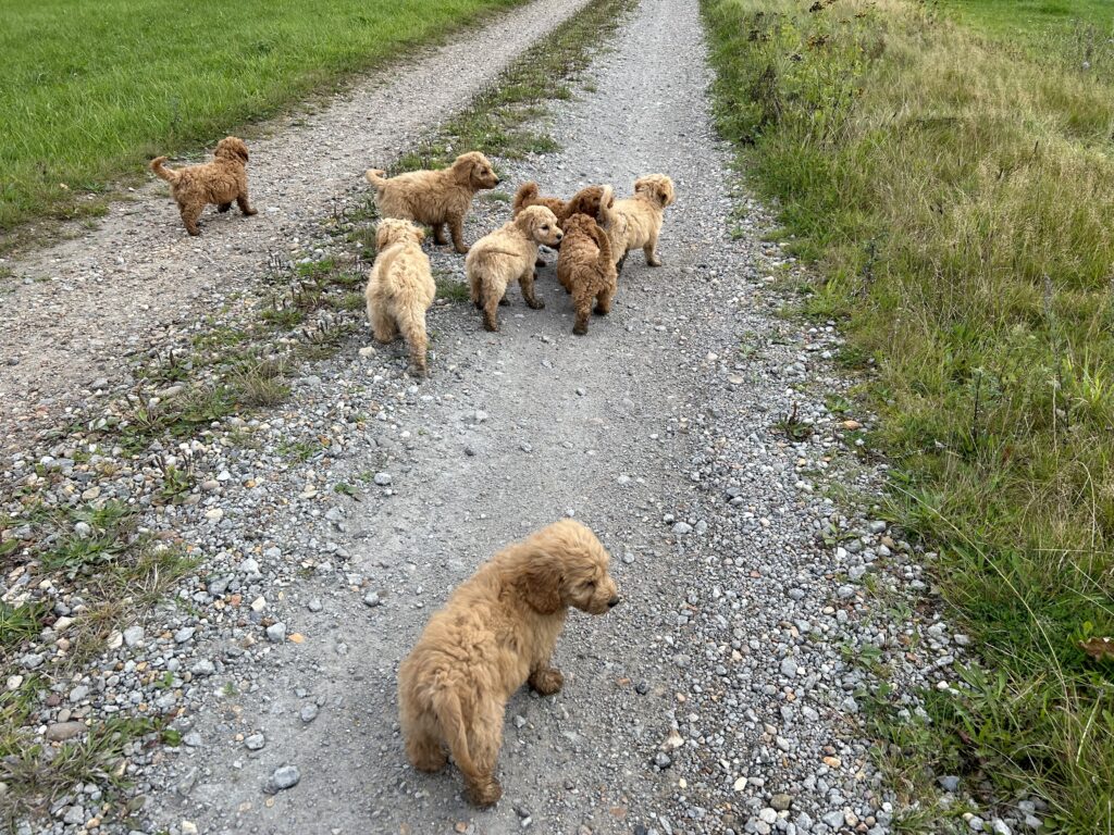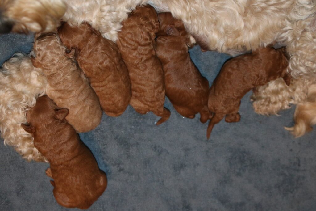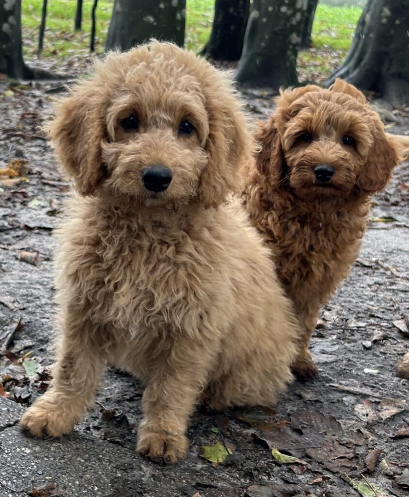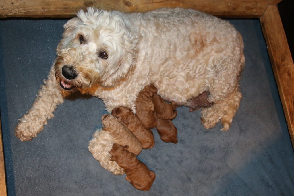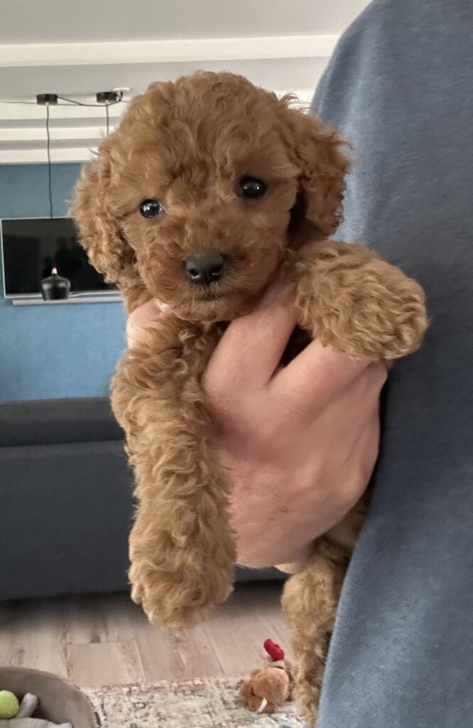 Vores mellem Goldendoodle har fået hvalpe med vores lille Cavapoo Soul.