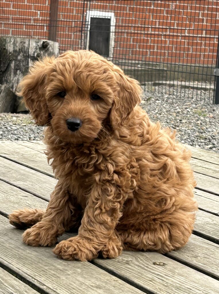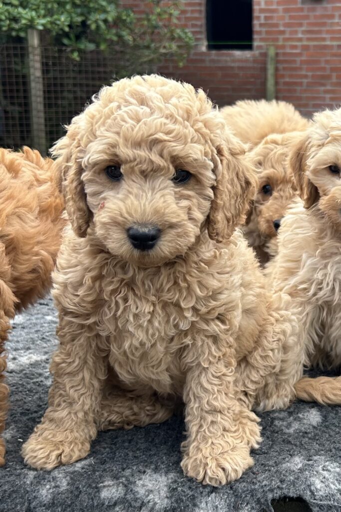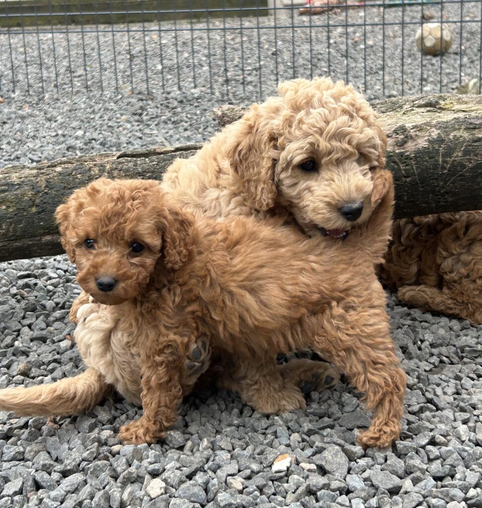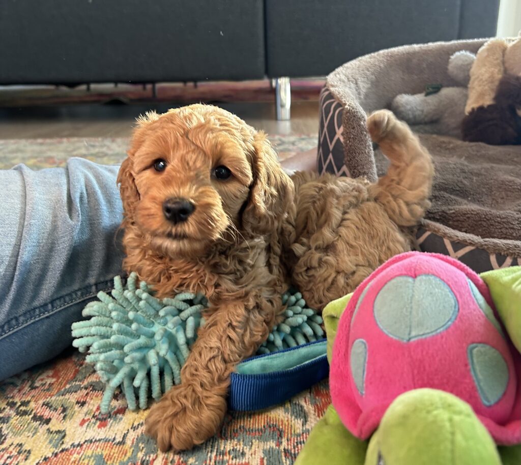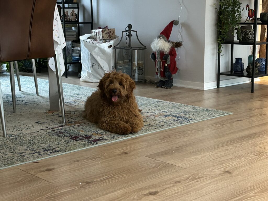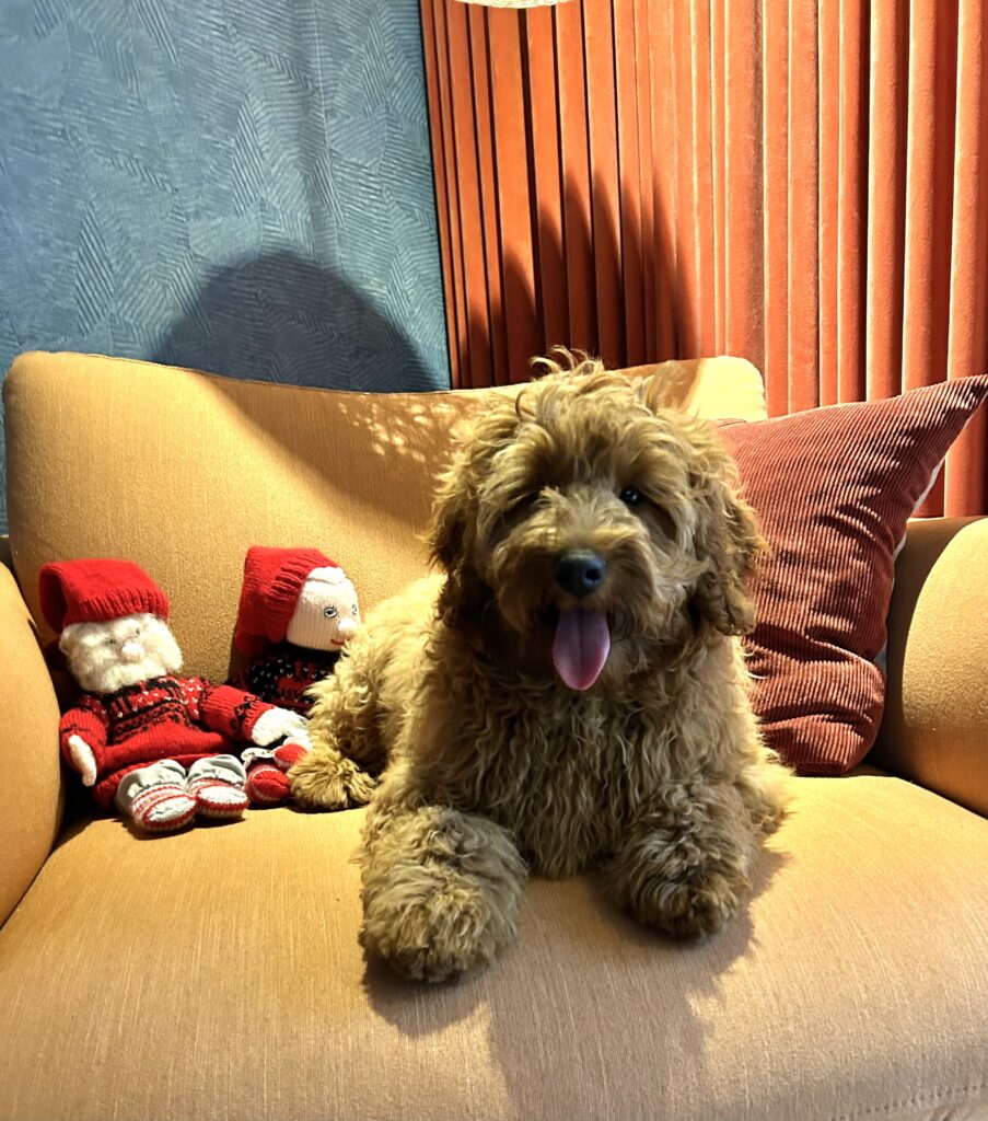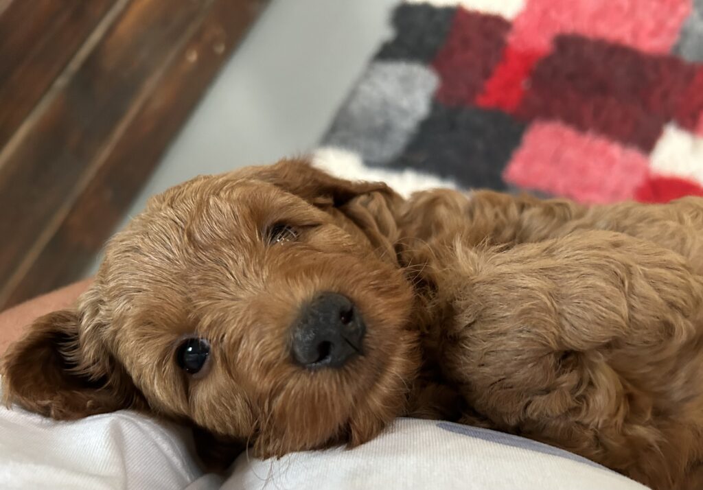 Vores mellem Goldendoodle har fået hvalpe med vores lille Cavapoo Soul.