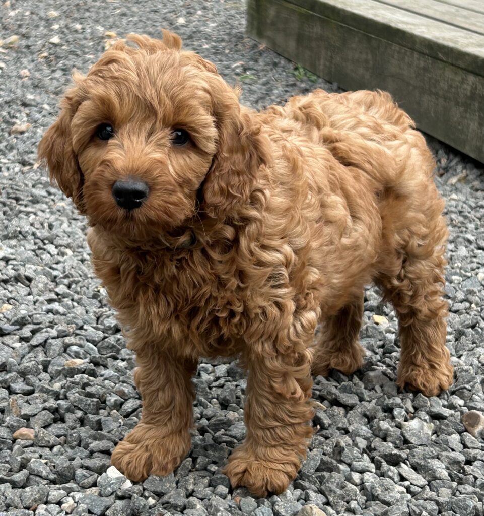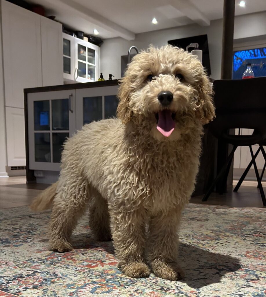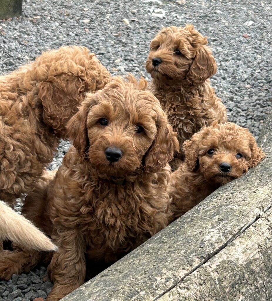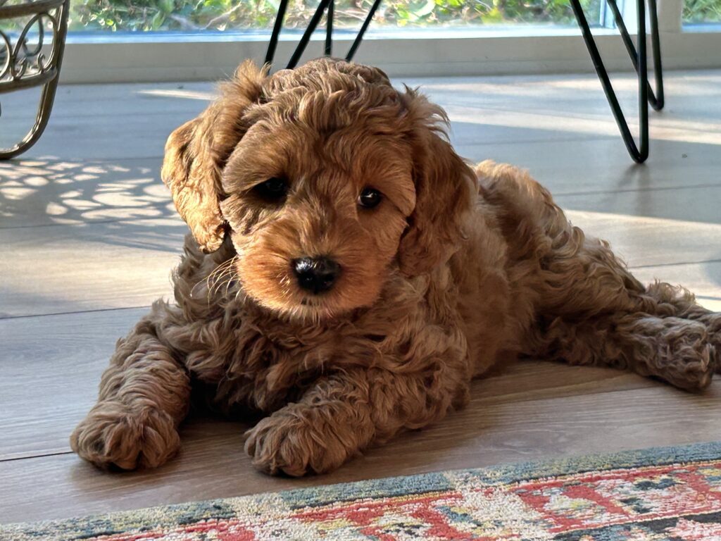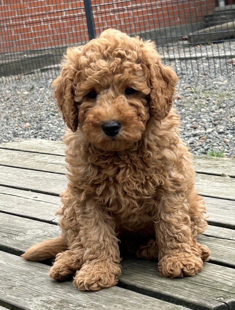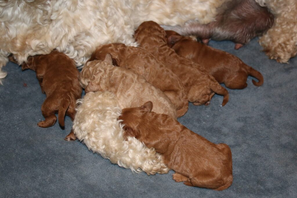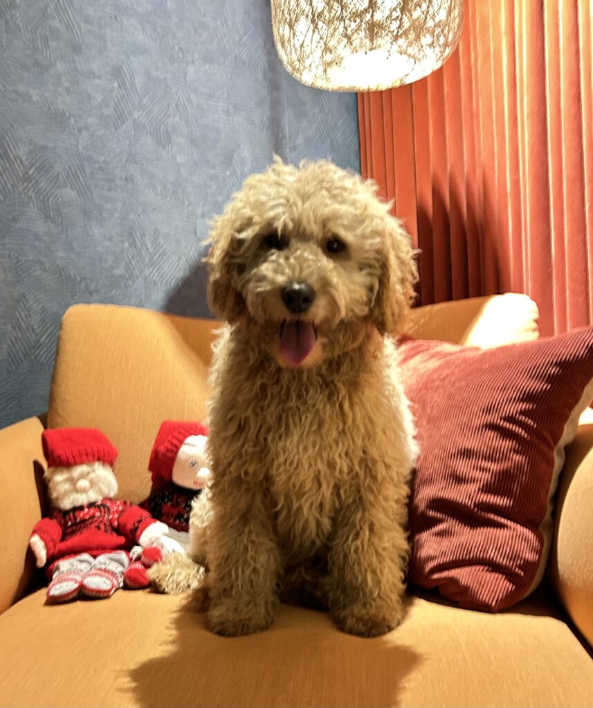 Vores mellem Goldendoodle har fået hvalpe med vores lille Cavapoo Soul.