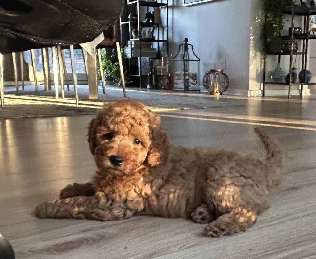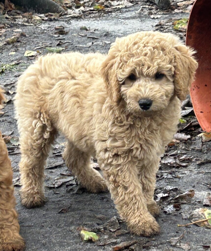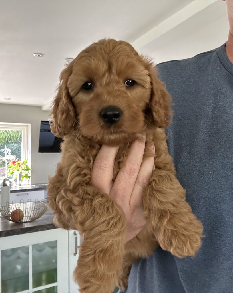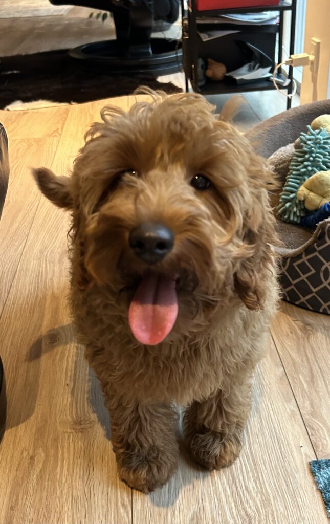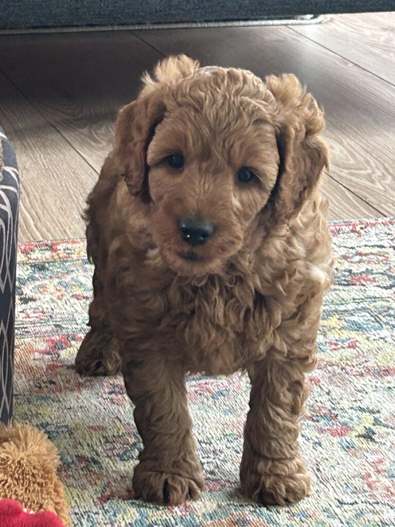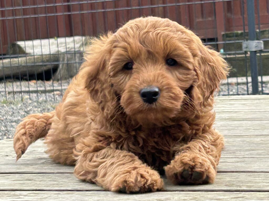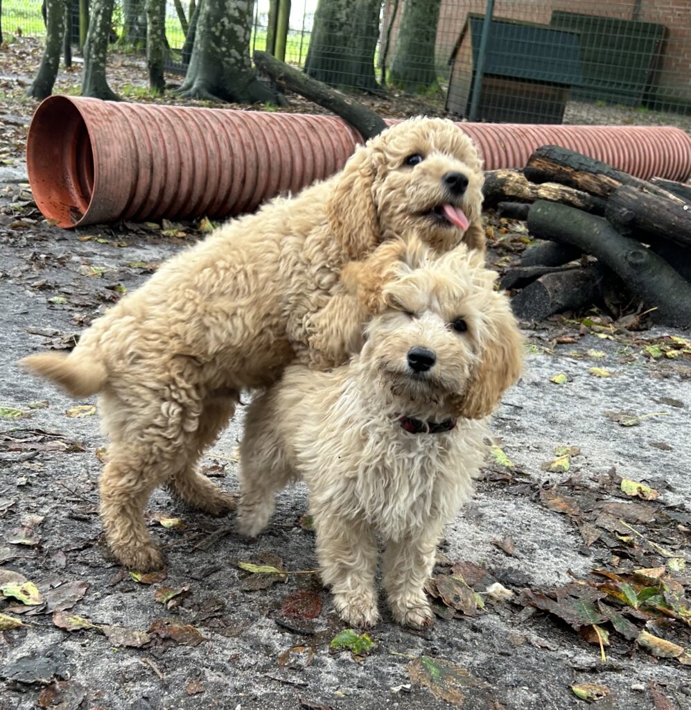 Vores mellem Goldendoodle har fået hvalpe med vores lille Cavapoo Soul.