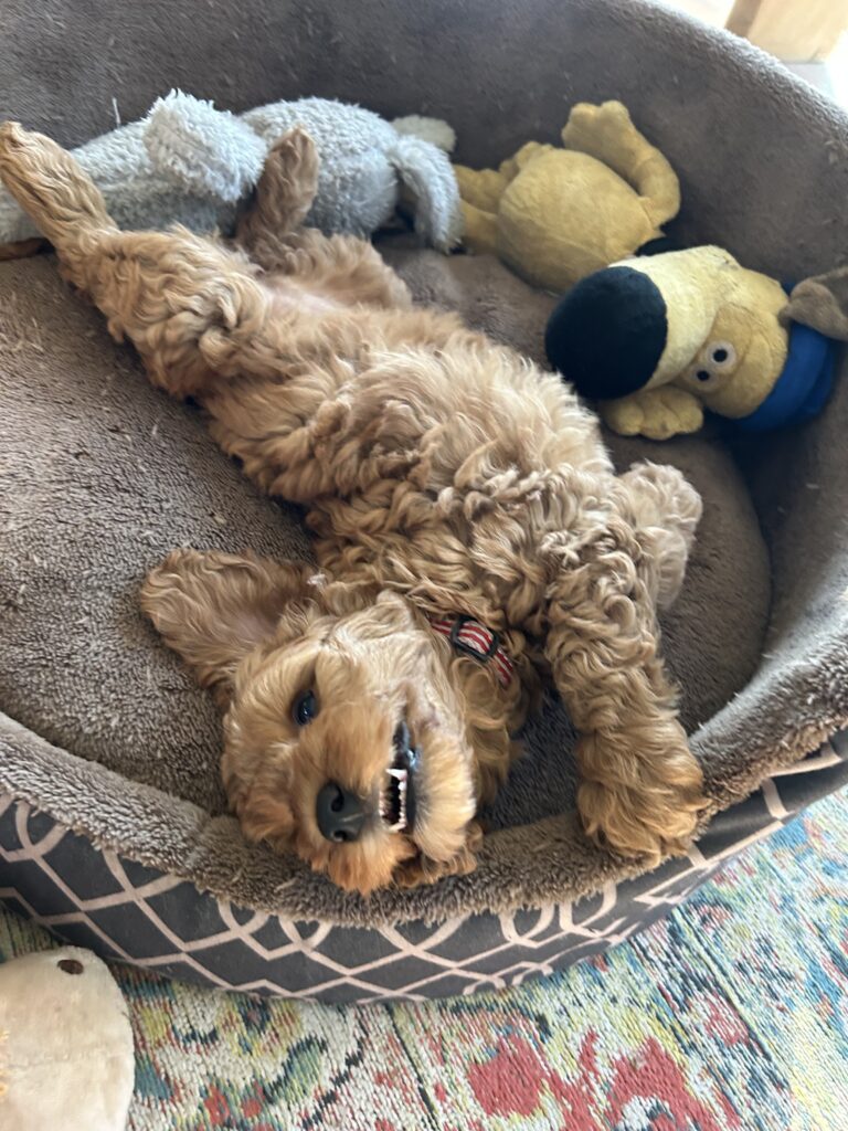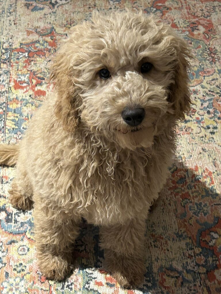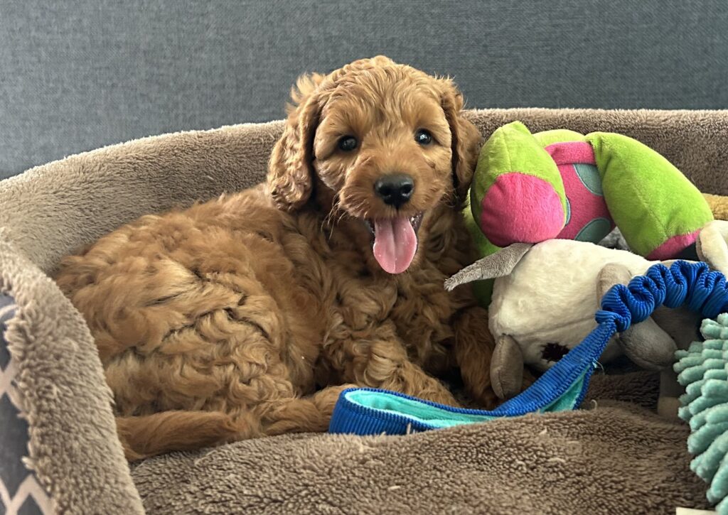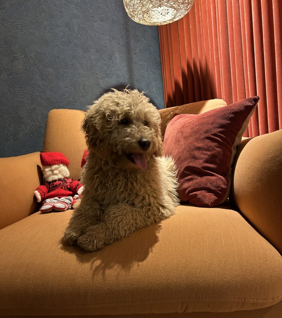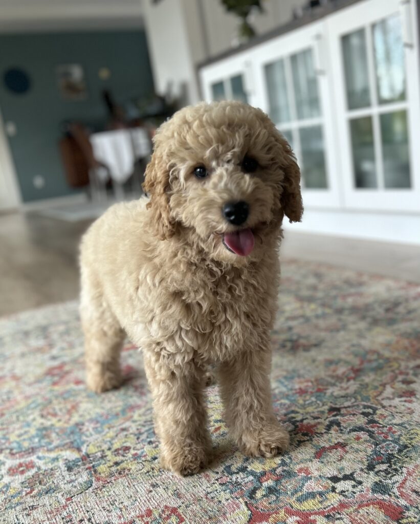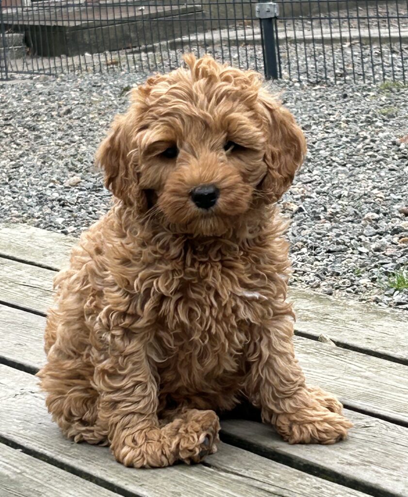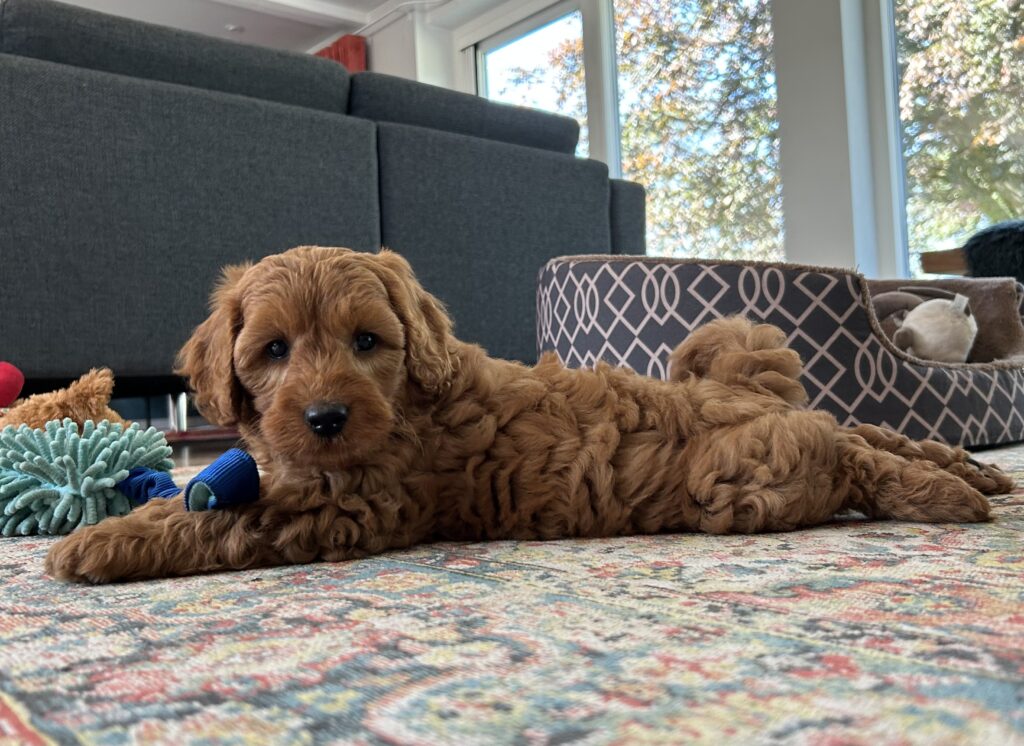 Vores mellem Goldendoodle har fået hvalpe med vores lille Cavapoo Soul.