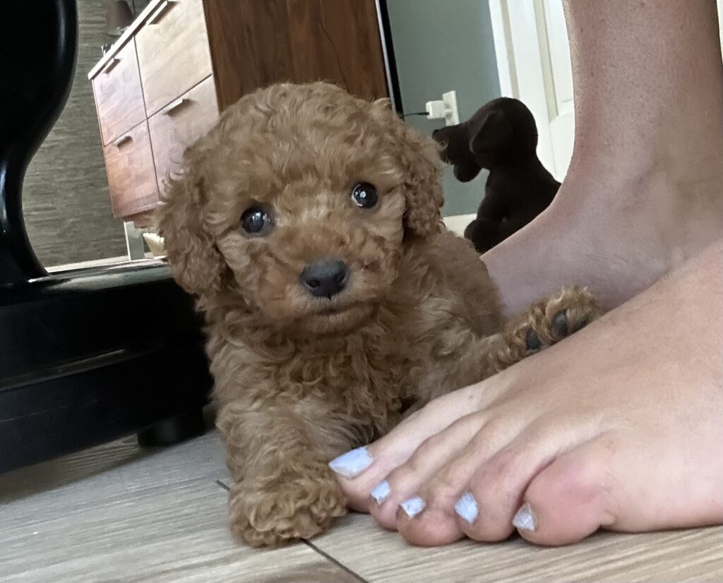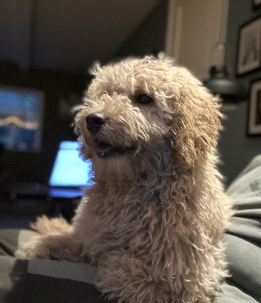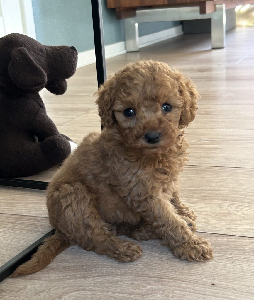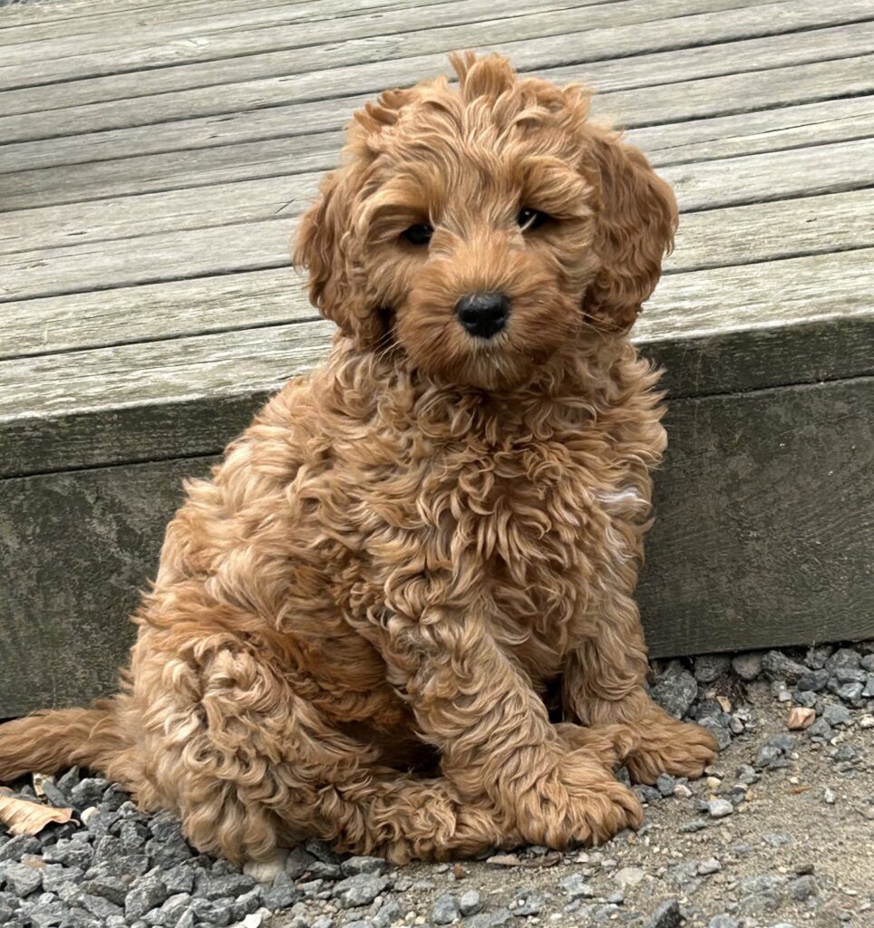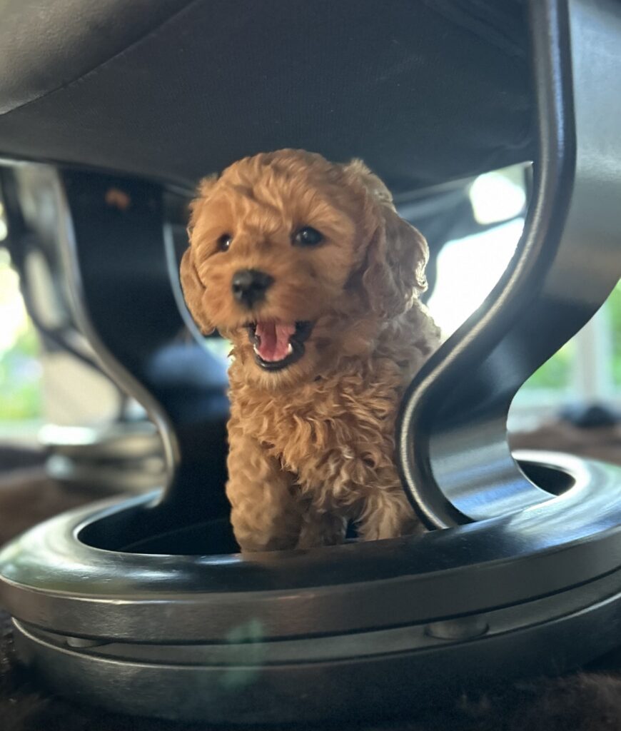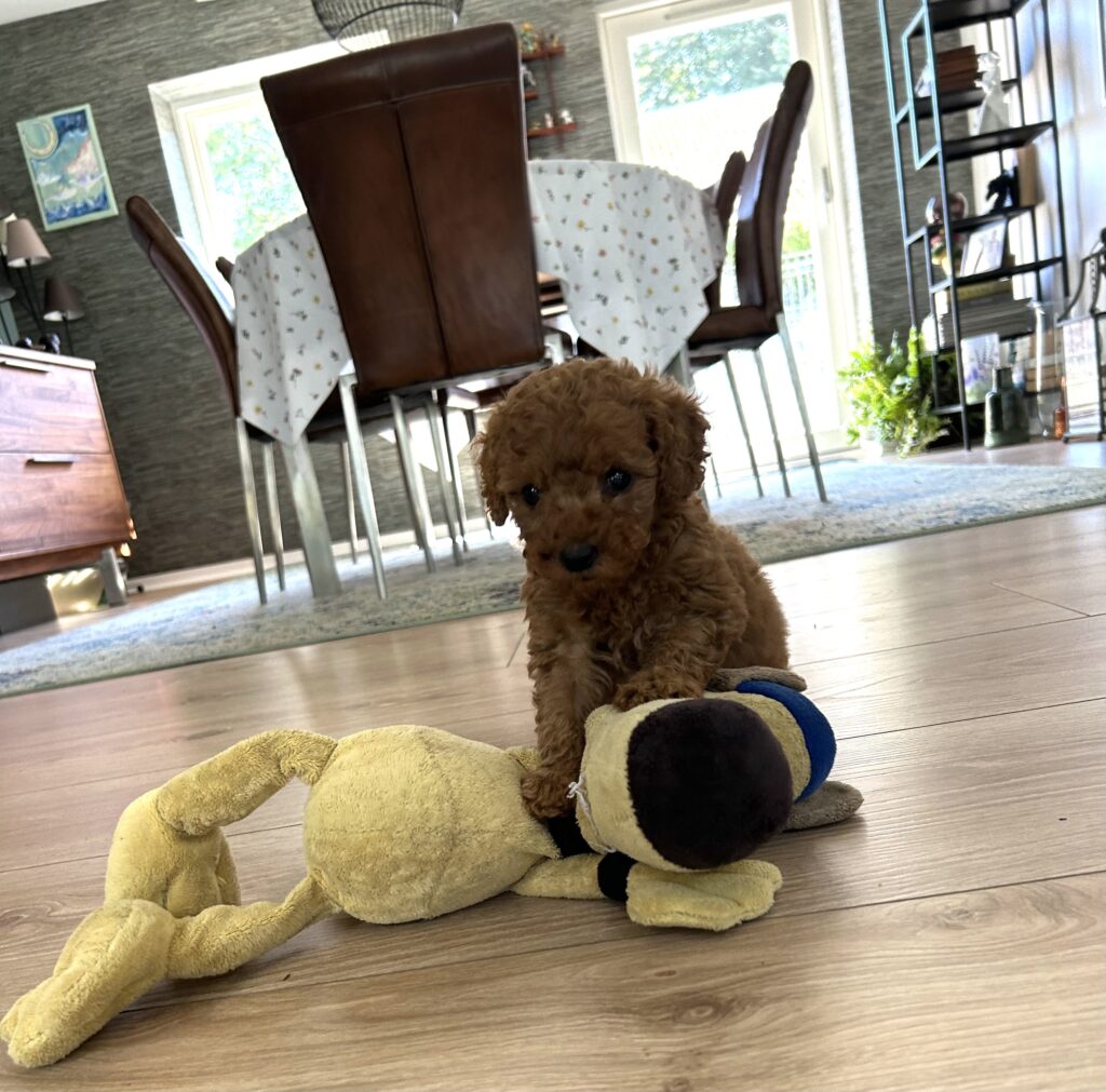 Vores mellem Goldendoodle har fået hvalpe med vores lille Cavapoo Soul.