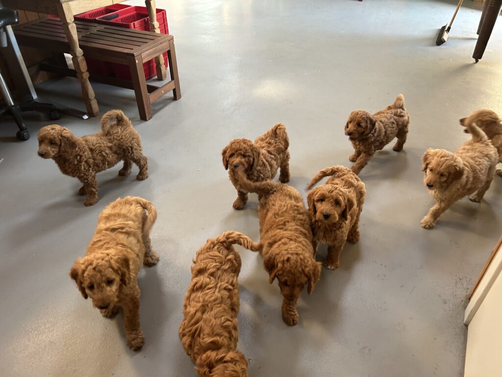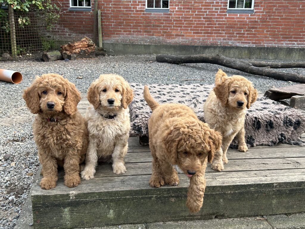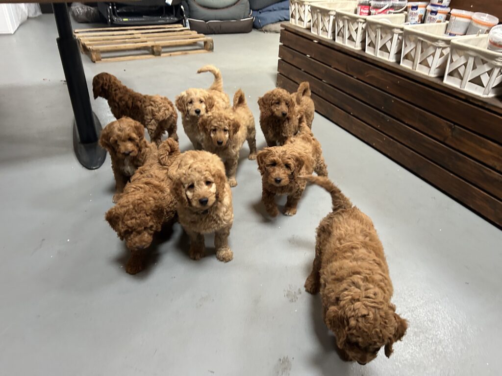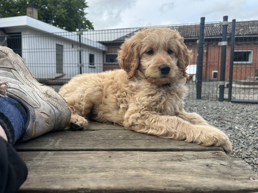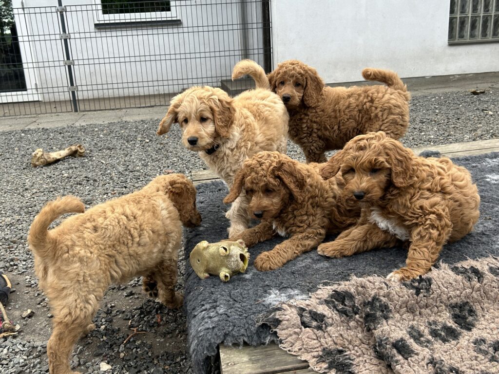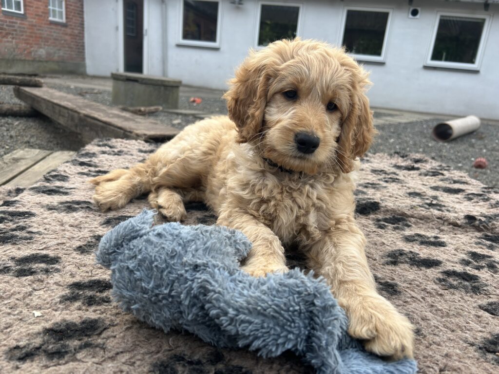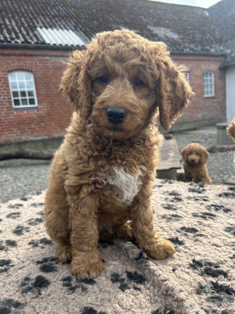 Vores mellem Goldendoodle Favour har fået et kuld skønne mellem Doodledoodle med vores mini/mellem Doodledoodle Jordy. Måske skulle kuldet hedde “mini/mellem – mellem”, da de egentligt bliver en størrelse mellem de to størrelser.