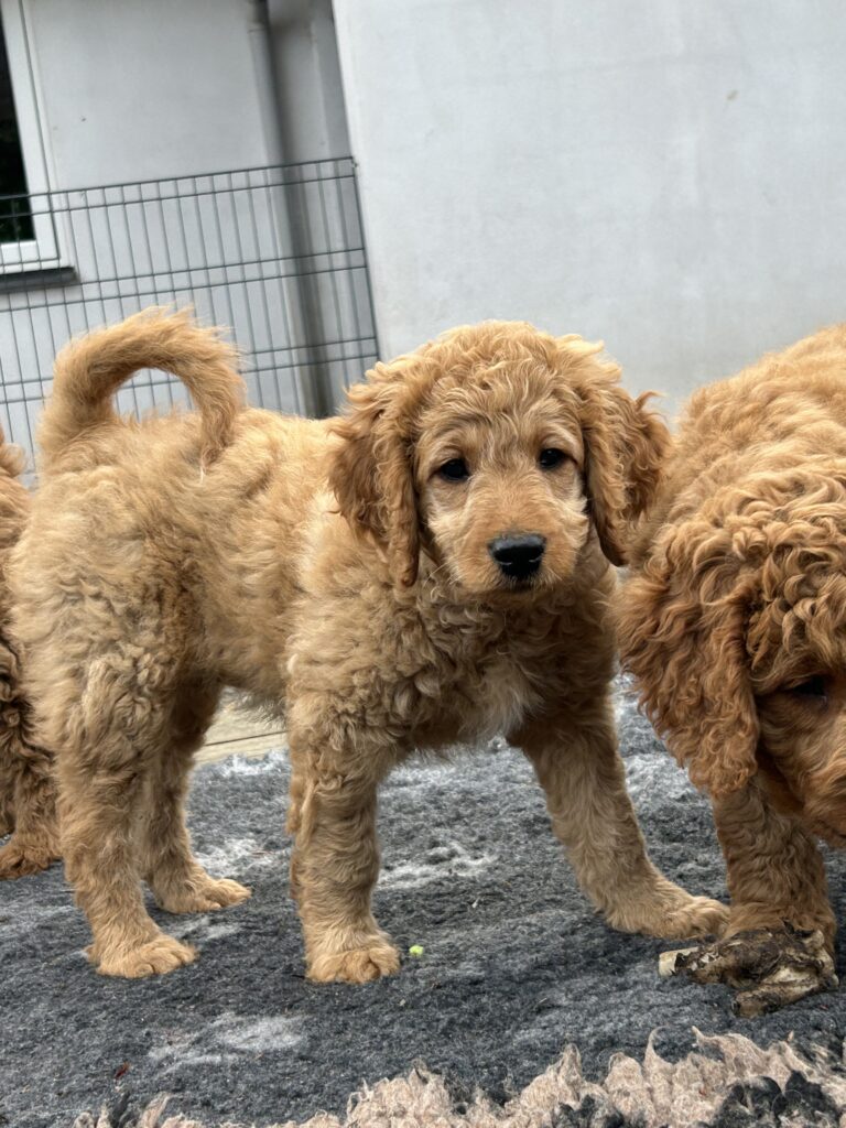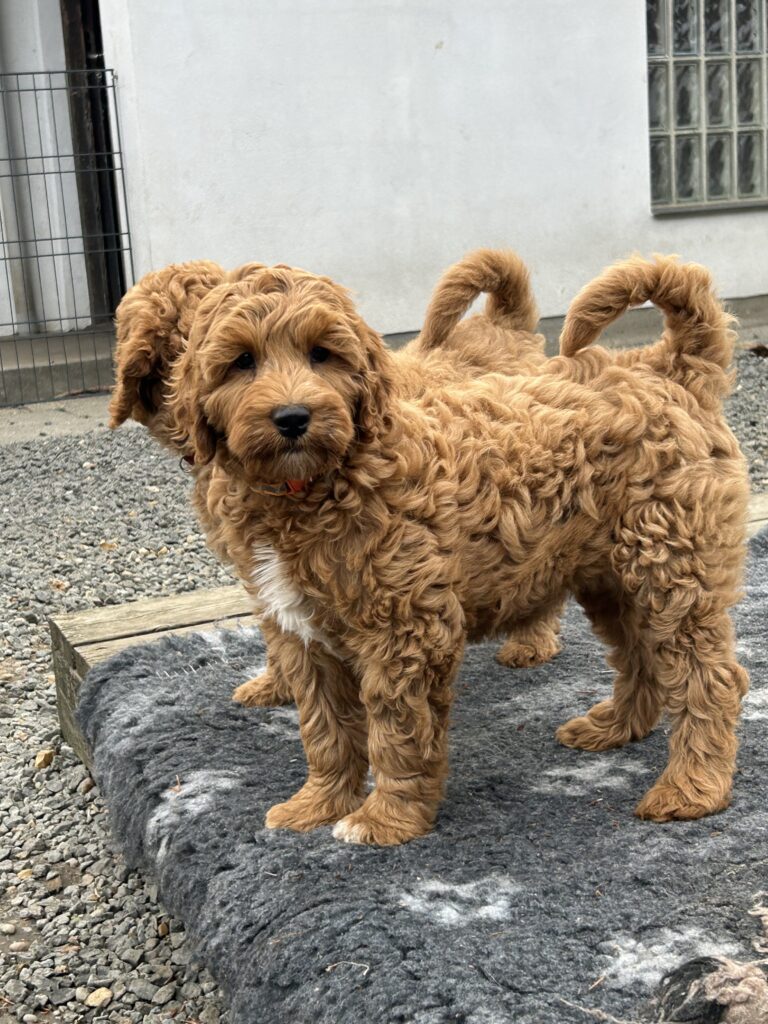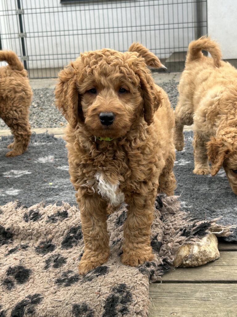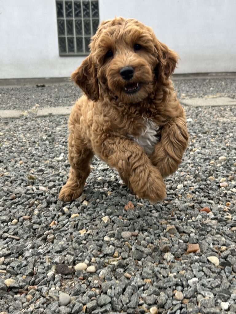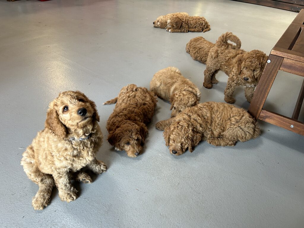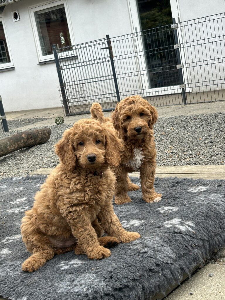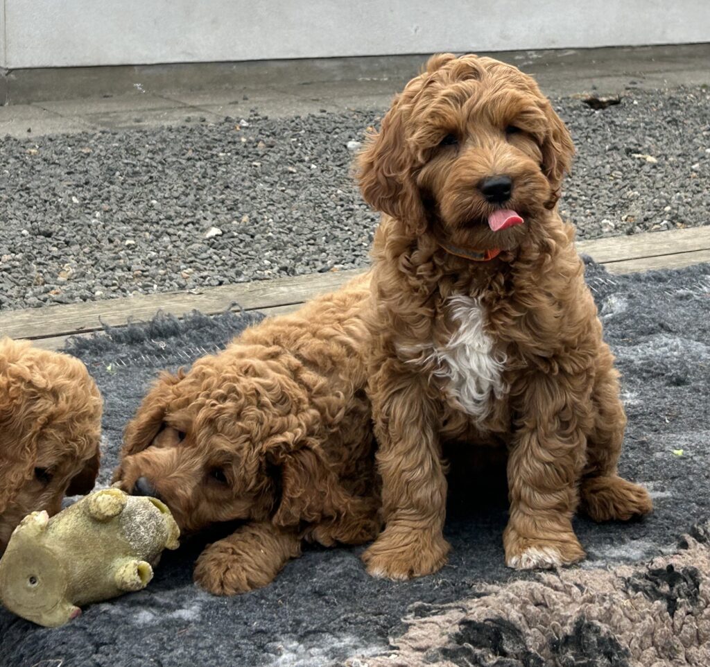 Vores mellem Goldendoodle Favour har fået et kuld skønne mellem Doodledoodle med vores mini/mellem Doodledoodle Jordy. Måske skulle kuldet hedde “mini/mellem – mellem”, da de egentligt bliver en størrelse mellem de to størrelser.
