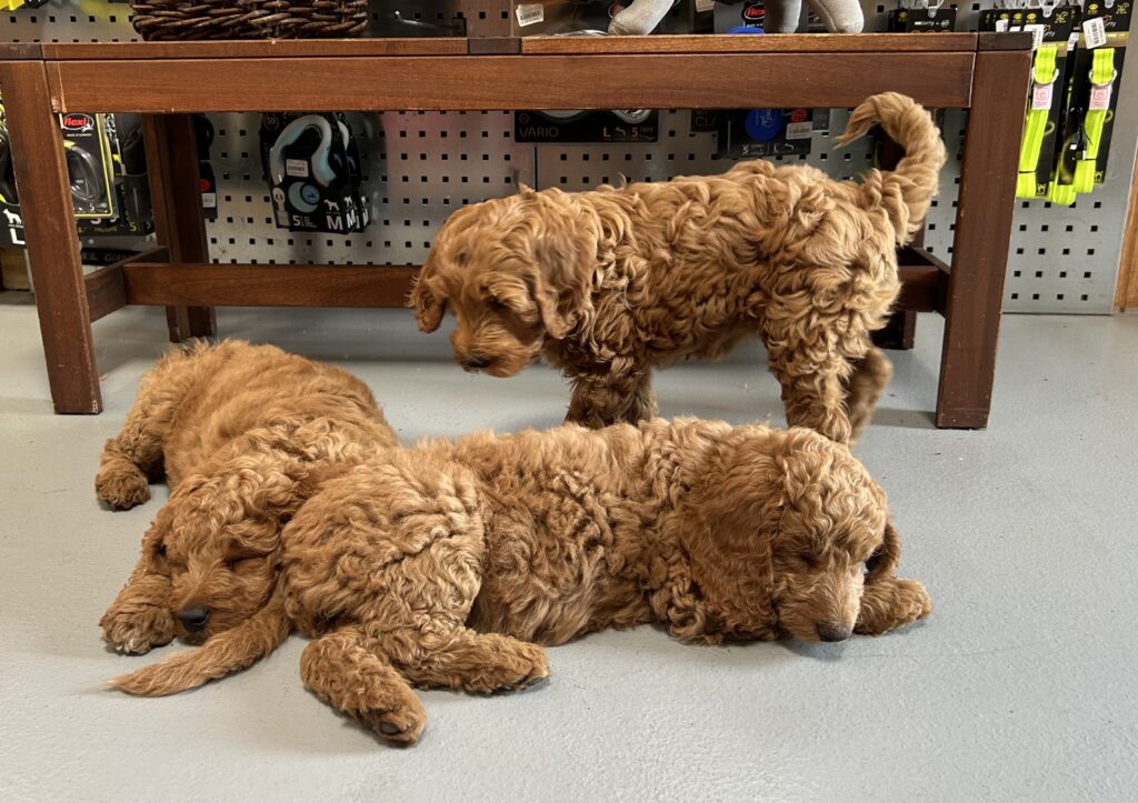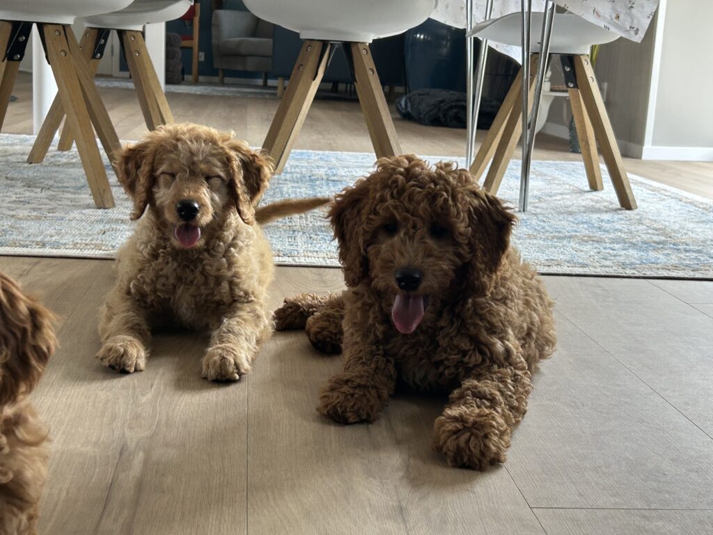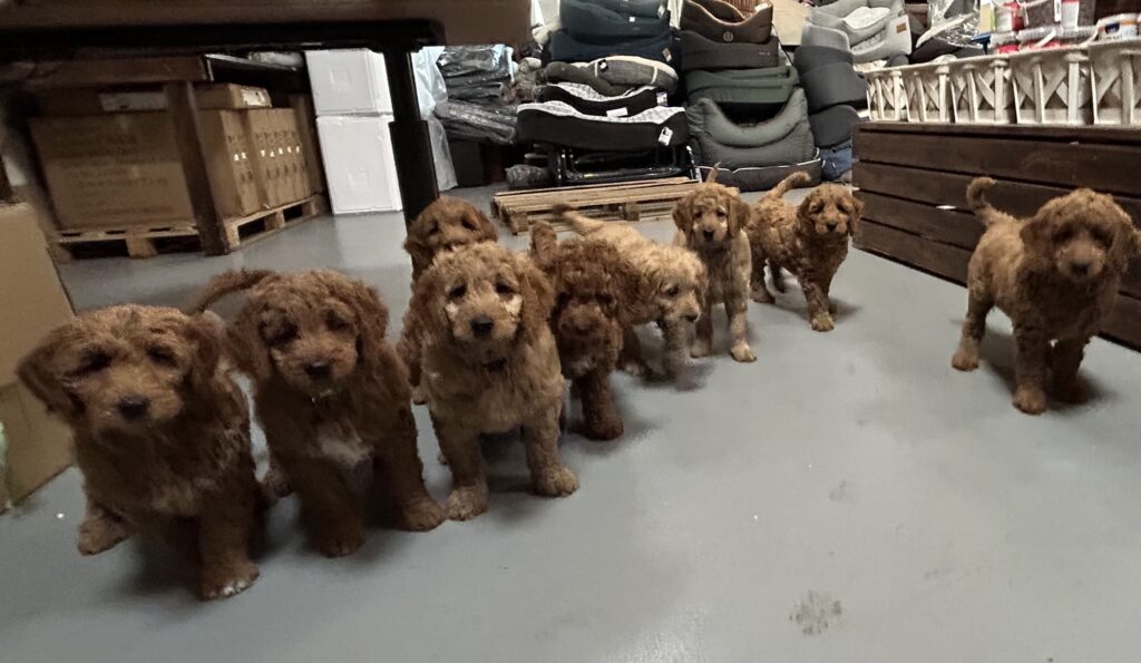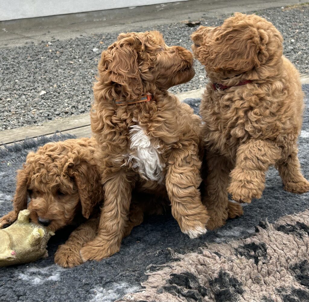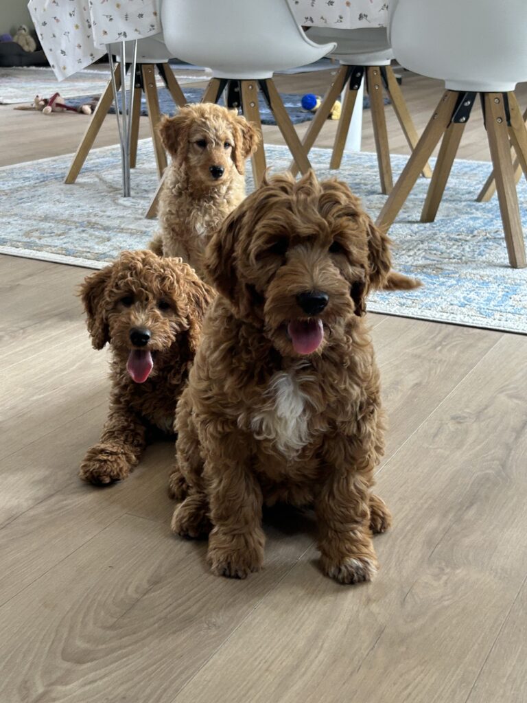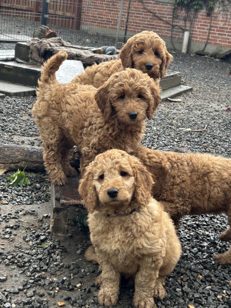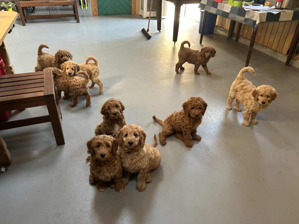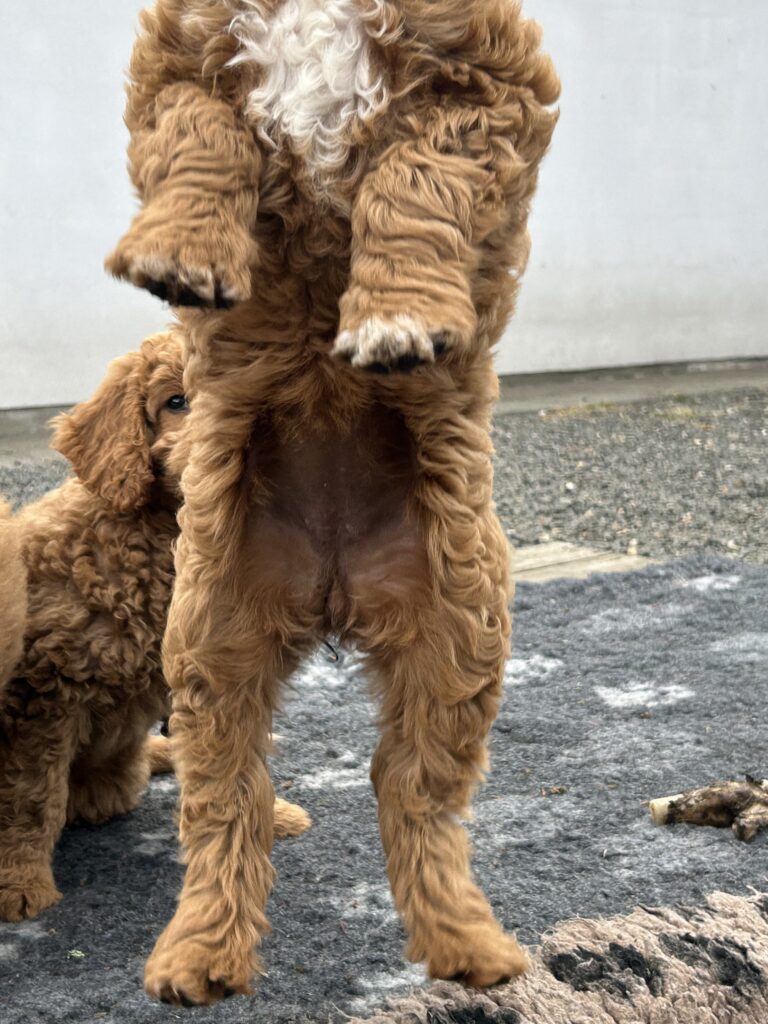 Vores mellem Goldendoodle Favour har fået et kuld skønne mellem Doodledoodle med vores mini/mellem Doodledoodle Jordy. Måske skulle kuldet hedde “mini/mellem – mellem”, da de egentligt bliver en størrelse mellem de to størrelser.