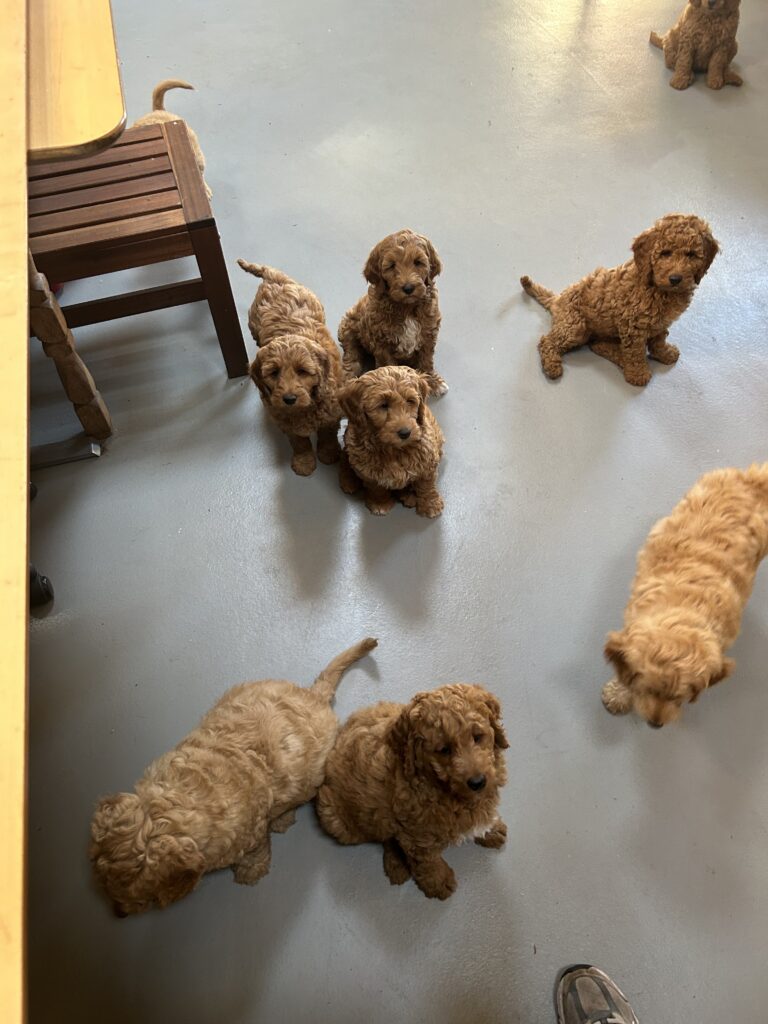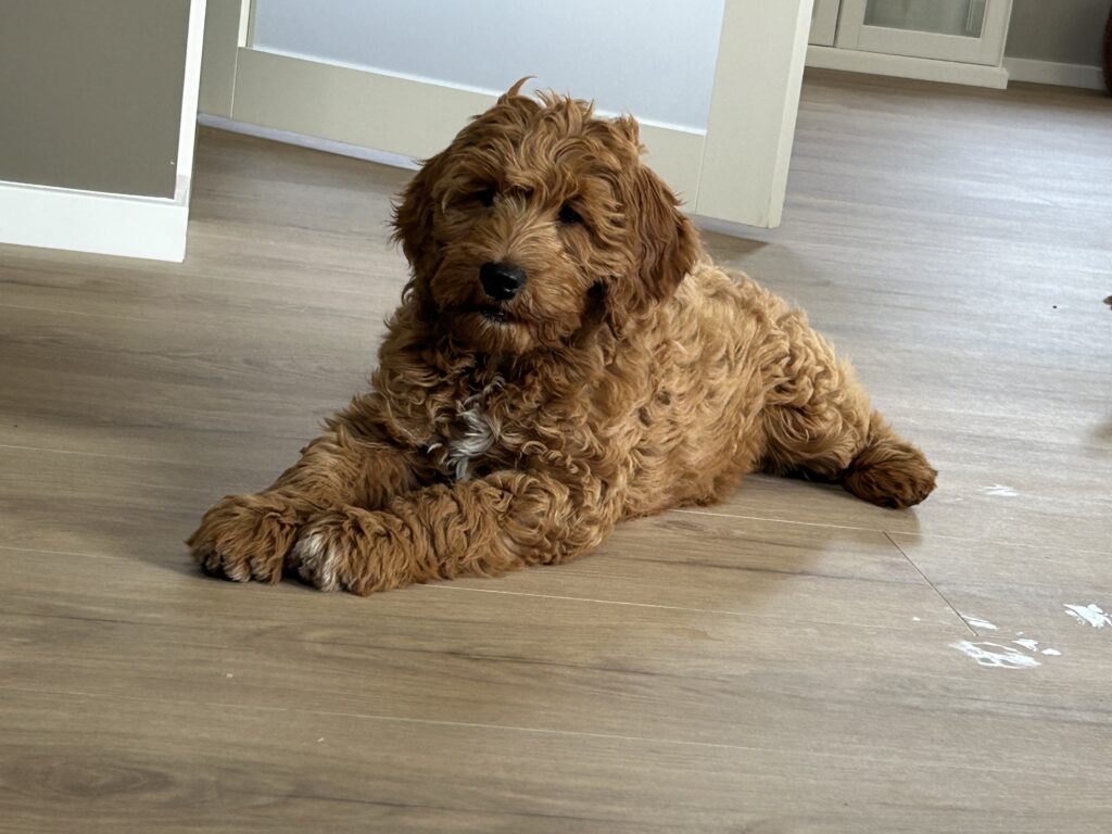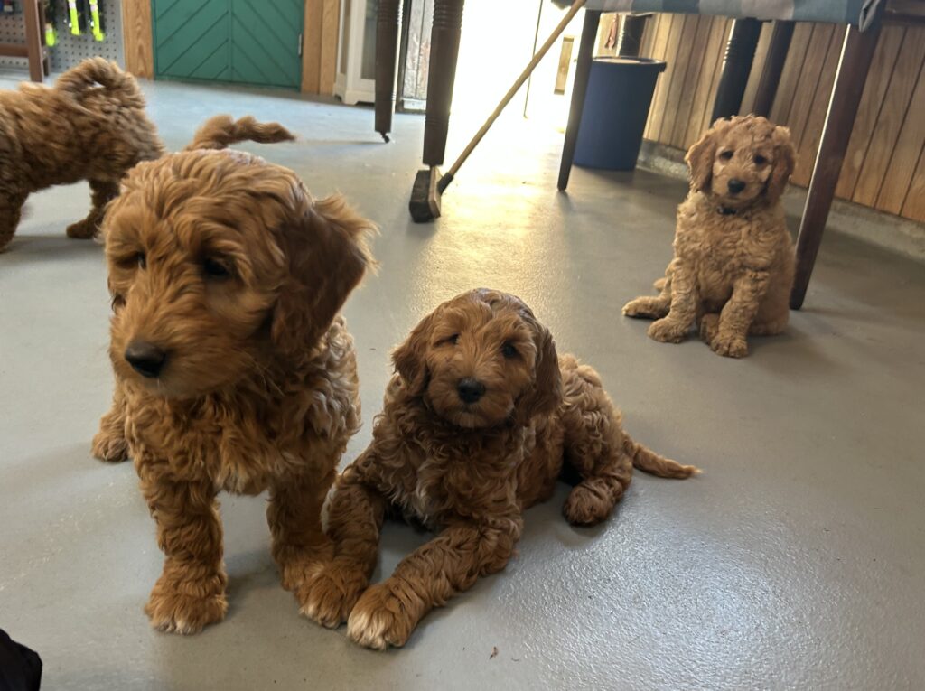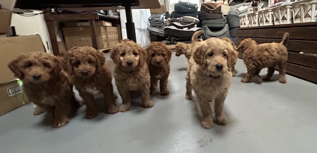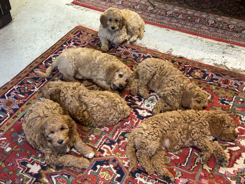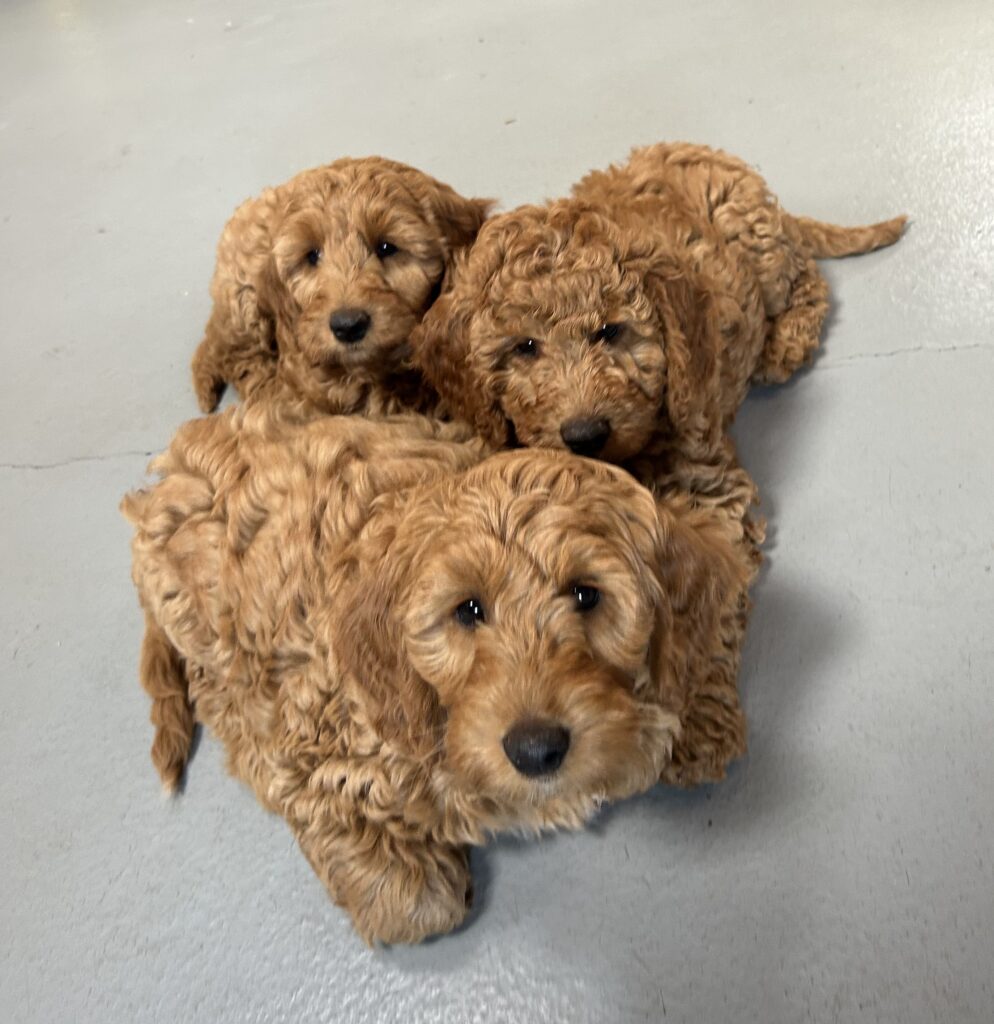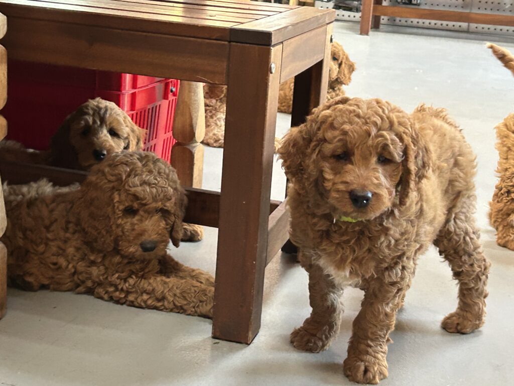 Vores mellem Goldendoodle Favour har fået et kuld skønne mellem Doodledoodle med vores mini/mellem Doodledoodle Jordy. Måske skulle kuldet hedde “mini/mellem – mellem”, da de egentligt bliver en størrelse mellem de to størrelser.