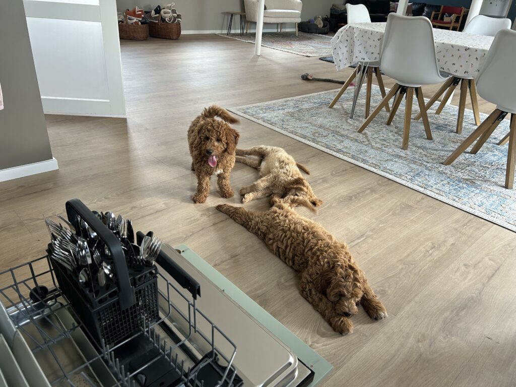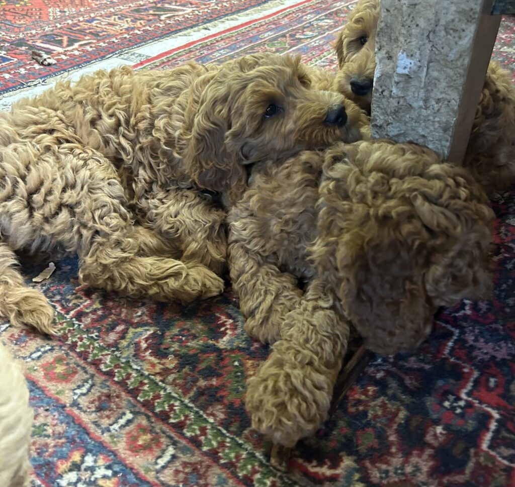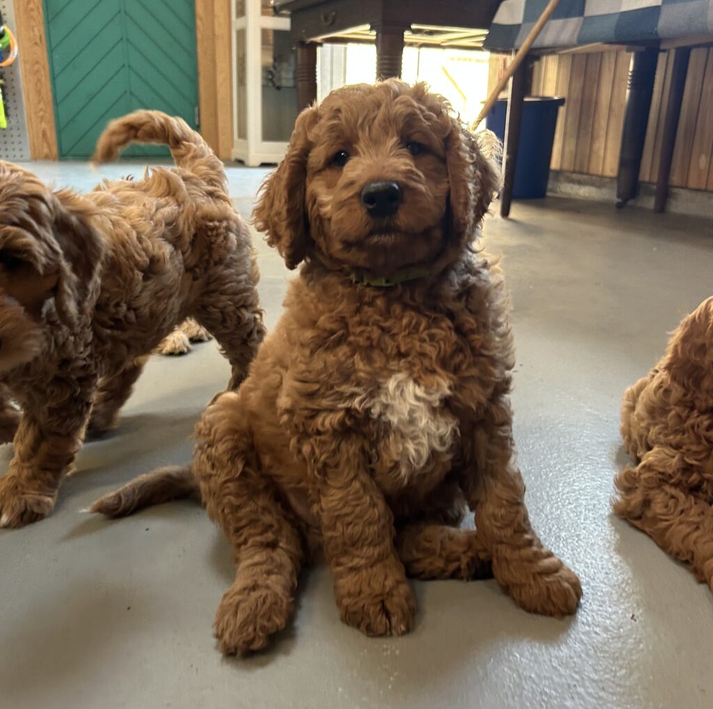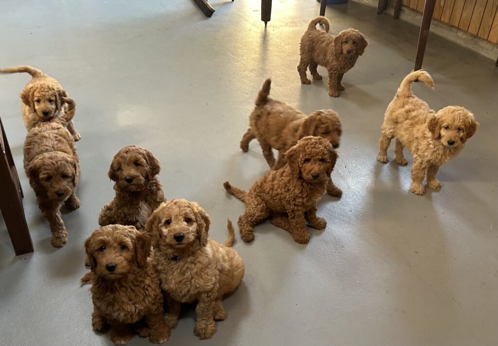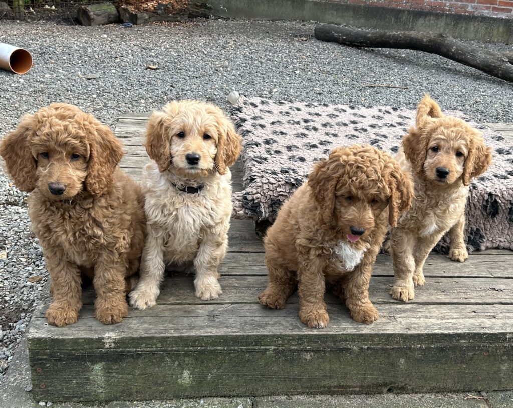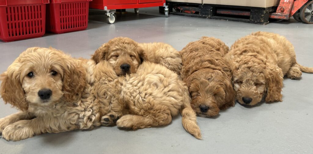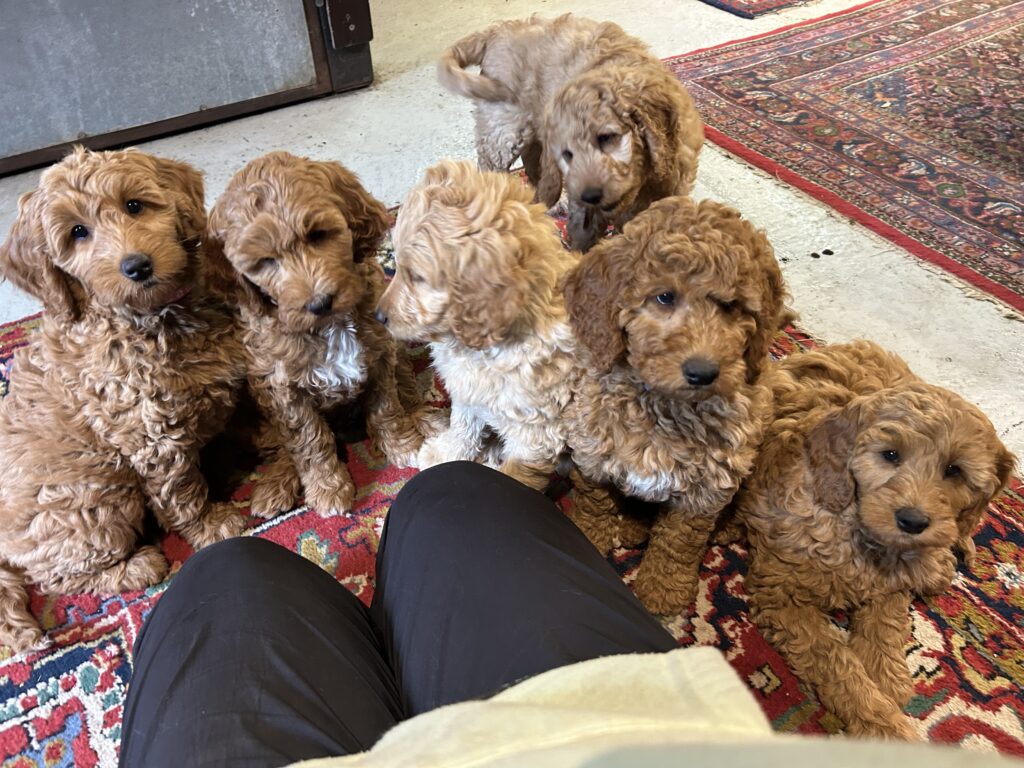 Vores mellem Goldendoodle Favour har fået et kuld skønne mellem Doodledoodle med vores mini/mellem Doodledoodle Jordy. Måske skulle kuldet hedde “mini/mellem – mellem”, da de egentligt bliver en størrelse mellem de to størrelser.