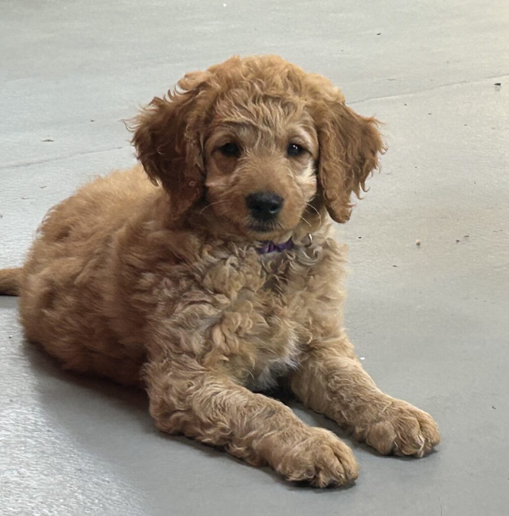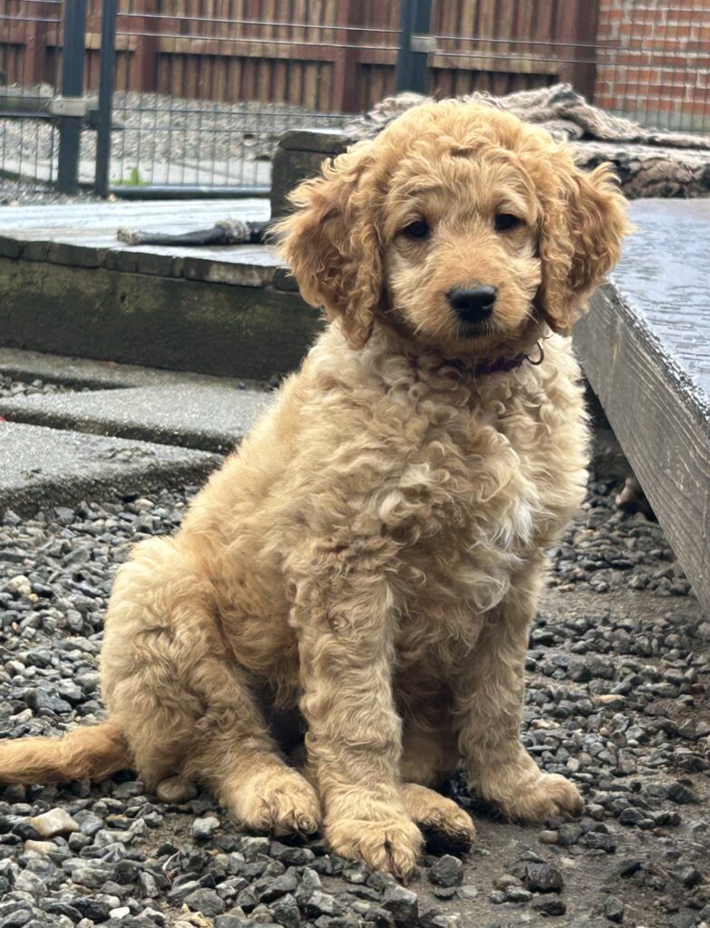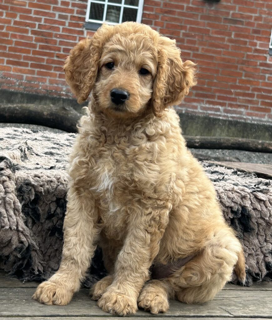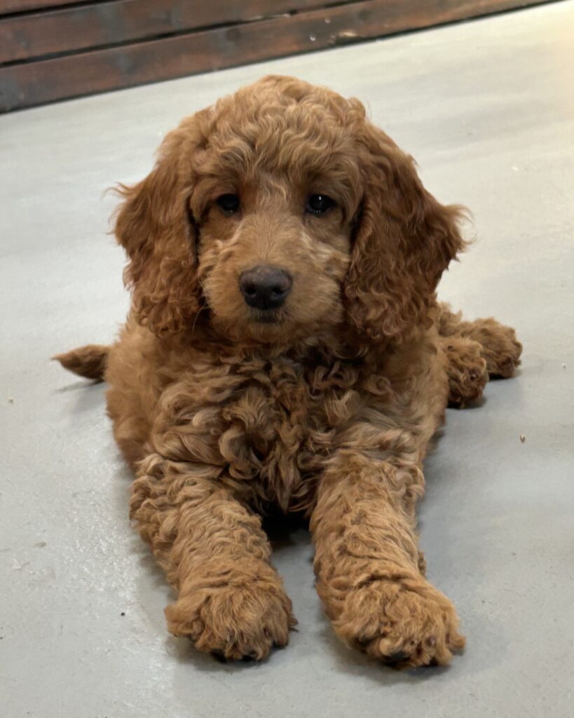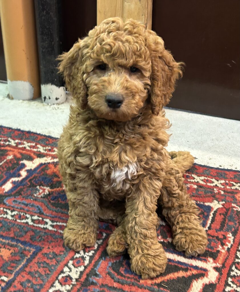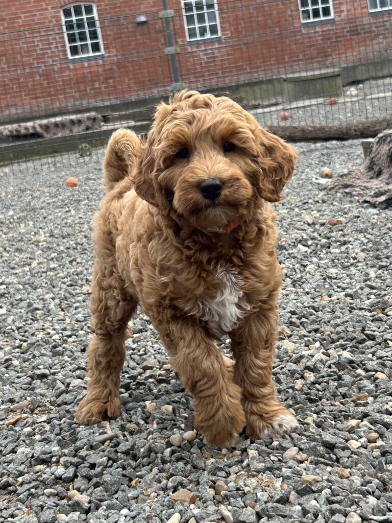 En mellem pige, som er dejlig imødekommende, positiv og kærlig pige. Hun er tilpas nysgerrig og legesyg og fræk, med et extra glimt i øjet. Hun er også alm modig som man forventer at en lille hvalp uden livserfaring, så igen en go mellem type. Når vi skriver “Mellem” så er deres psyke ret så tæt på den væsen de fleste af vores doodler har. Vægt den 19.5.2025 4,9 kg, forvente voksen vægt ca 20 kg og 50 cm.