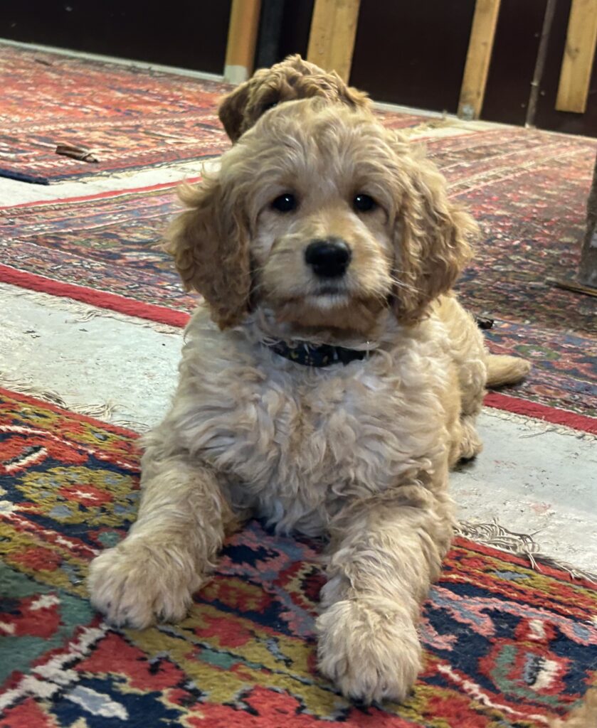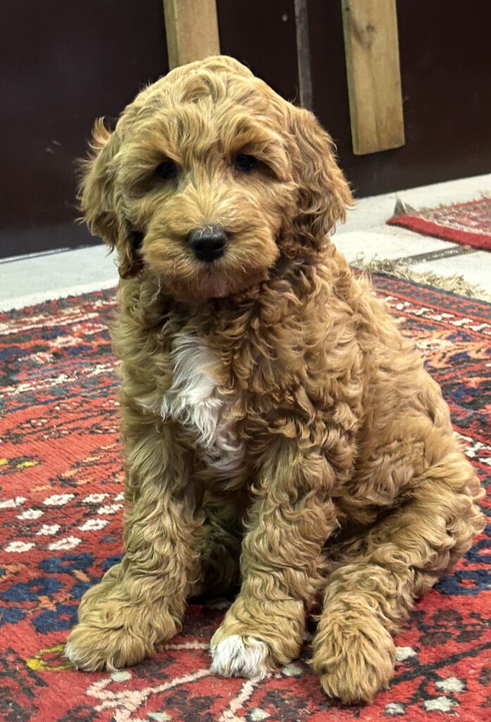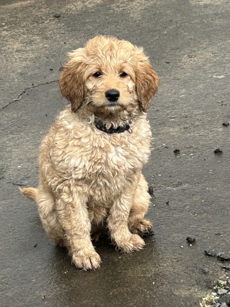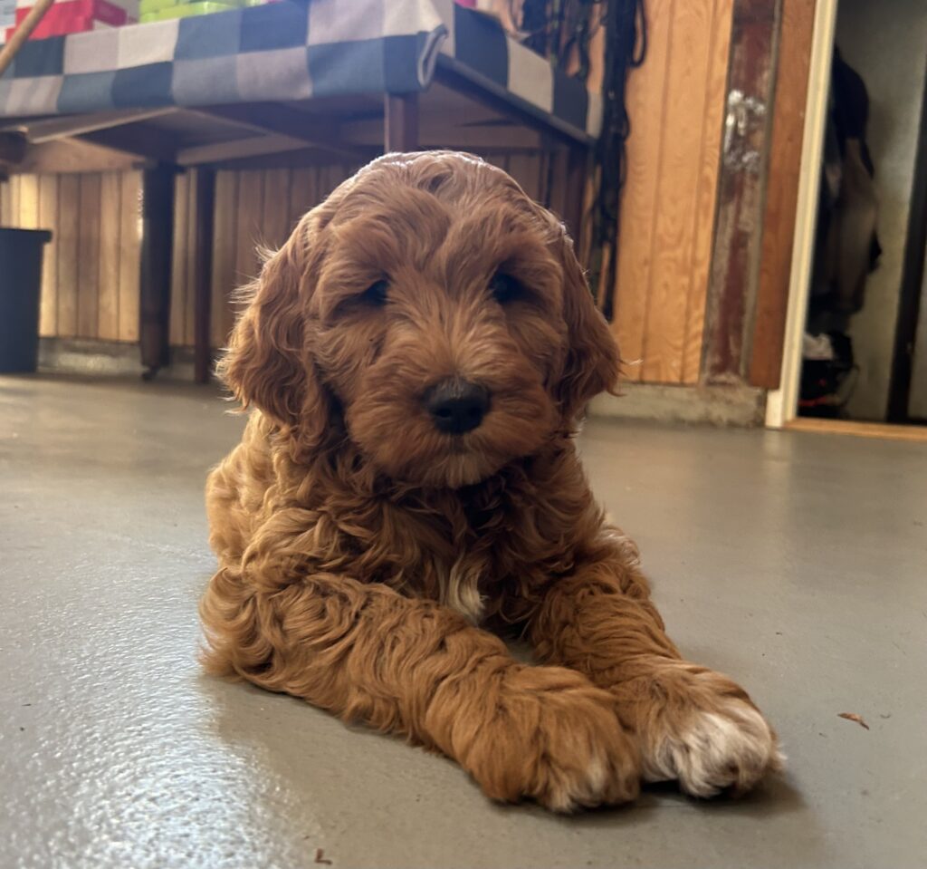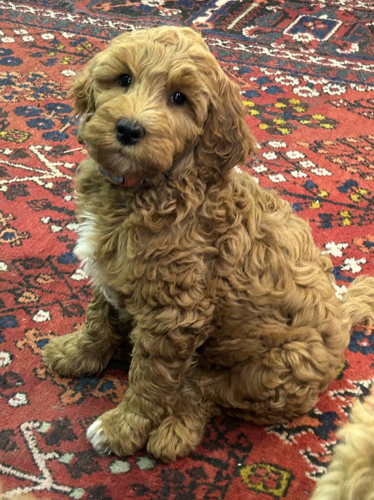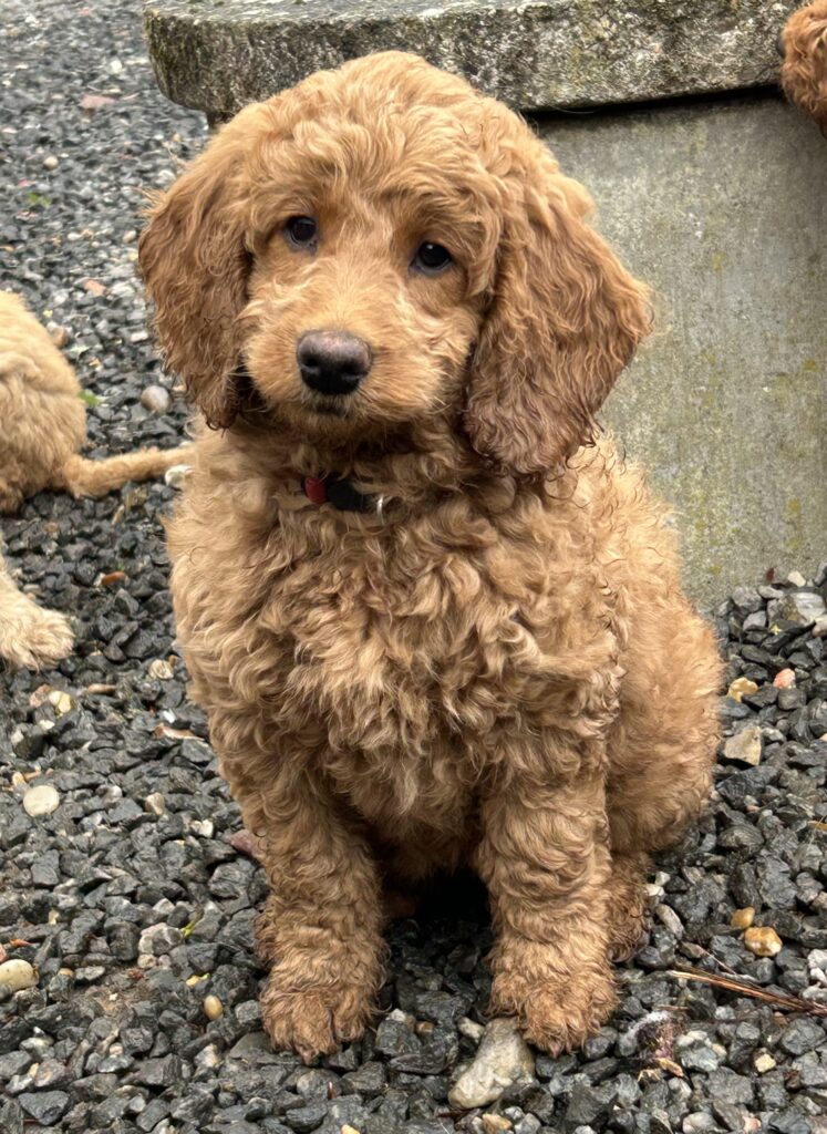 En mellem pige, som er dejlig imødekommende, positiv og kærlig pige. Hun er tilpas nysgerrig og legesyg og fræk, med et extra glimt i øjet. Hun er også alm modig som man forventer at en lille hvalp uden livserfaring, så igen en go mellem type. Når vi skriver “Mellem” så er deres psyke ret så tæt på den væsen de fleste af vores doodler har. Vægt den 19.5.2025 4,9 kg, forvente voksen vægt ca 20 kg og 50 cm.