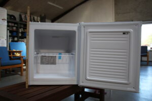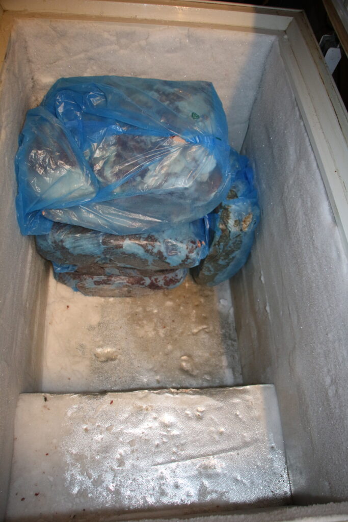 Her under ses en lille mini fryser på 32 l, her kan nemt være 12 kg barf.