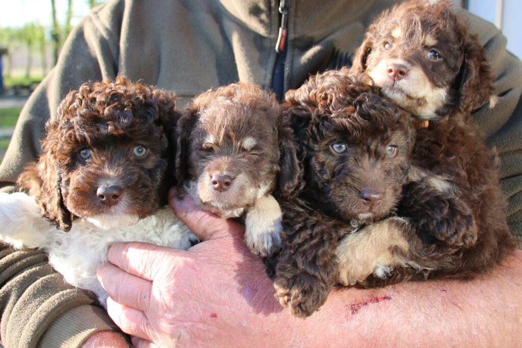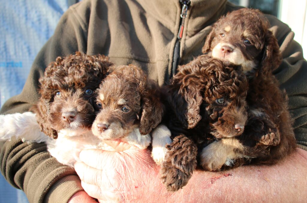 Vores mini/mellem Labradoodles F1 Bali har fået hvalpe med vores lille toy puddel Peanut, 8 hvalpe. (Der er ikke flere hvalpe til salg)