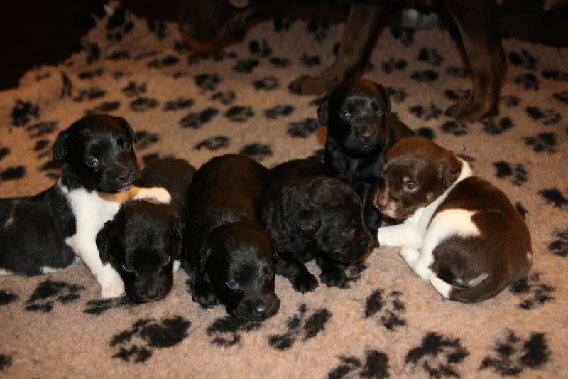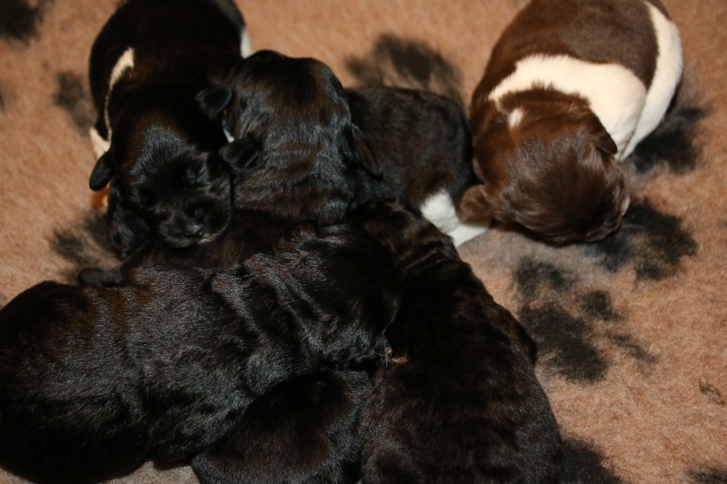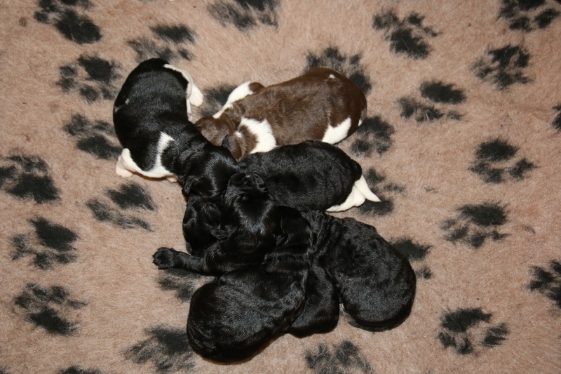 Brune Labrador Maya fik igen hvalpe med den sort/hvid farvet Toy Pudlen Gismo.