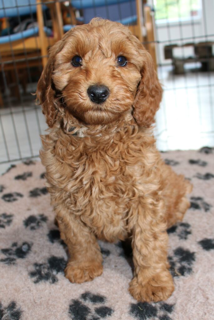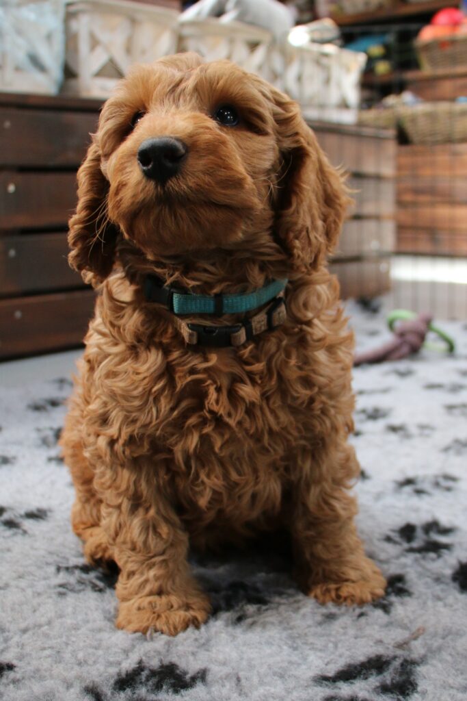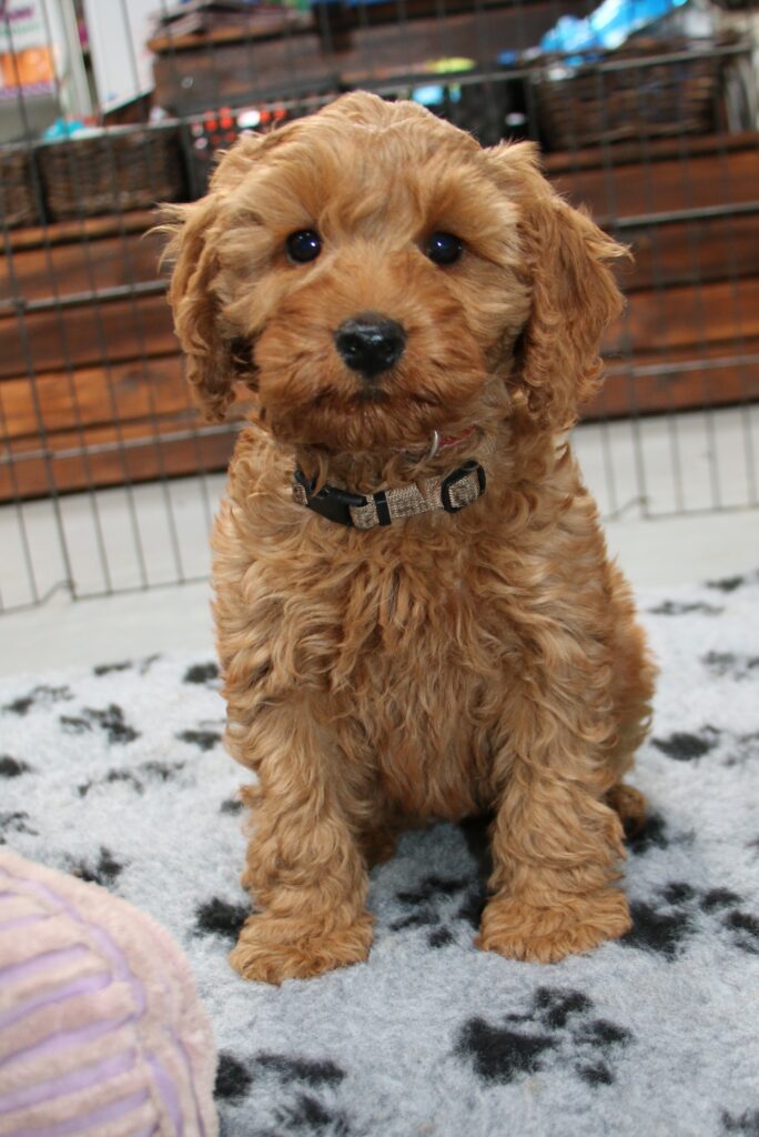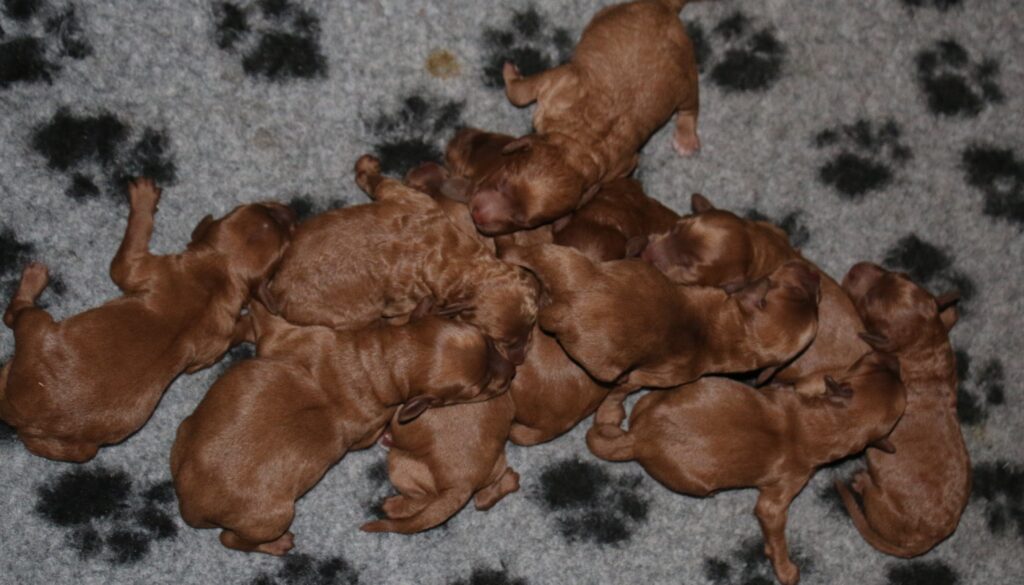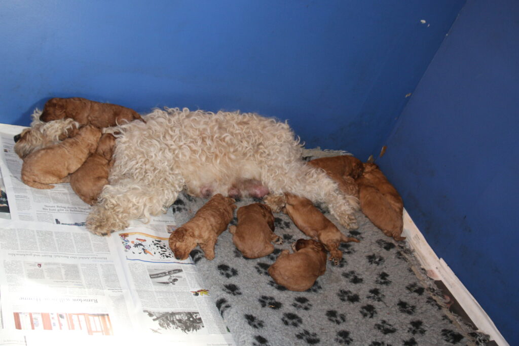 Vores mellem Flatdoodle F1B Sofia har fået hvalpe med vores lille Cavapoo F1 Soul.