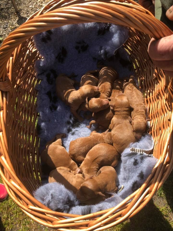 Der er blev 11 født hvalpe. 7 hanner og 4 tæver. (Der er ingen hvalpe til salg)