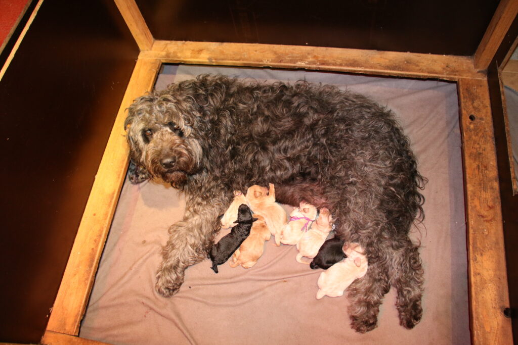 Vores store Flatdoodle Tesla har fået hvalpe med vores lille Cavapoo Soul, i alt 3 hvalpe (der er ingen hvalpe til salg).