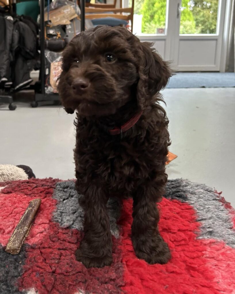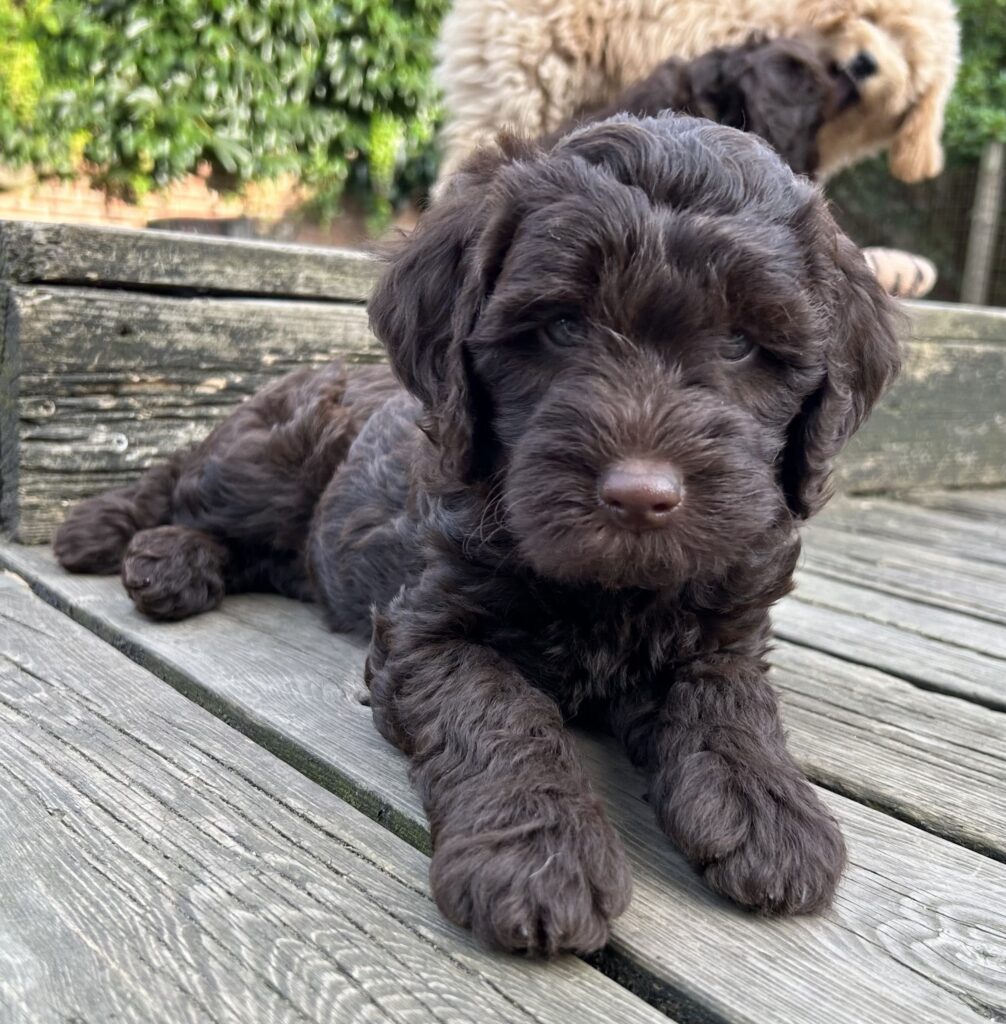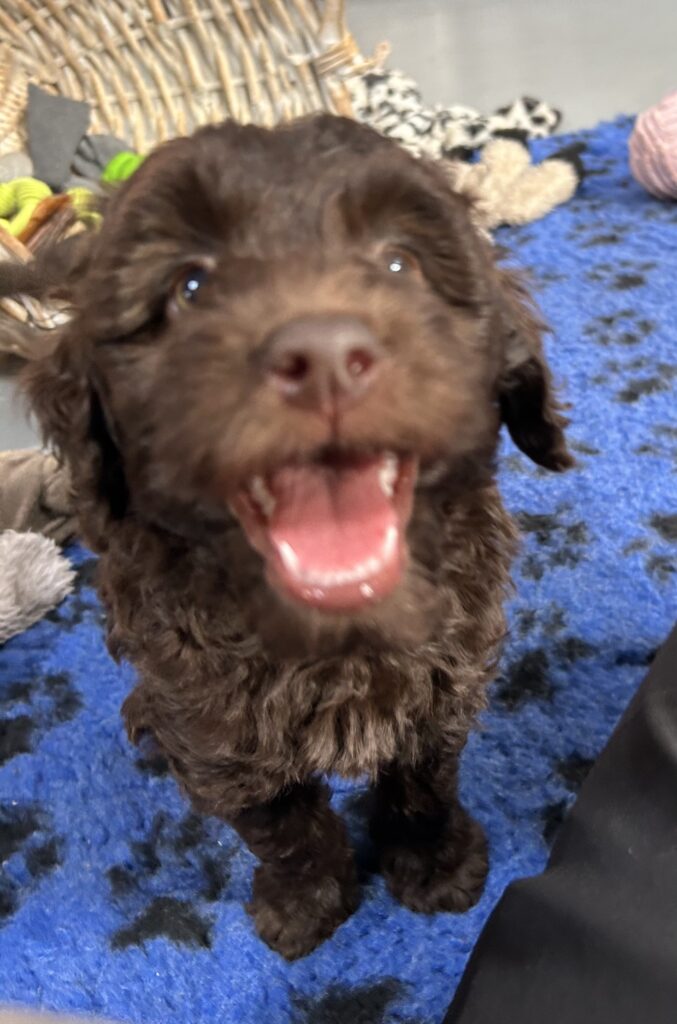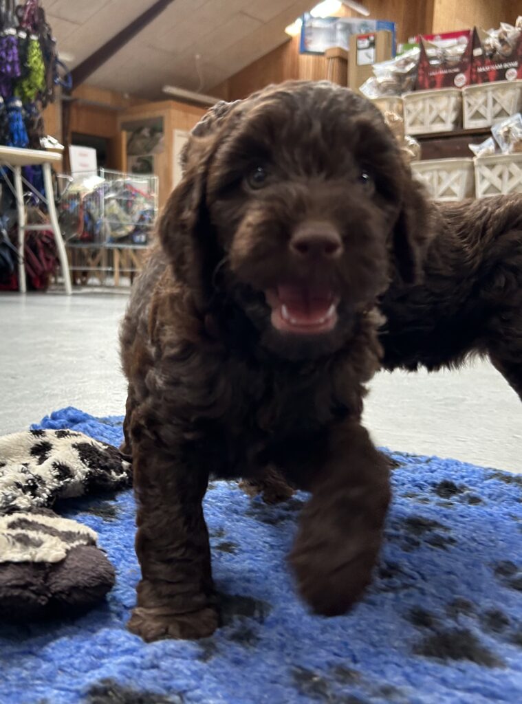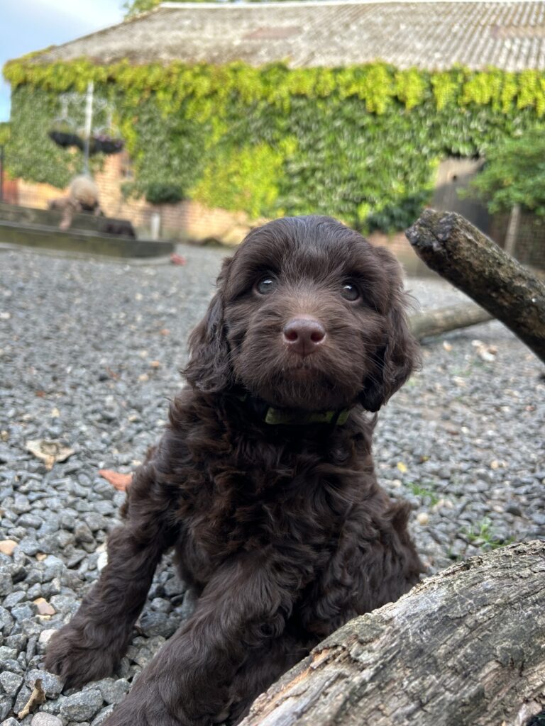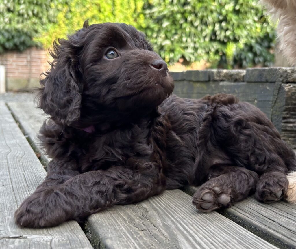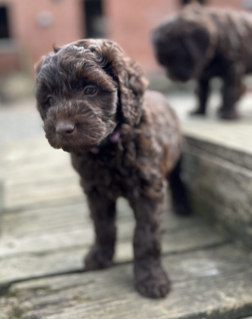 En rigtig mellem dreng, ….kontakt søgende og kærlig uden at være for intens, god leg som vi forventer af en doodle, men også god til at slappe af blandt legetøjet. Tør godt gå ud i verden, men har ikke et stort behov for det.