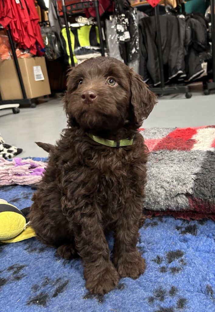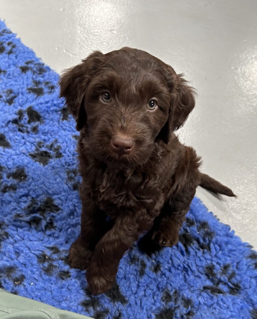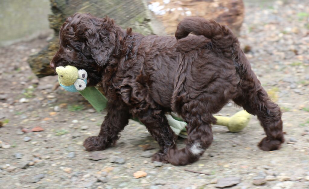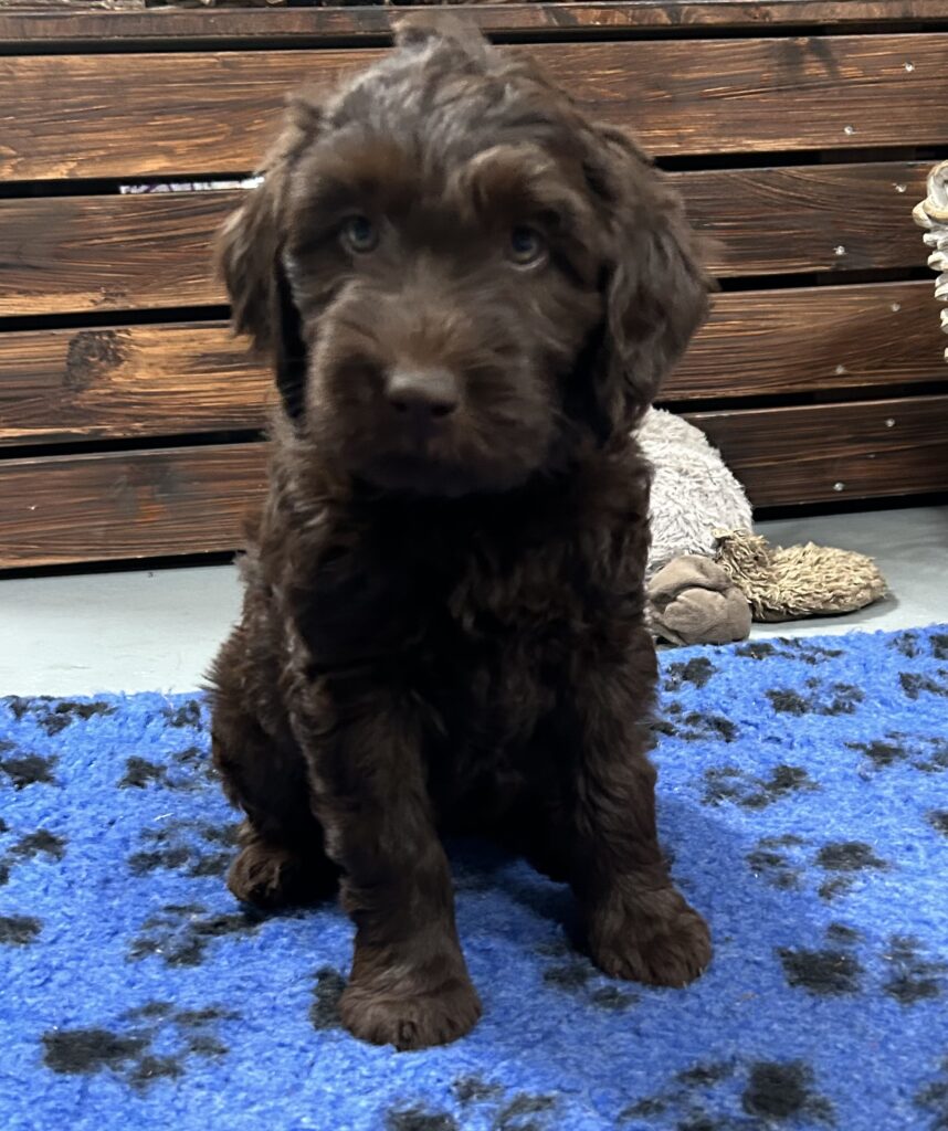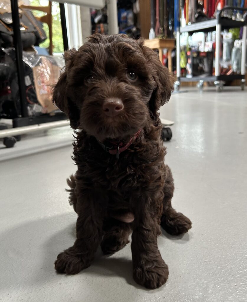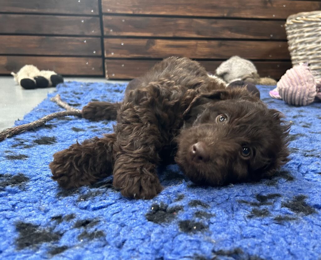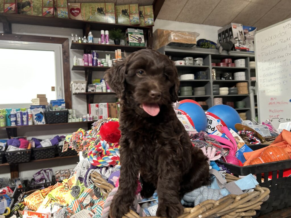 En rigtig mellem dreng, ….kontakt søgende og kærlig uden at være for intens, god leg som vi forventer af en doodle, men også god til at slappe af blandt legetøjet. Tør godt gå ud i verden, men har ikke et stort behov for det.
