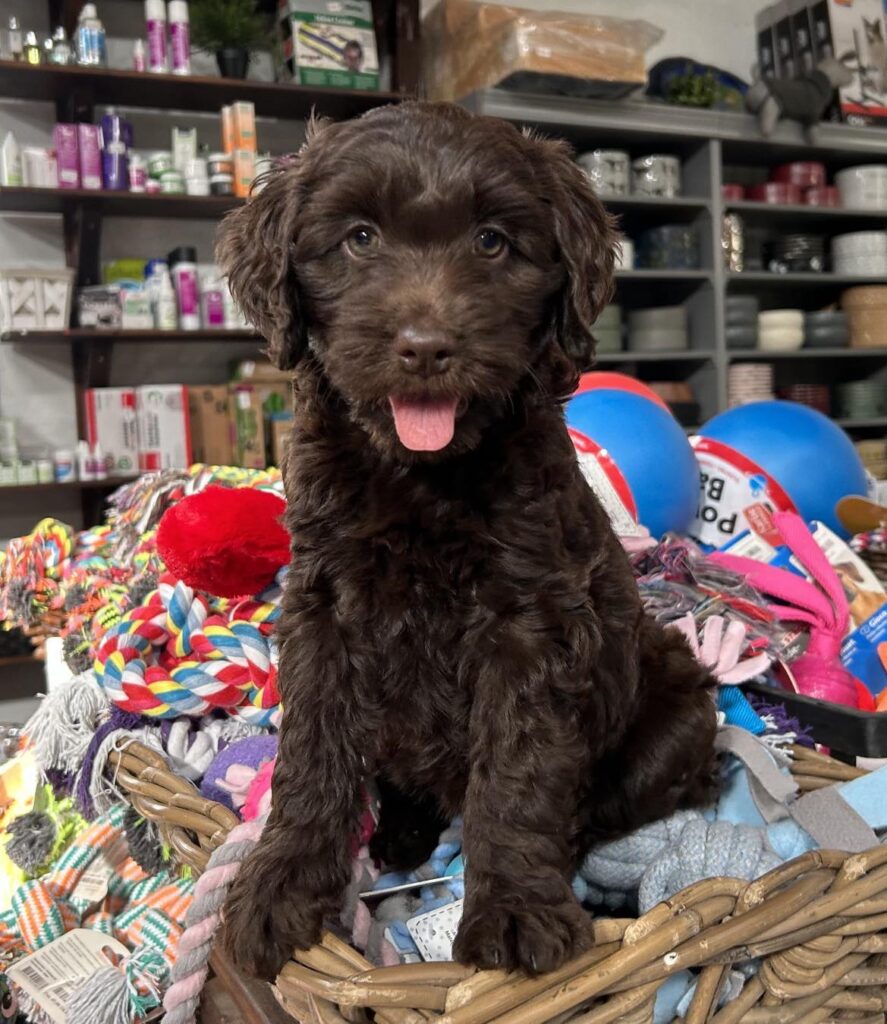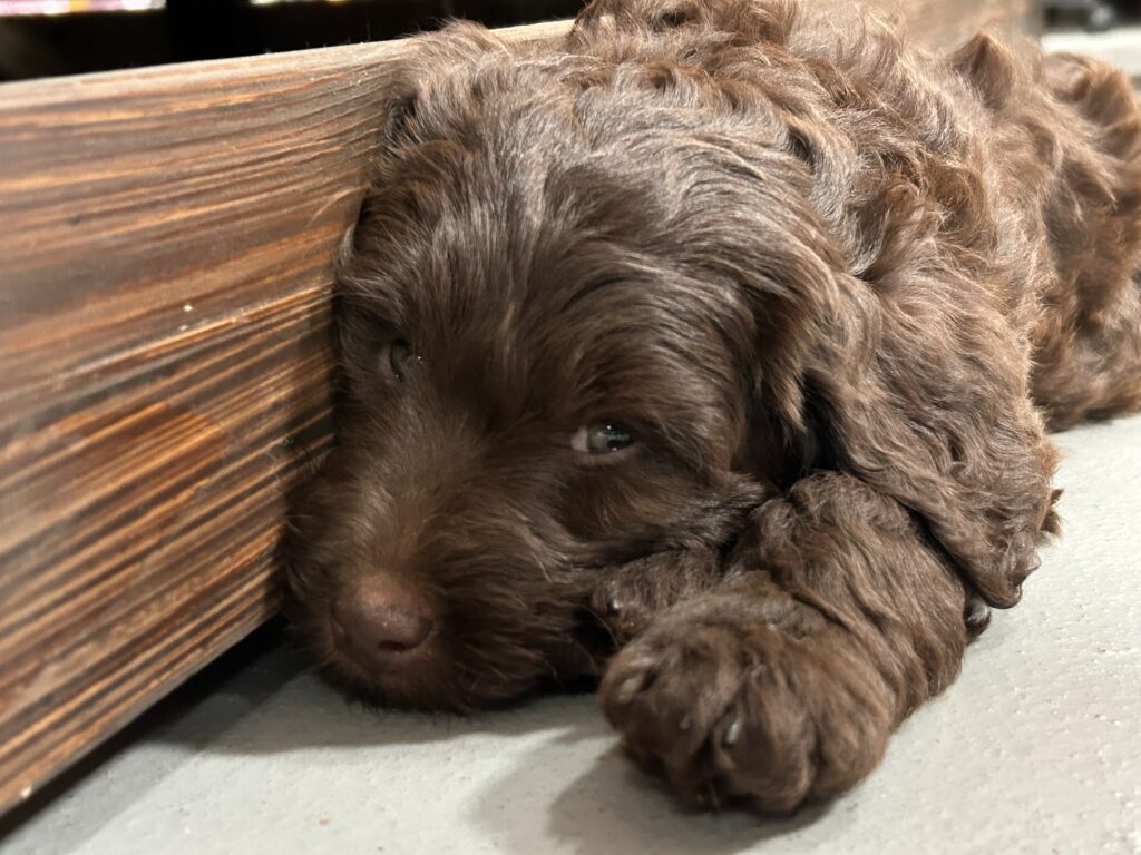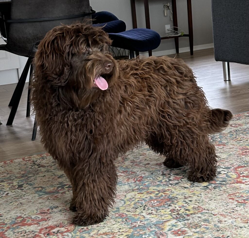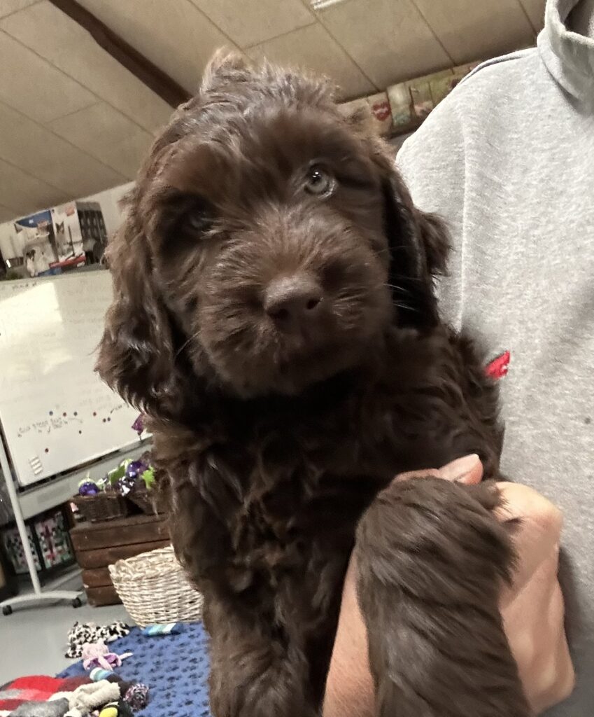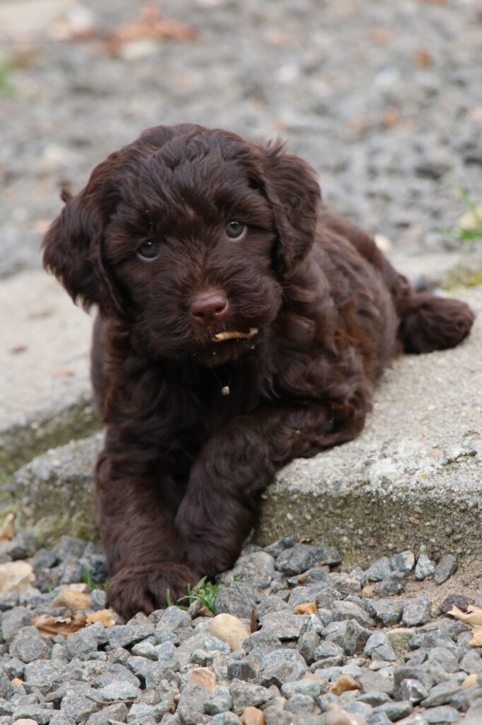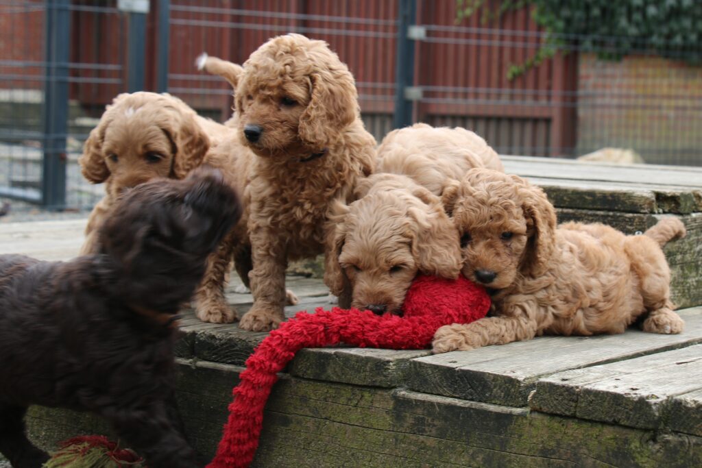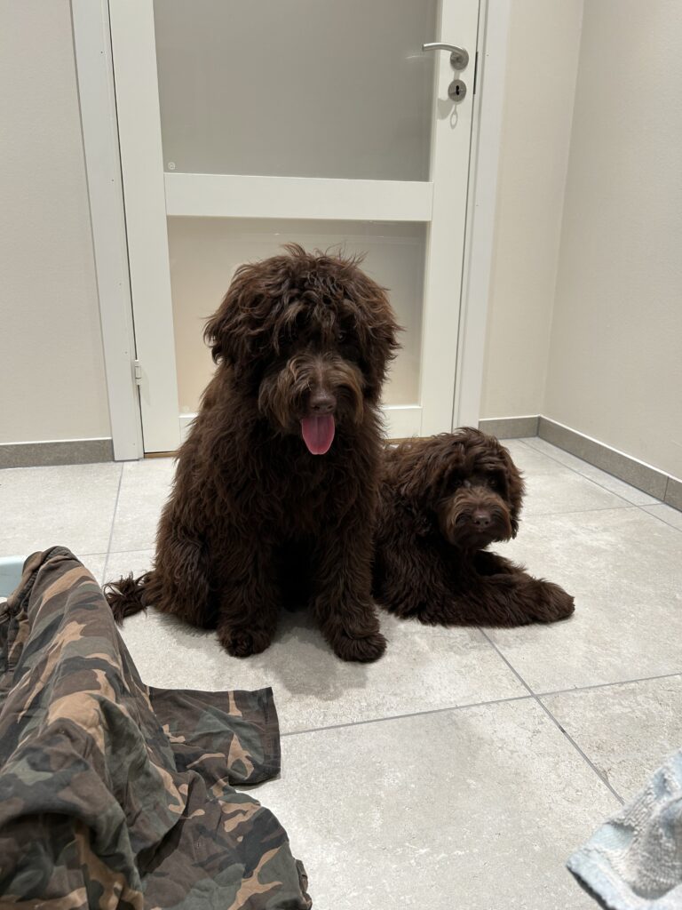 En rigtig mellem dreng, ….kontakt søgende og kærlig uden at være for intens, god leg som vi forventer af en doodle, men også god til at slappe af blandt legetøjet. Tør godt gå ud i verden, men har ikke et stort behov for det.