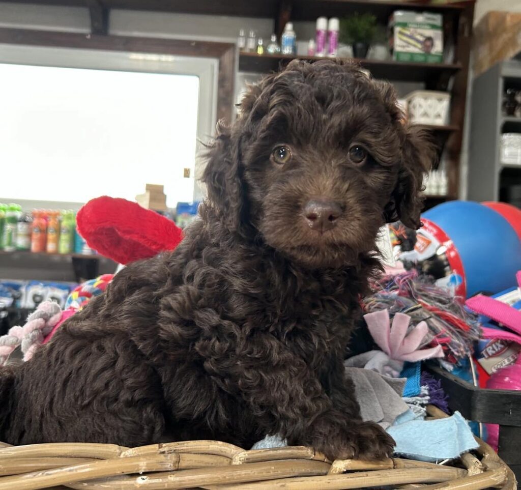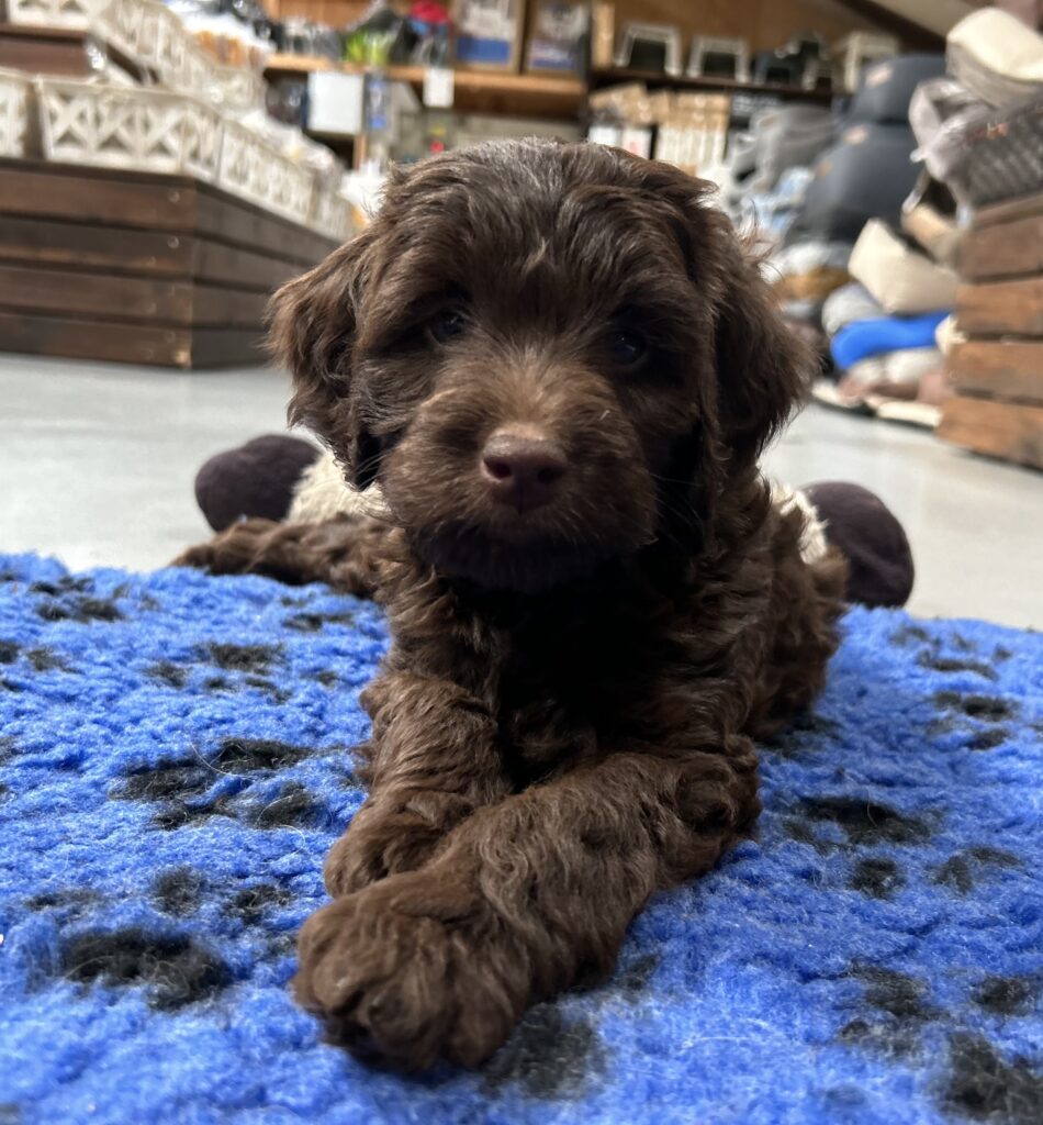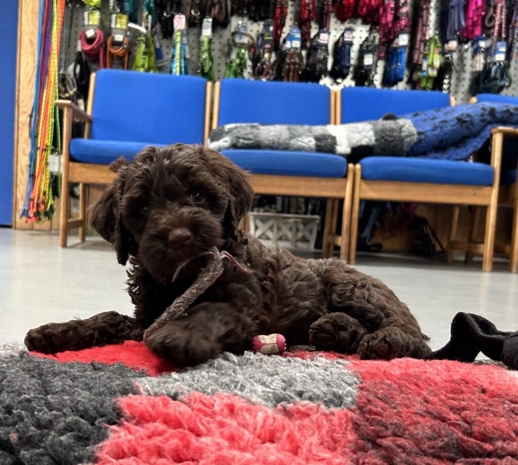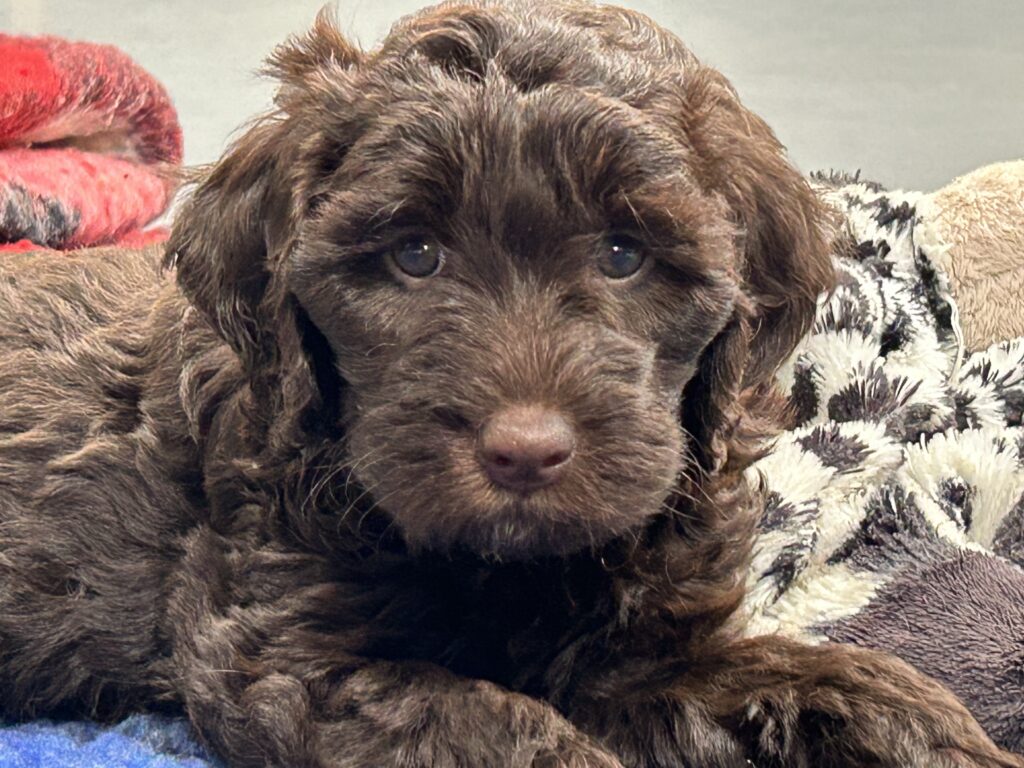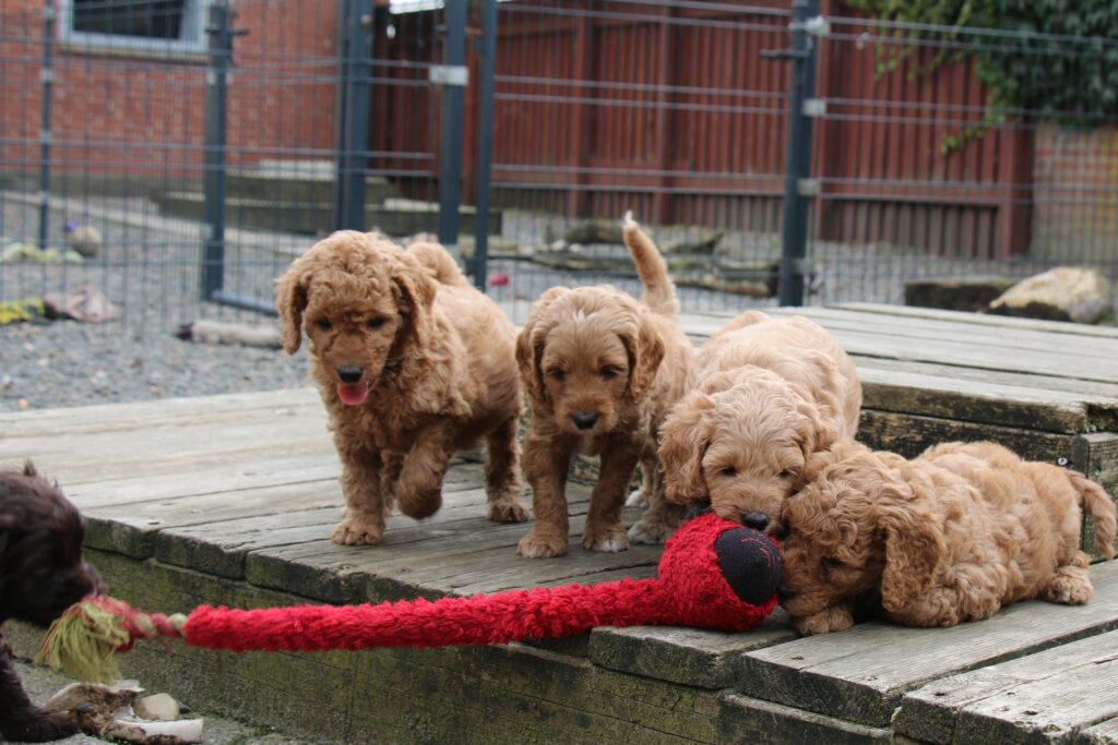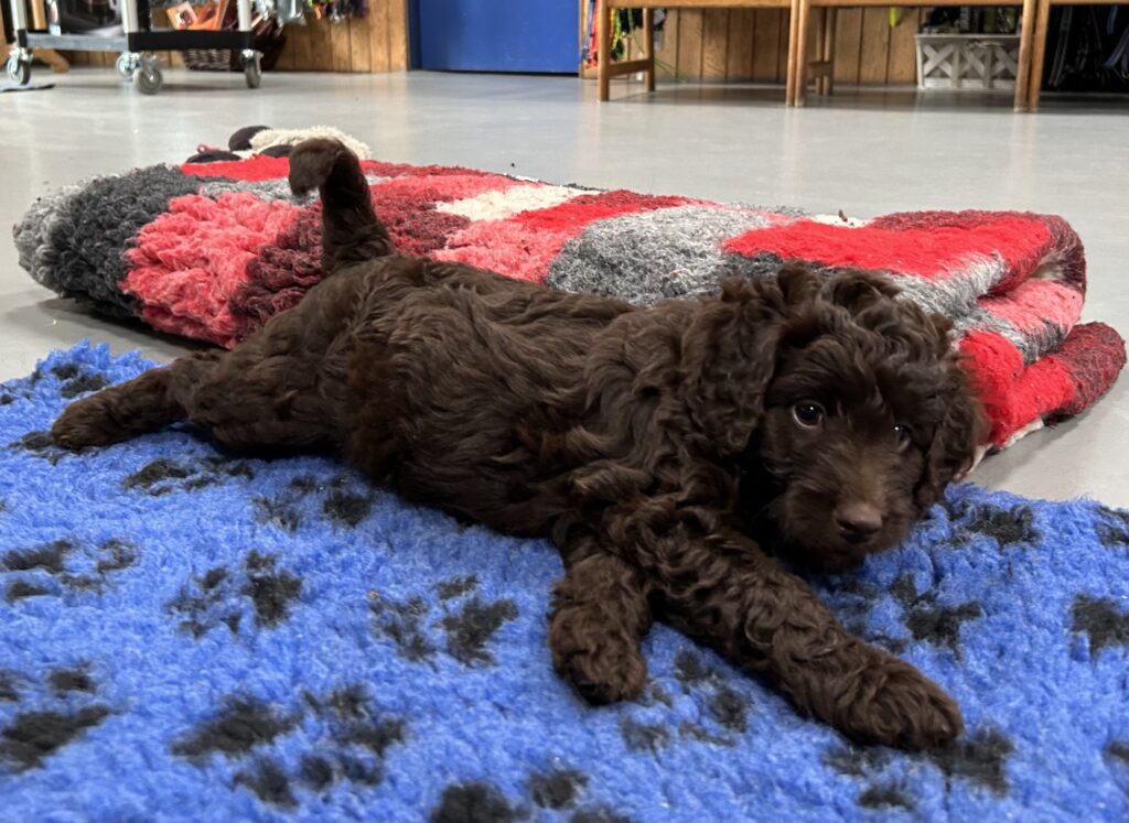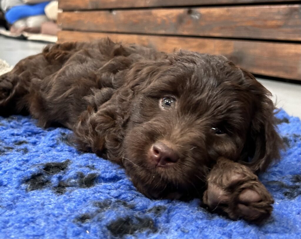 En rigtig mellem dreng, ….kontakt søgende og kærlig uden at være for intens, god leg som vi forventer af en doodle, men også god til at slappe af blandt legetøjet. Tør godt gå ud i verden, men har ikke et stort behov for det.
