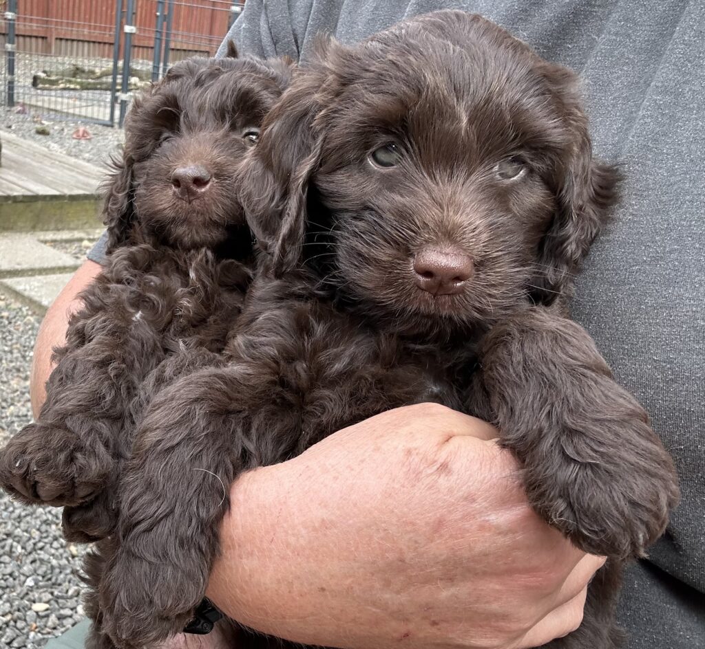Disse hvalpe vil blive cafe/brune og de får klippepels.
