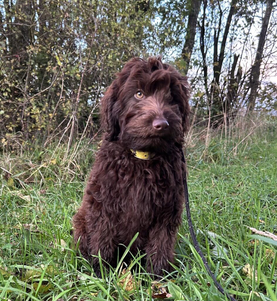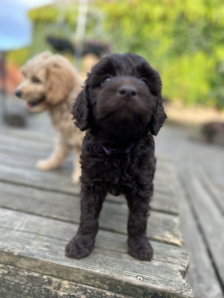 En dejlig pige, der er ret nysgerrig og tilpas selvstændig af natur. Hun virker ret så lærenem og tilpas modig, hvis man ønsker en hund man kan træne med og tage med på sjove udfordrende oplevelser ud i naturen mv. Hun elsker at lege og gå på opdagelse i omgivelserne. Hun vil også hygge og nusses, men er ikke så intens påtrængende som vi indimellem ser det hos vores doodler, men hun vil stadig hygge og nusse….se videoerne længere nede på siden. Hun går allerede okay pænt i snor, er renlig og hoppe ikke op mv mv….Hun passer fint til en familie med respektfulde børn, men også til en voksen familie.