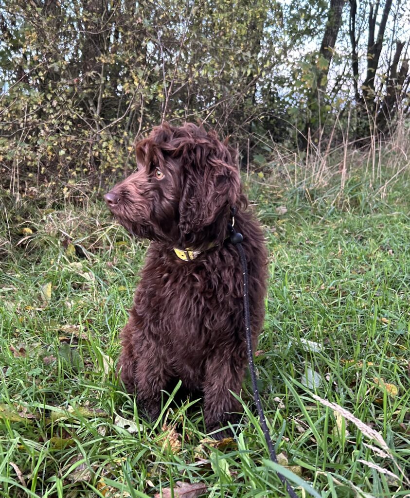 En dejlig pige, der er ret nysgerrig og tilpas selvstændig af natur. Hun virker ret så lærenem og tilpas modig, hvis man ønsker en hund man kan træne med og tage med på sjove udfordrende oplevelser ud i naturen mv. Hun elsker at lege og gå på opdagelse i omgivelserne. Hun vil også hygge og nusses, men er ikke så intens påtrængende som vi indimellem ser det hos vores doodler, men hun vil stadig hygge og nusse….se videoerne. Hun går allerede okay pænt i snor, er renlig og hoppe ikke op mv mv….Hun passer fint til en familie med respektfulde børn, men også til en voksen familie.