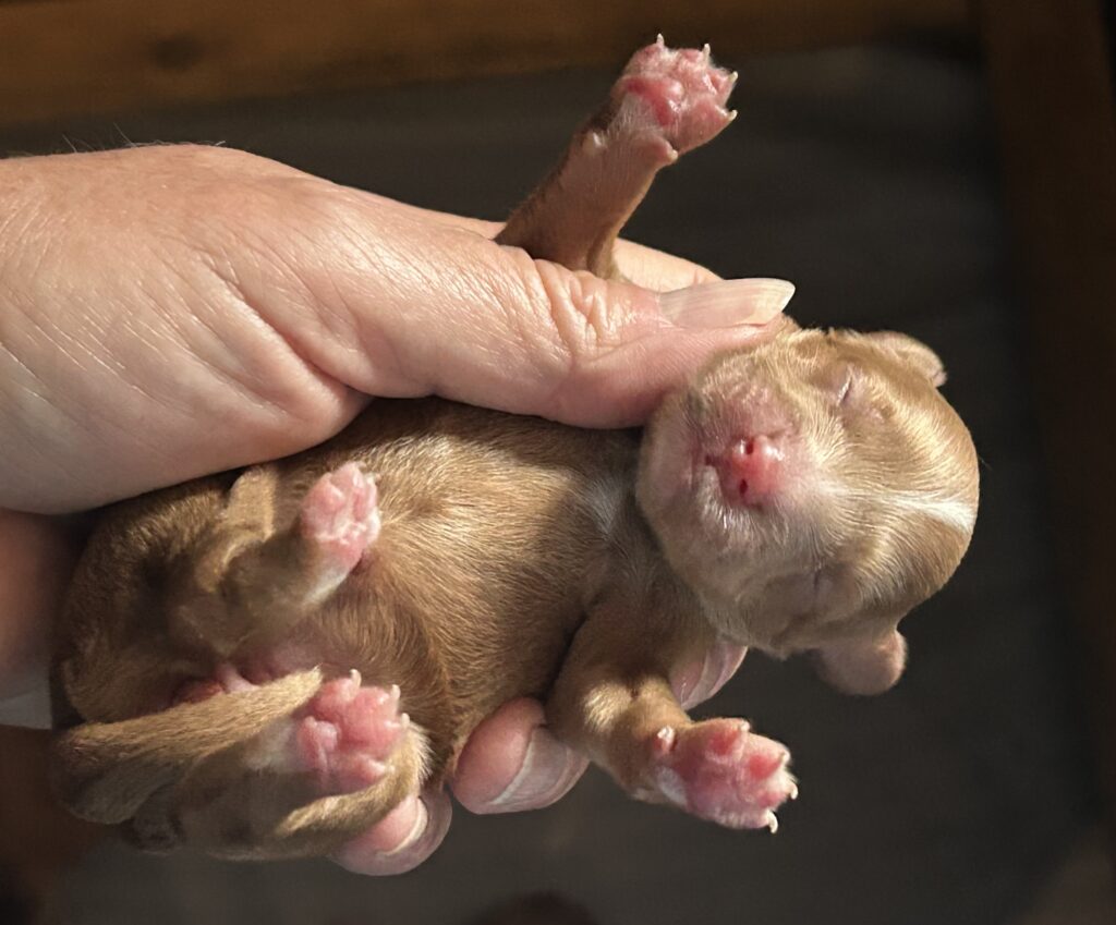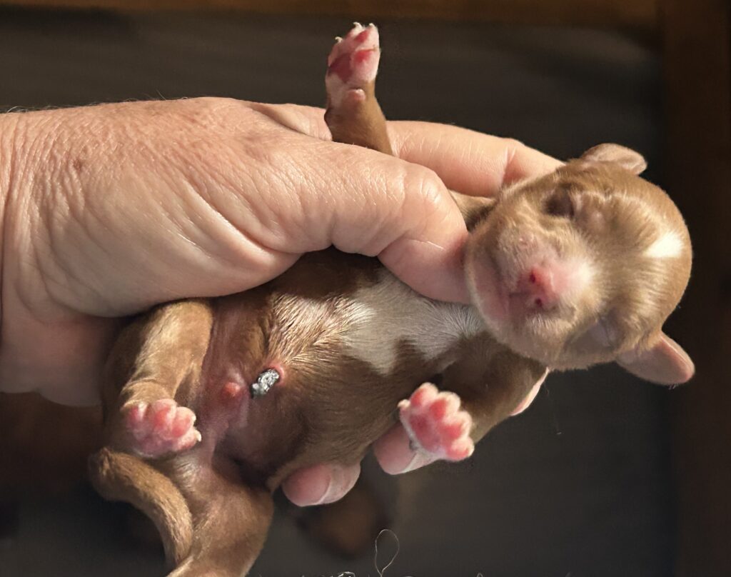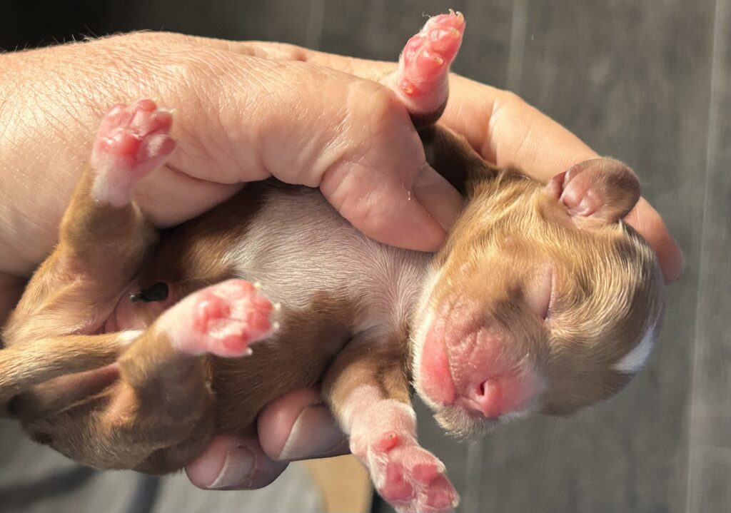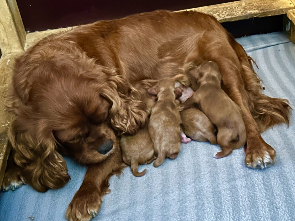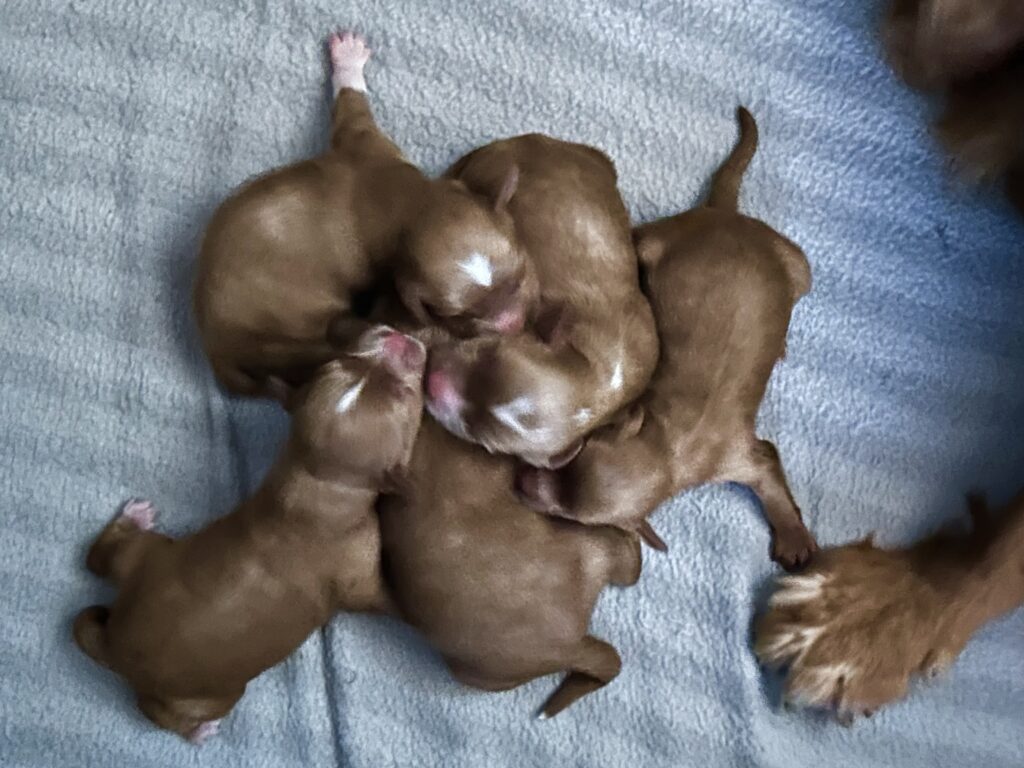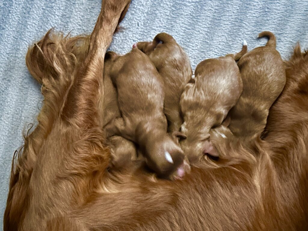 Der er født 5 hvalpe, 3 tæver og 2 hanner.