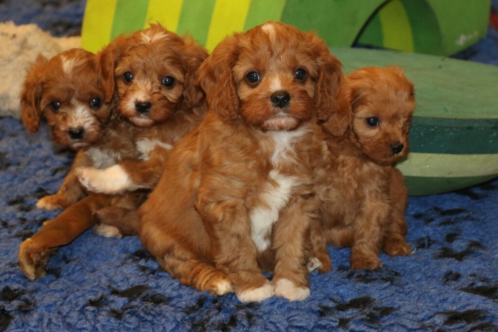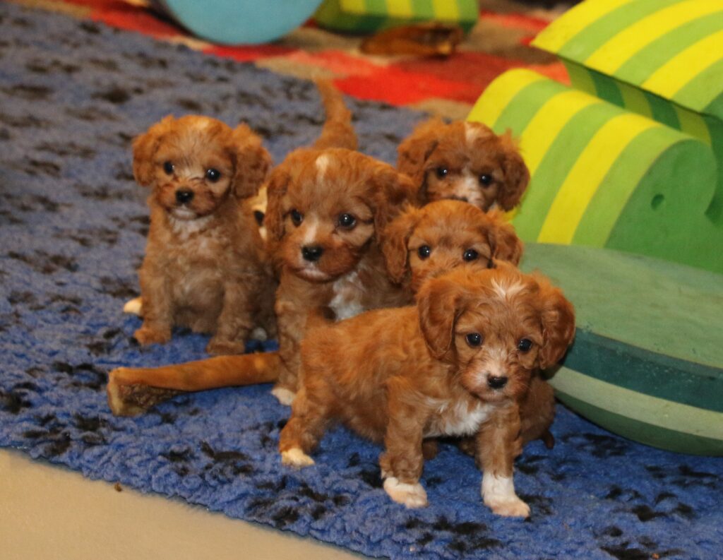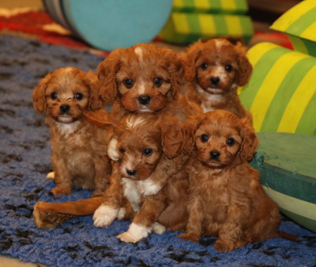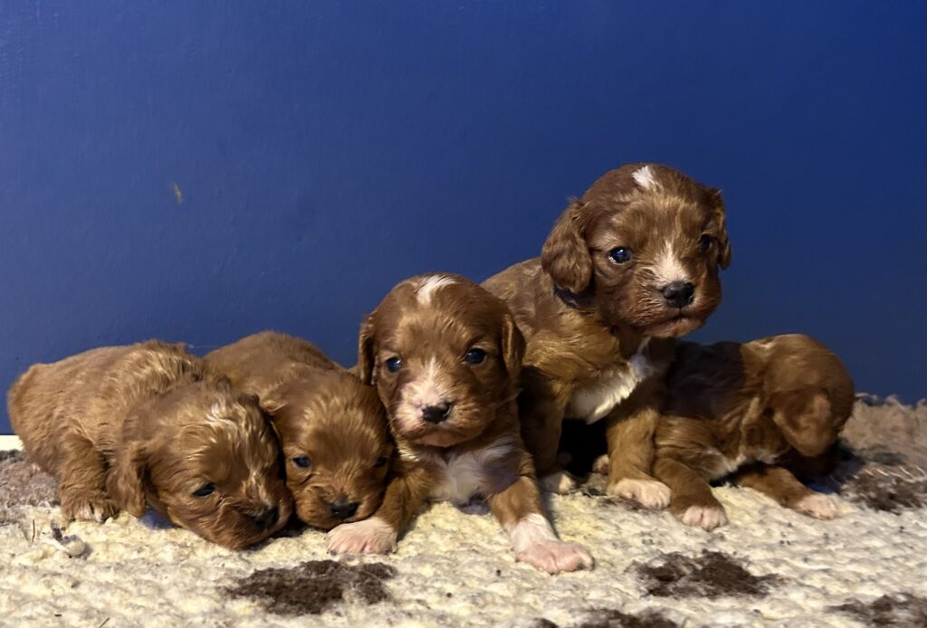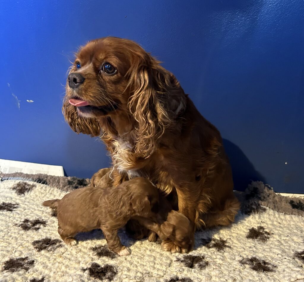 Vores Cavalier King Charles Spaniel Jess her igen fået hvalpe med vores lille Toy puddel Harley.