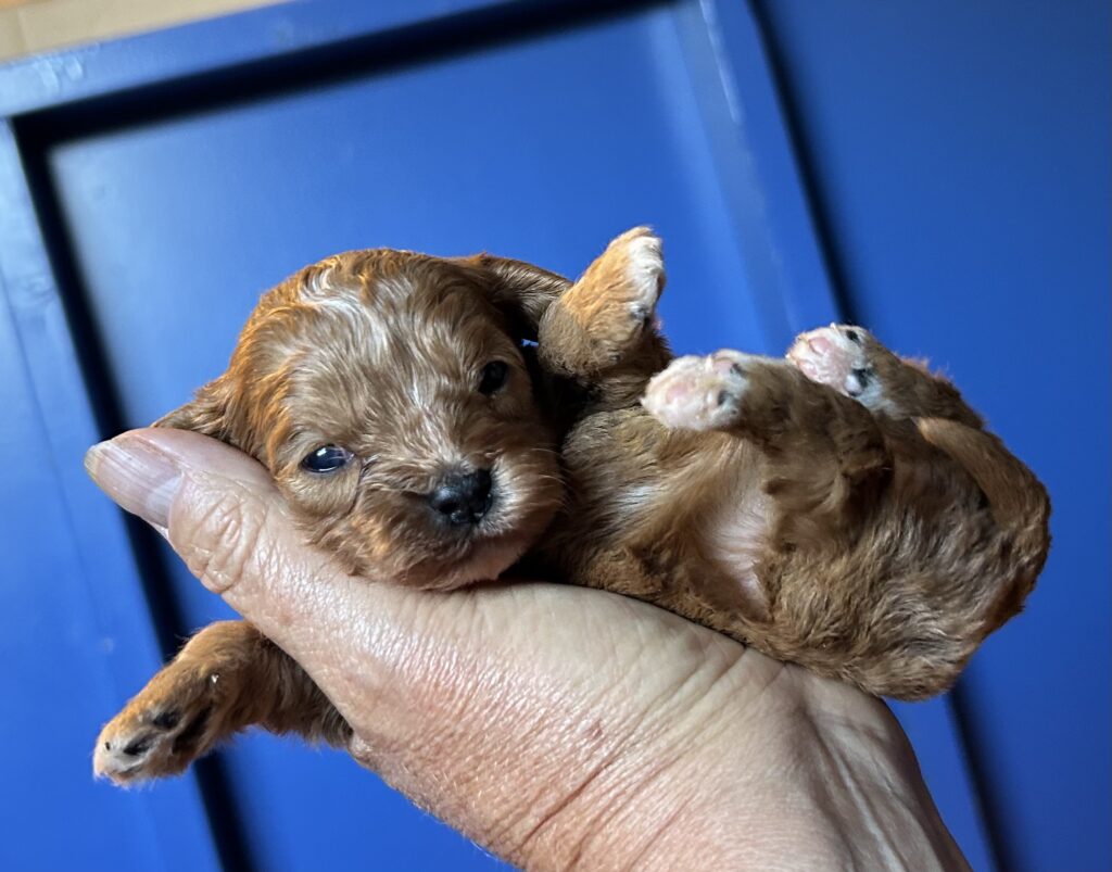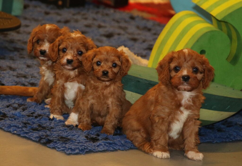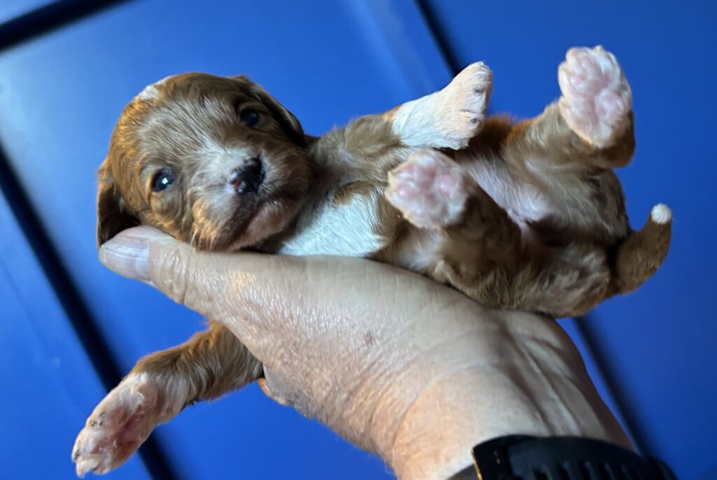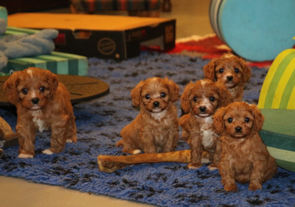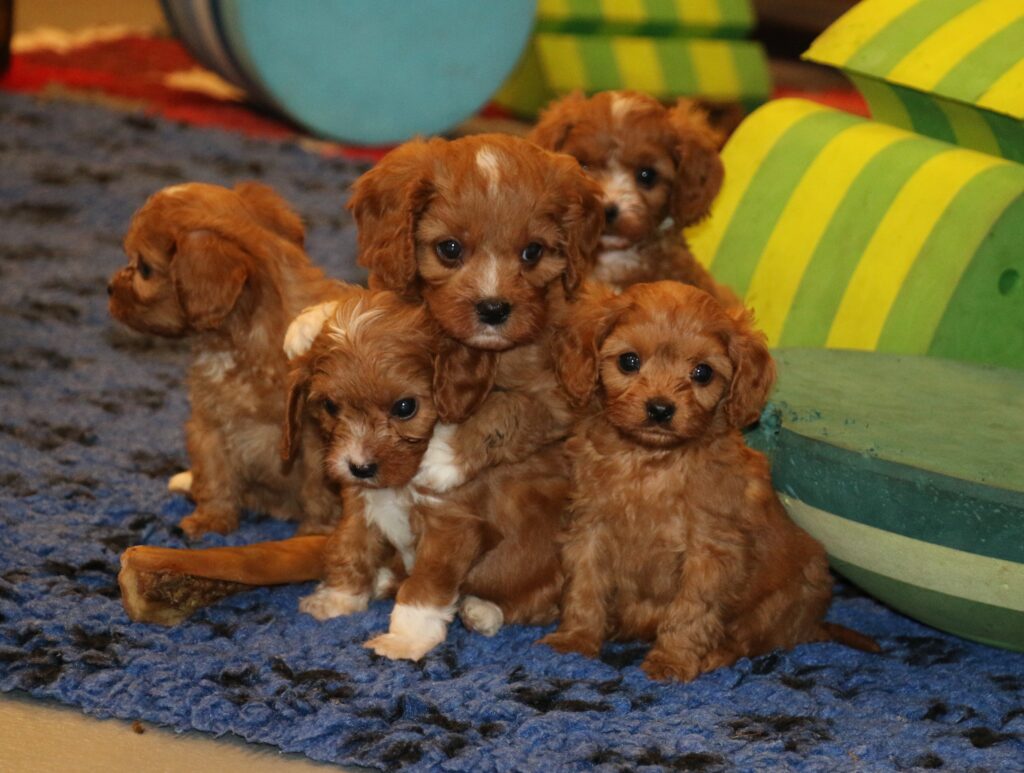 Vores Cavalier King Charles Spaniel Jess her igen fået hvalpe med vores lille Toy puddel Harley.