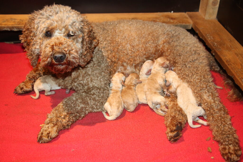 Doodledoodle Lexy har fået 6 hvalpe med mellem puddel Luke, den 15.2.2021. Lexy fik 2 hanner og 4 tæver.