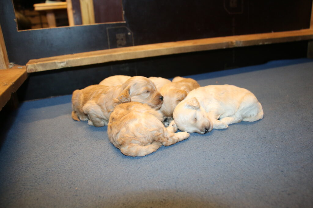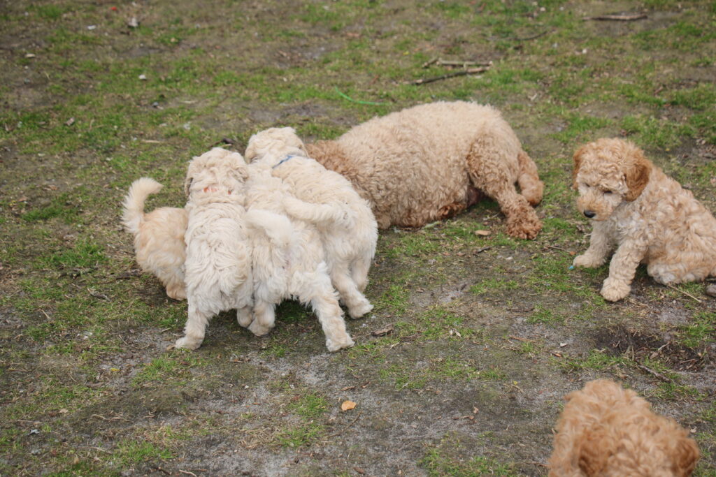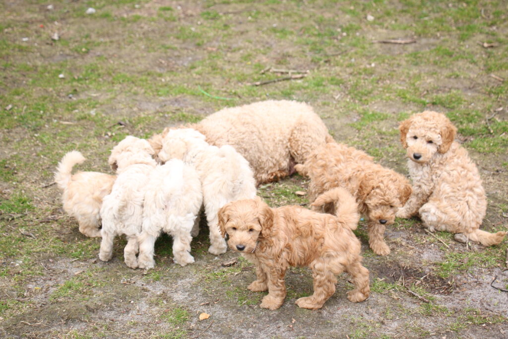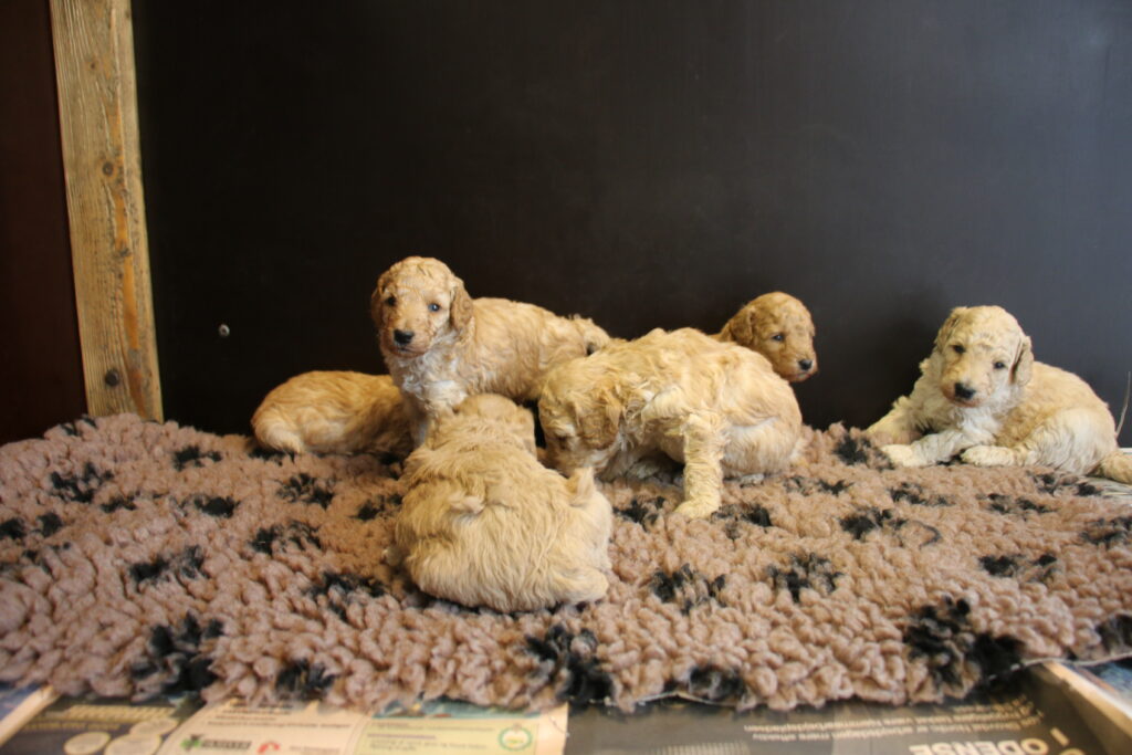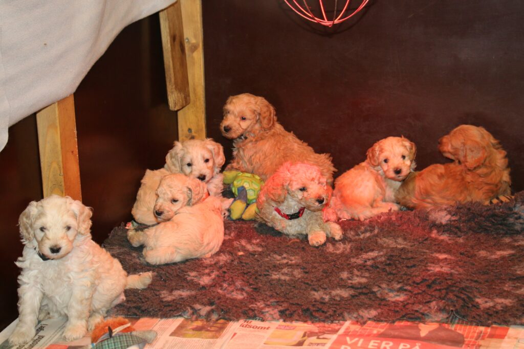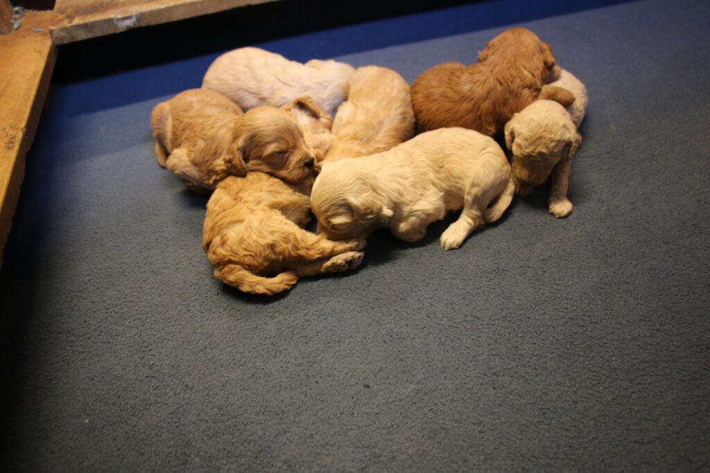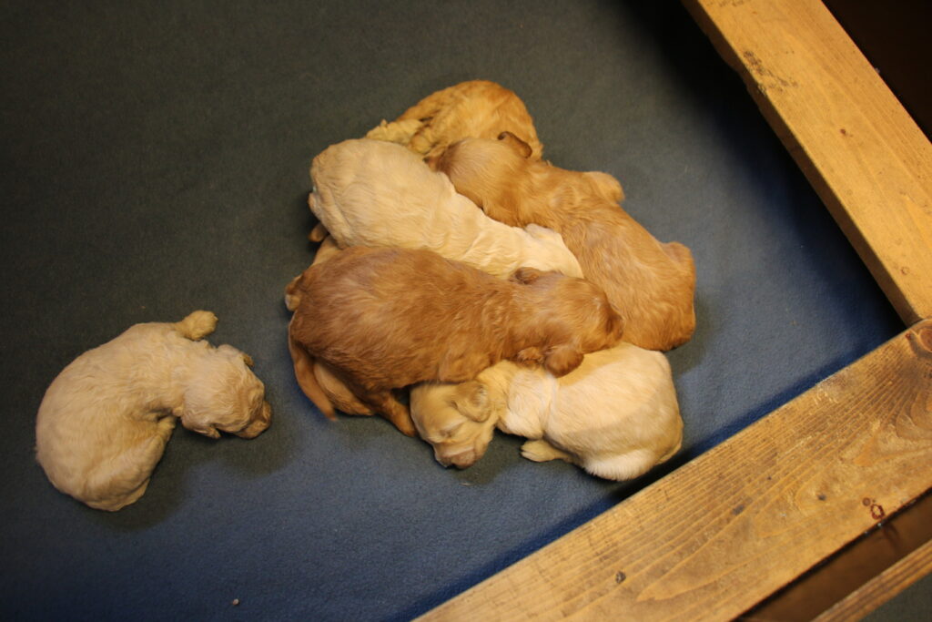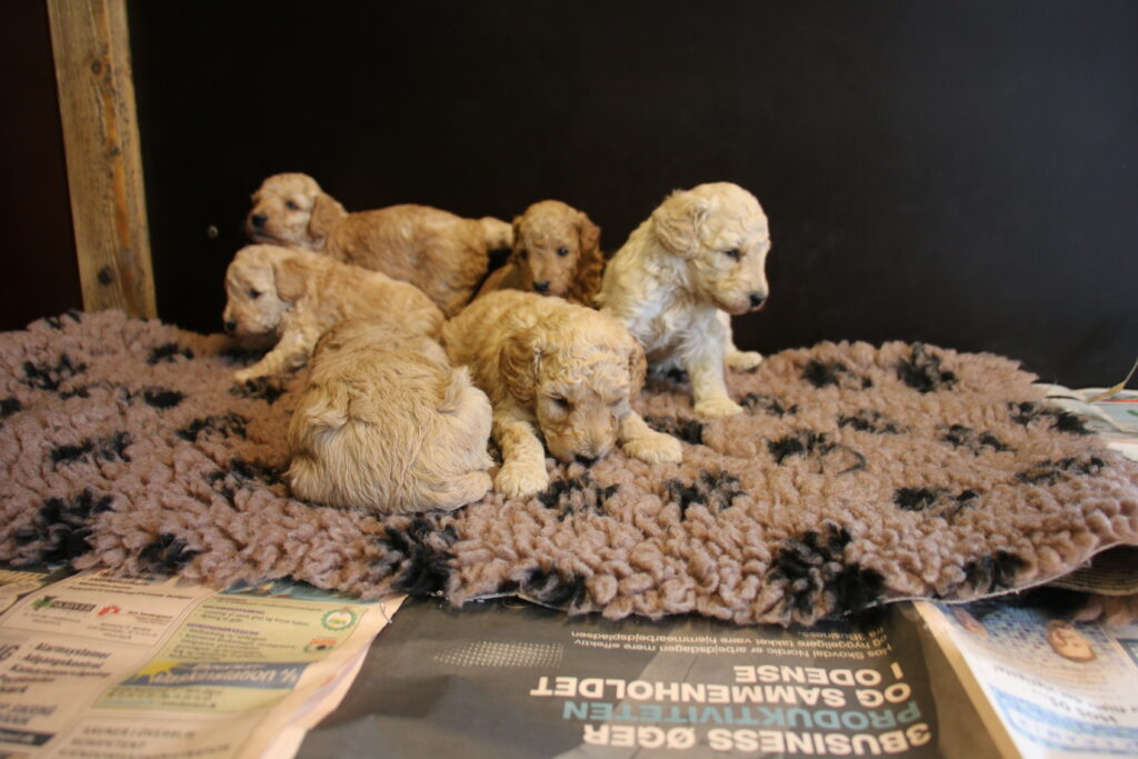 Doodledoodle Jersey har fået hvalpe med mellem puddel Luke, den 24.2.2021. Jersey fik 6 hanner og 1 tæve.
