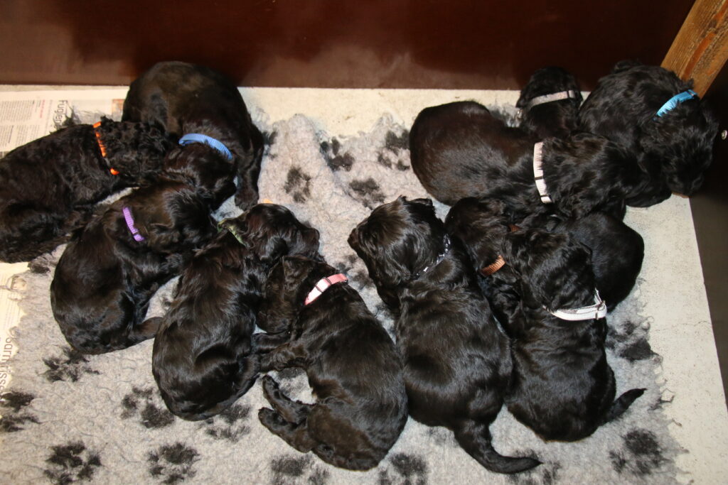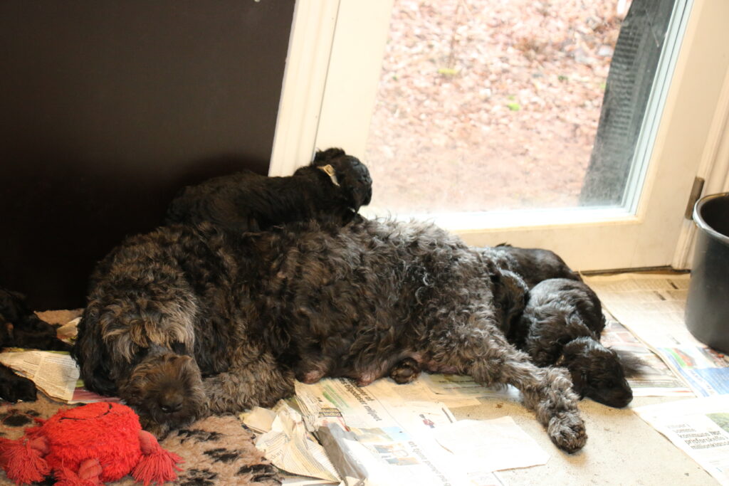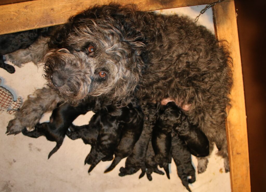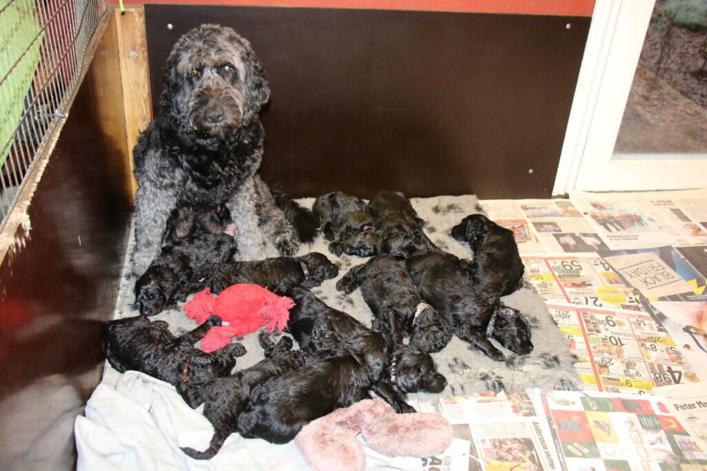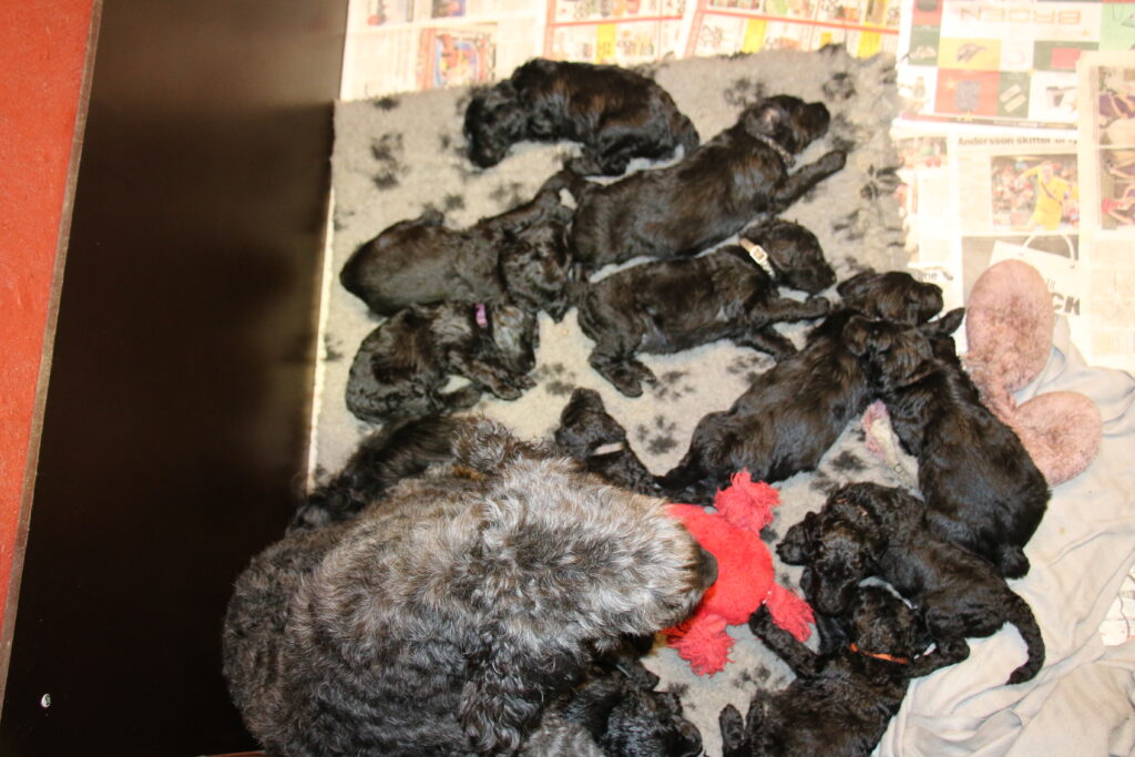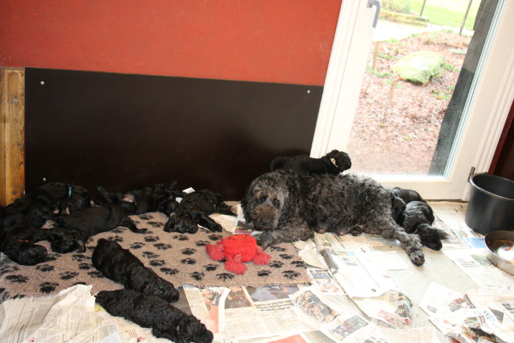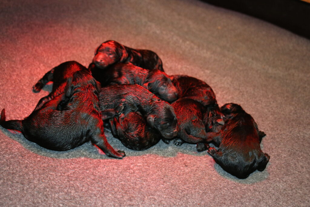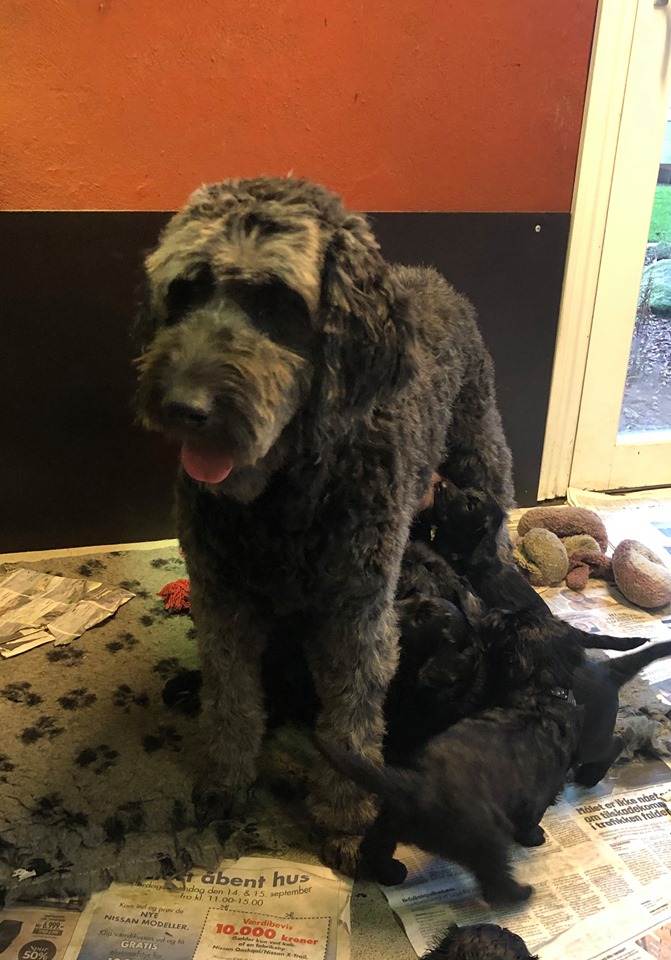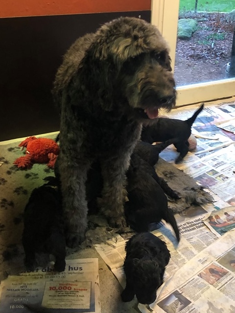Vores store Flatdoodle F1 Lotus har fået hvalpe med vores stor puddel HeFaruck.