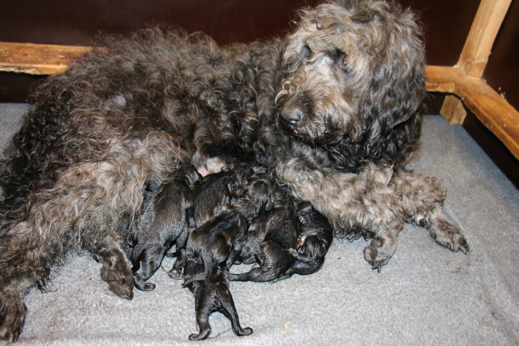 Alle hvalpene er pt kul-sorte og mor Lotus er også ret mørke grå/sort, altså noget mere end billedet viser.