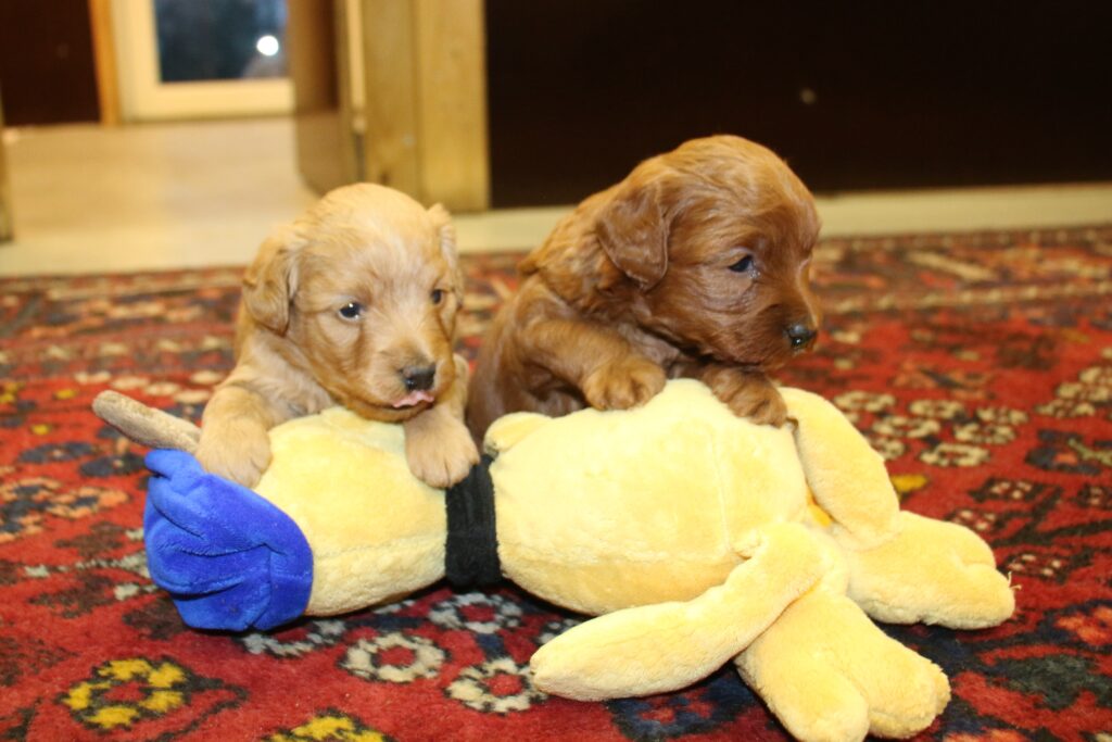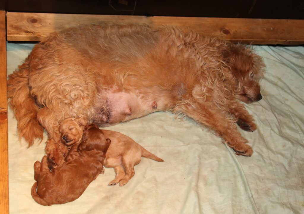 Vores lille Labradoodle F1B Paris har fået 2 hvalpe med vores lille Cavapoo F1 Soul.